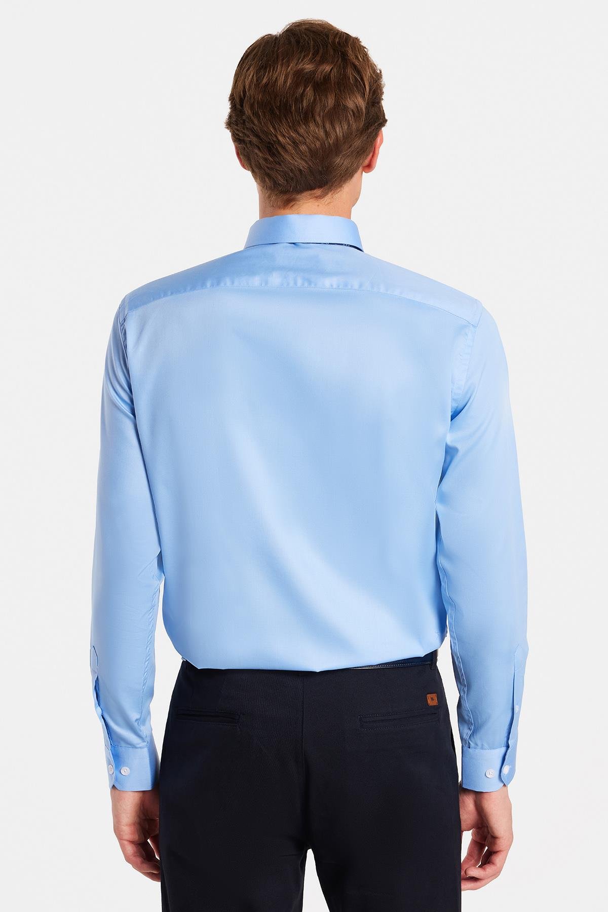 Erkek Slim Fit Non-Iron Pamuklu Doğa Dostu Ekoteks Belgeli Ütü Gerektirmez Açık Mavi Gömlek (DR250009-34)