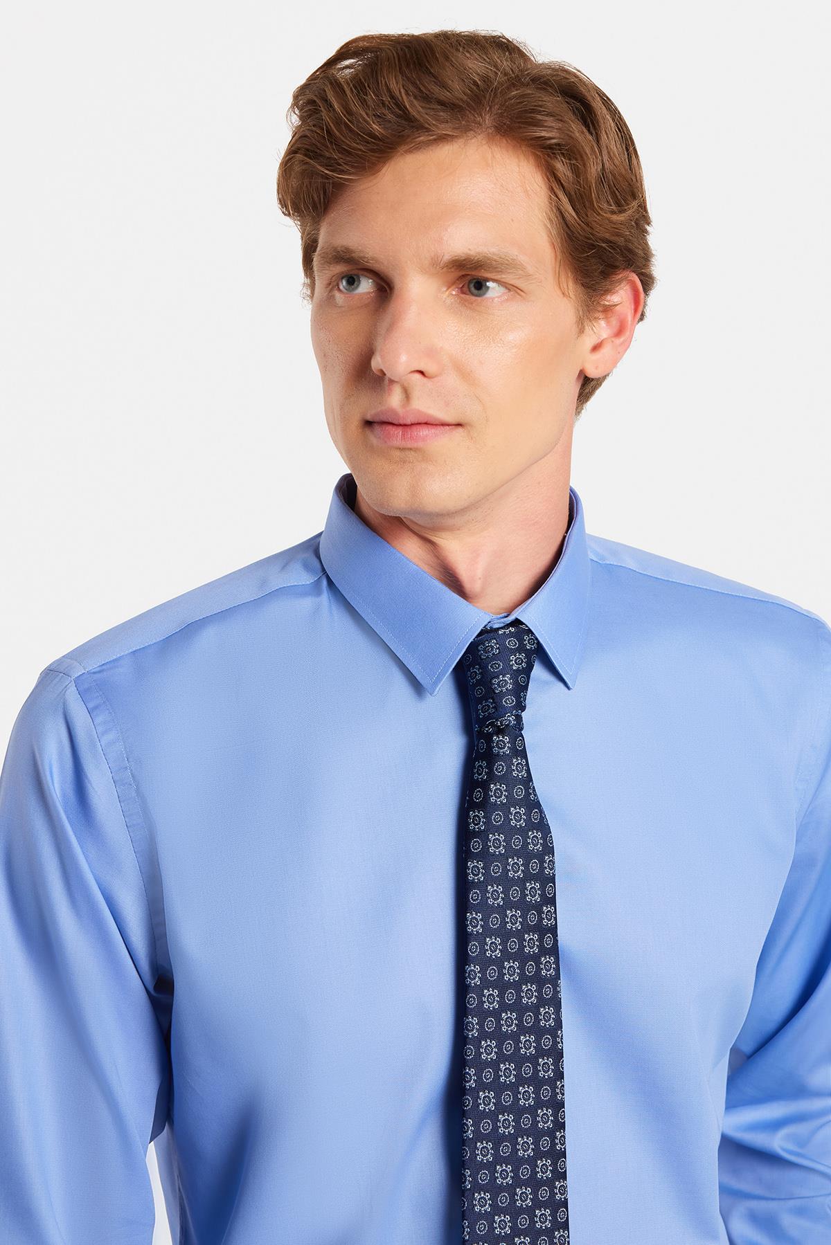Erkek Slim Fit Non-Iron Pamuklu Doğa Dostu Ekoteks Belgeli Ütü Gerektirmez Mavi Gömlek