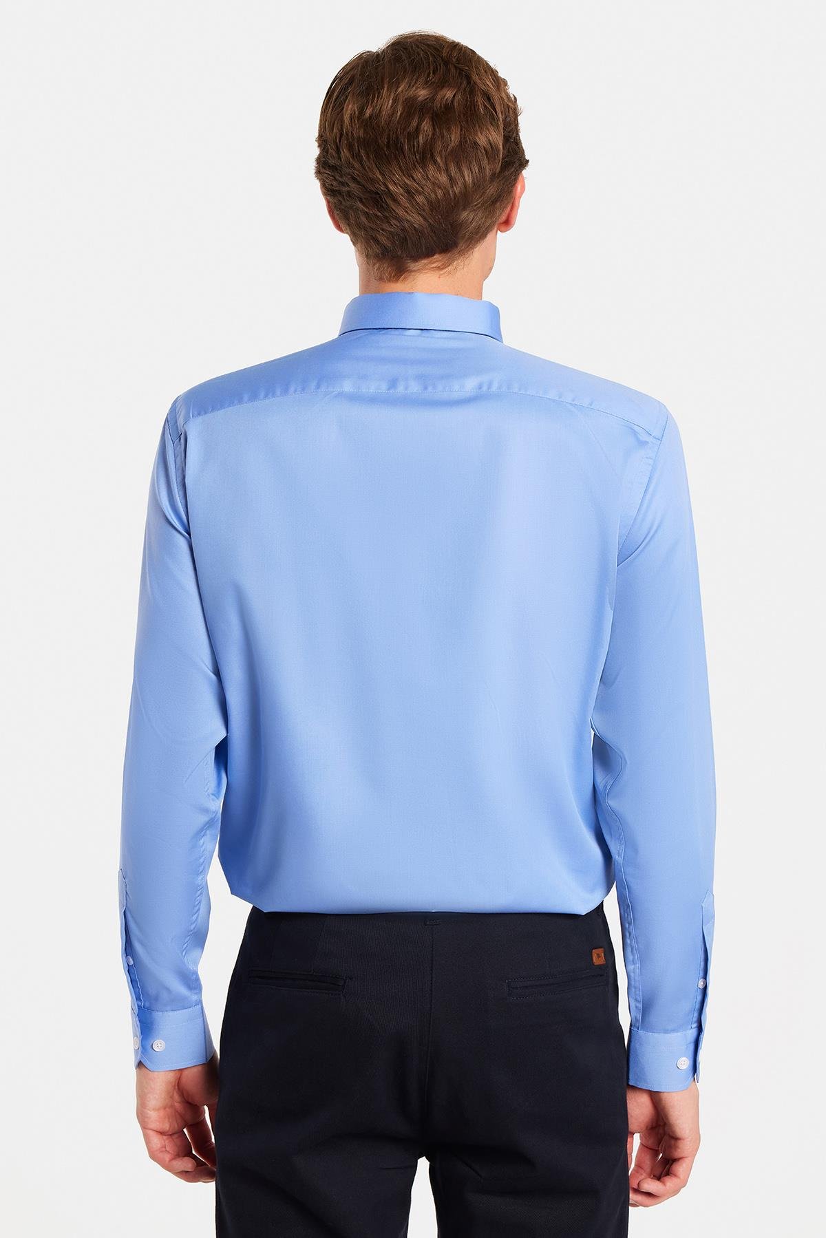Erkek Slim Fit Non-Iron Pamuklu Doğa Dostu Ekoteks Belgeli Ütü Gerektirmez Mavi Gömlek (DR250009-22)