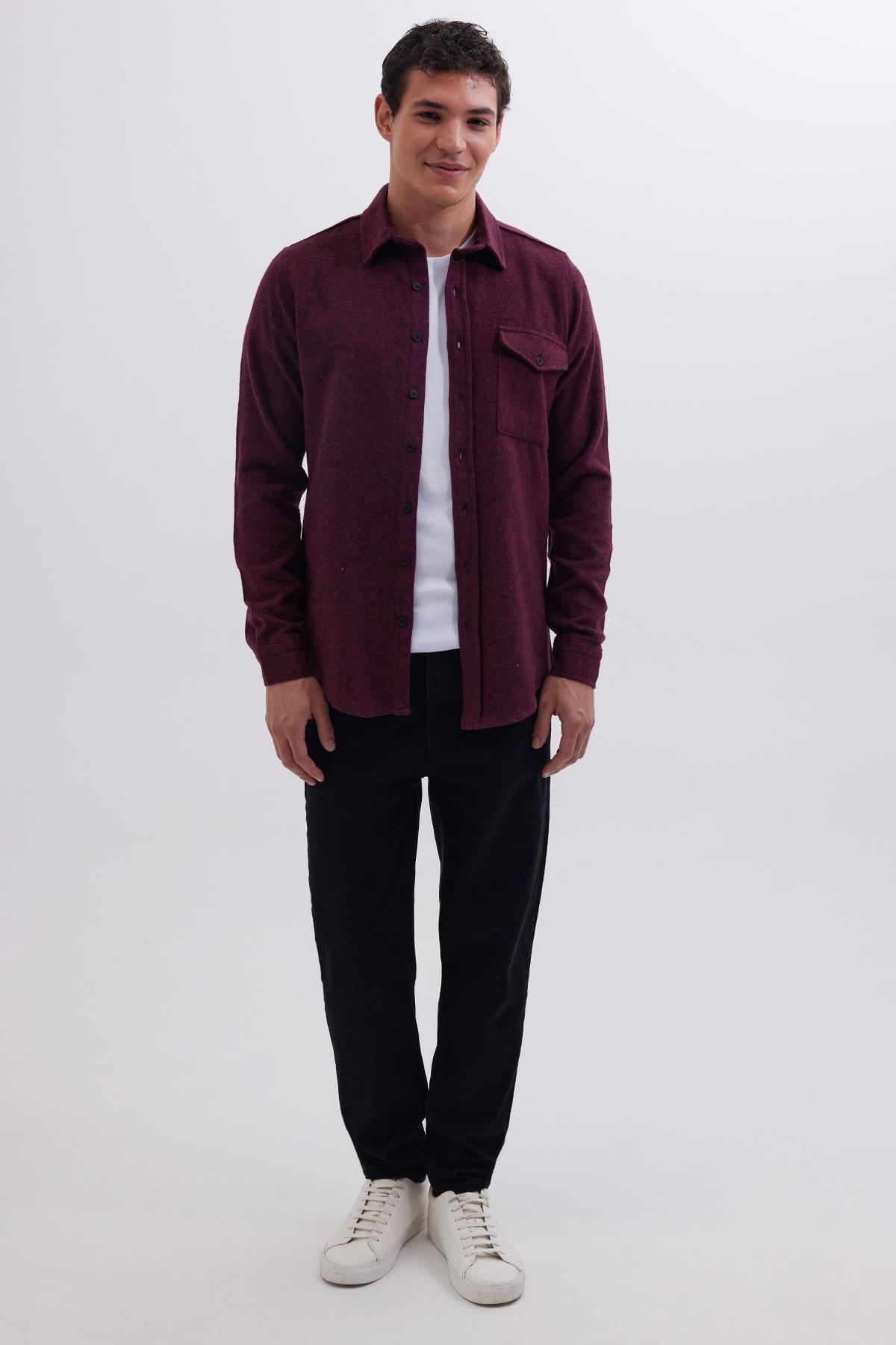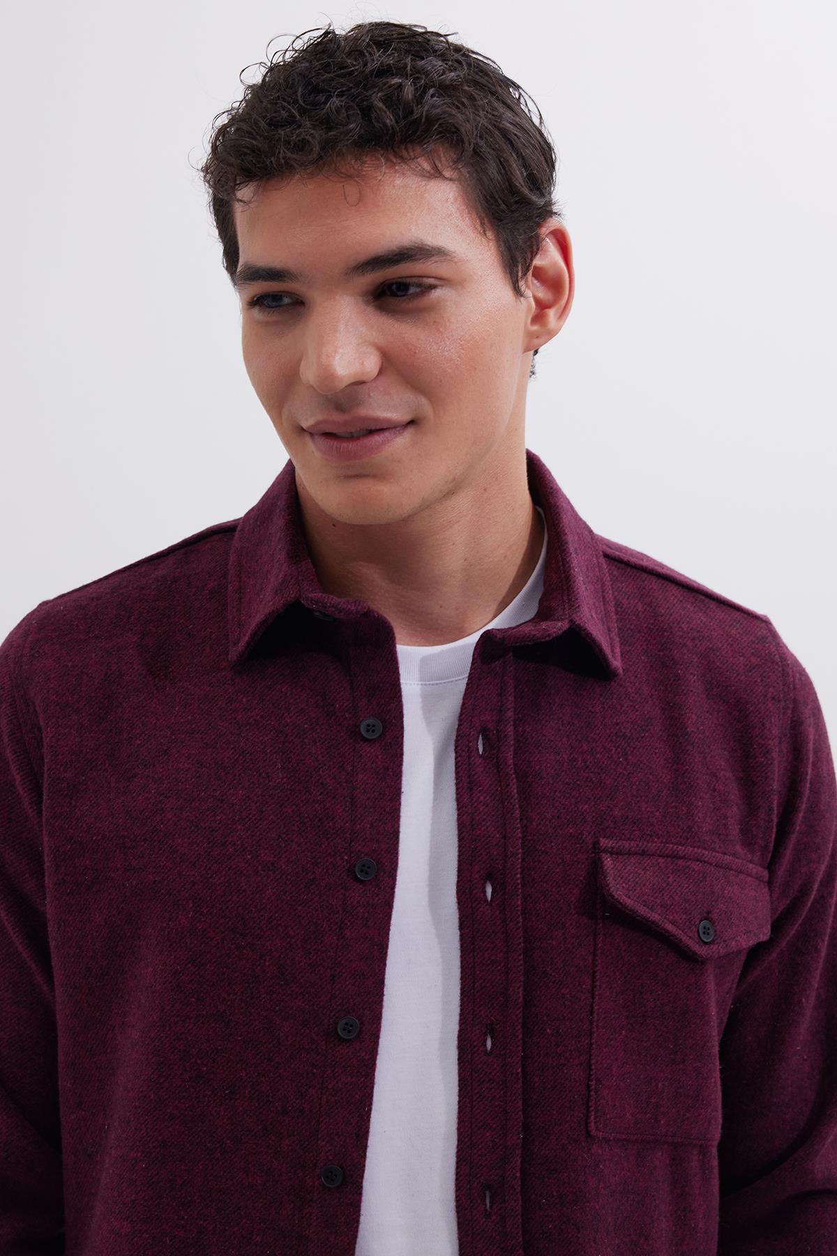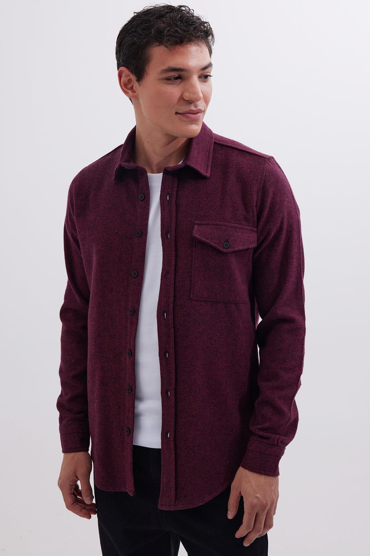 Erkek Slim Fit Tek Cep Kapaklı Düz Oduncu Spor Bordo Gömlek (DR250026-2021)