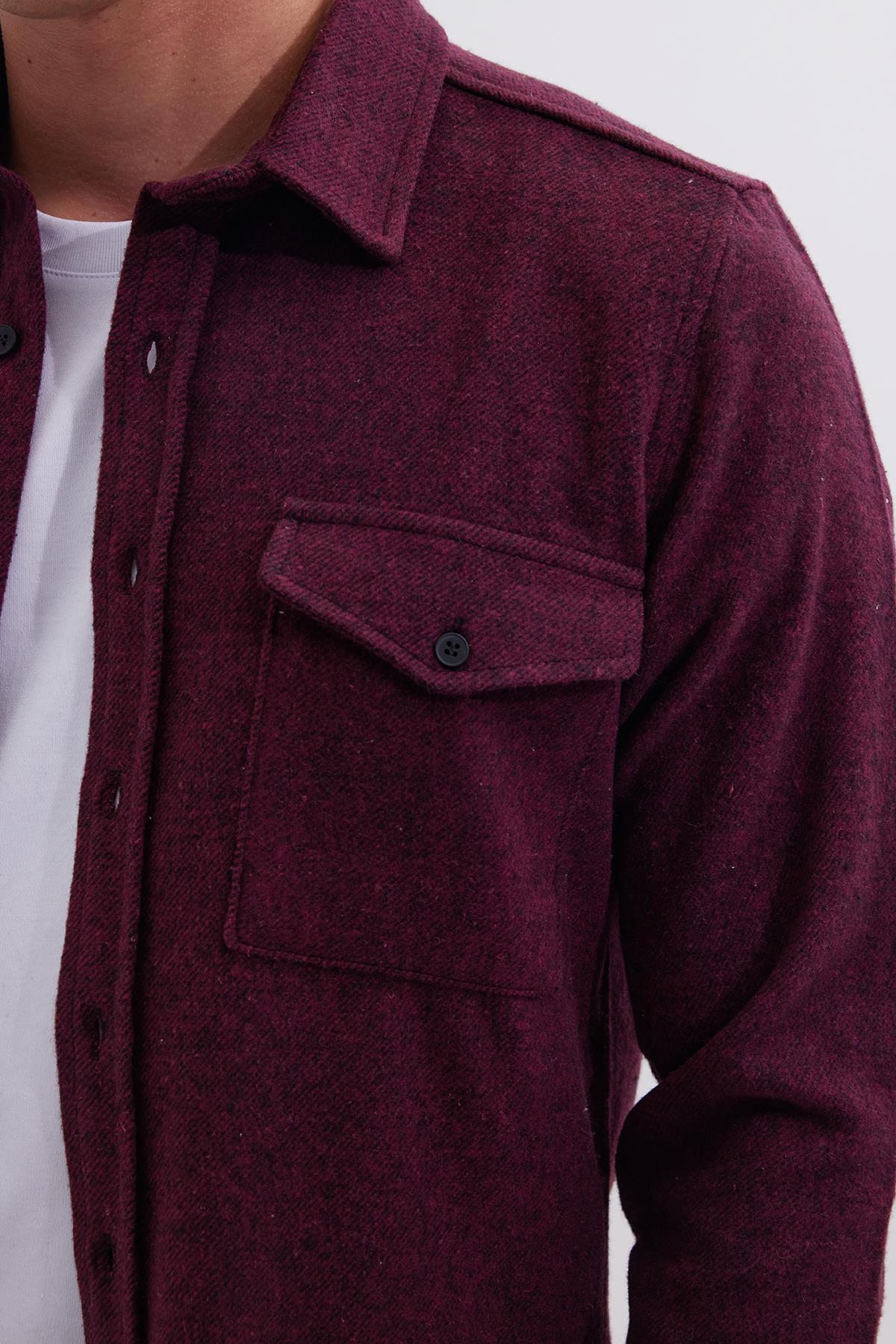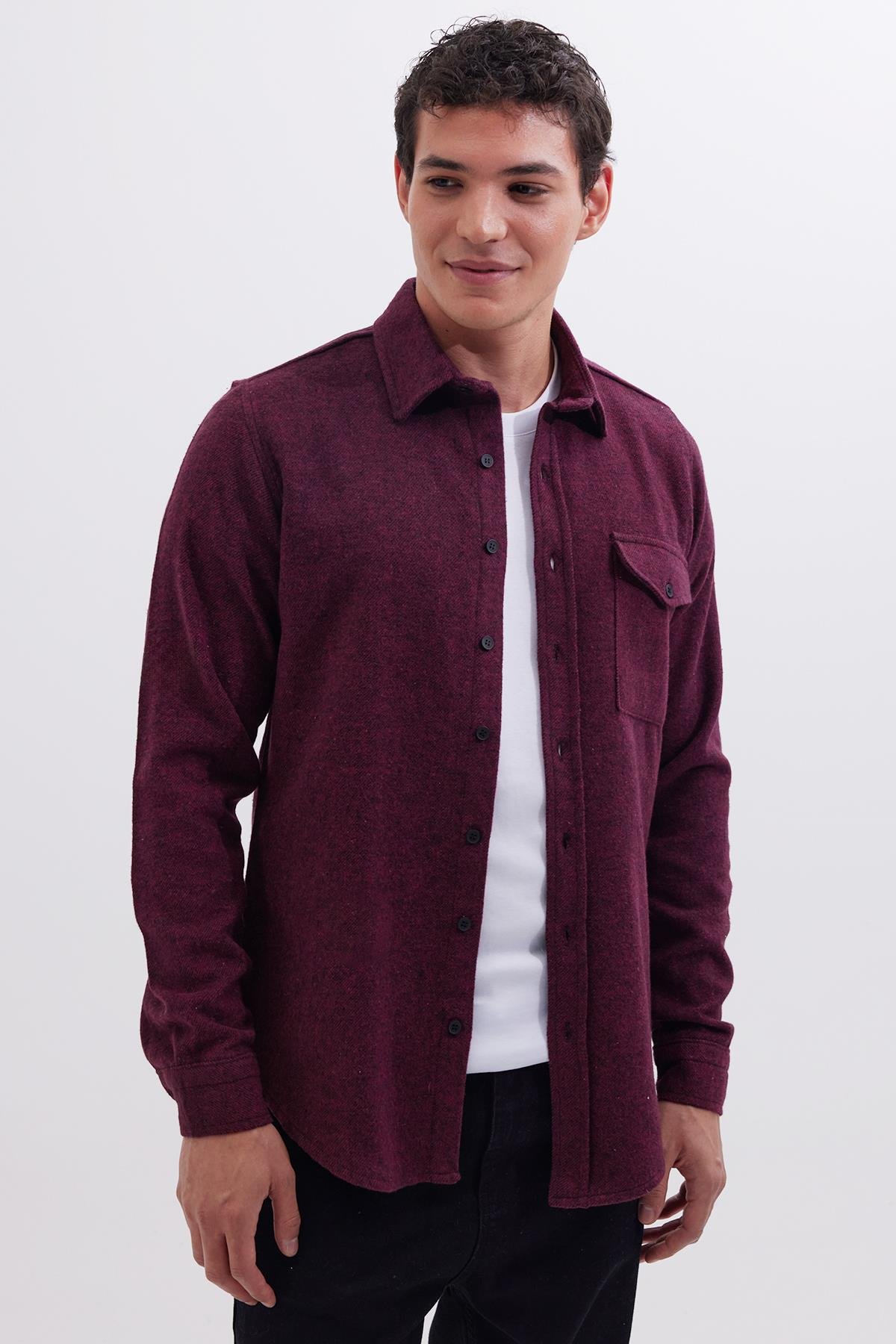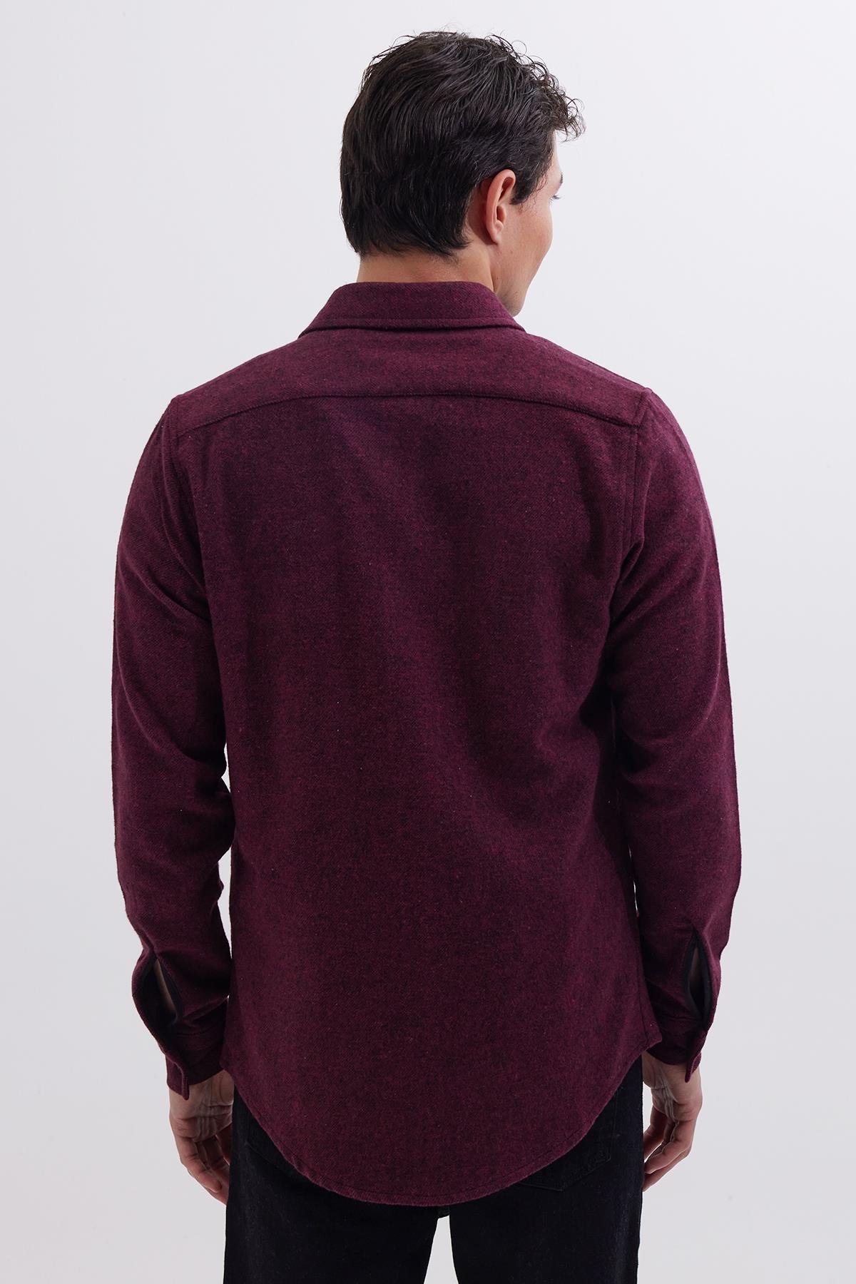 Erkek Slim Fit Tek Cep Kapaklı Düz Oduncu Spor Bordo Gömlek (DR250026-2021)