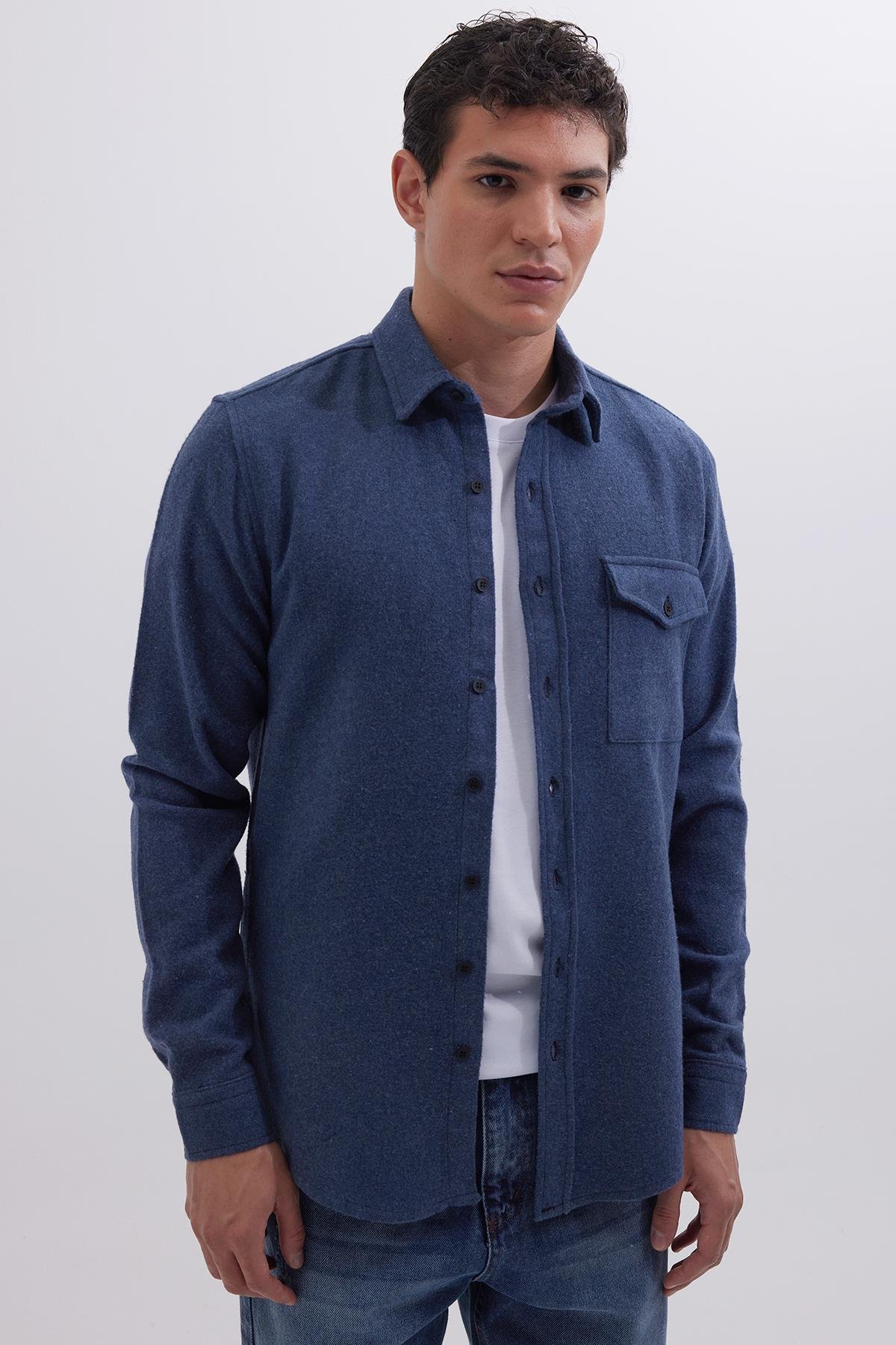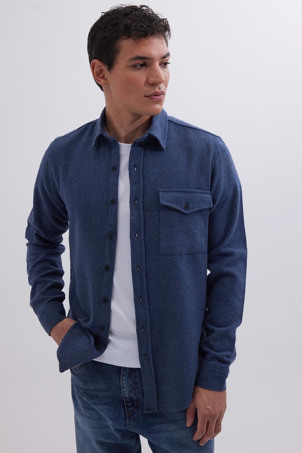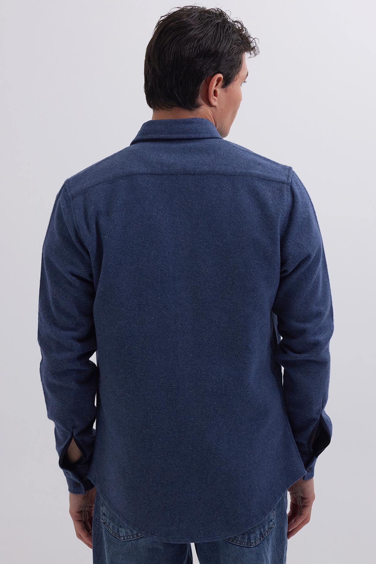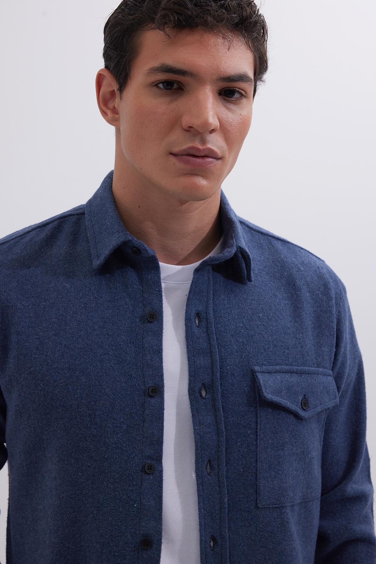 Erkek Slim Fit Tek Cep Kapaklı Düz Oduncu Spor İndigo Gömlek (DR250026-2022)