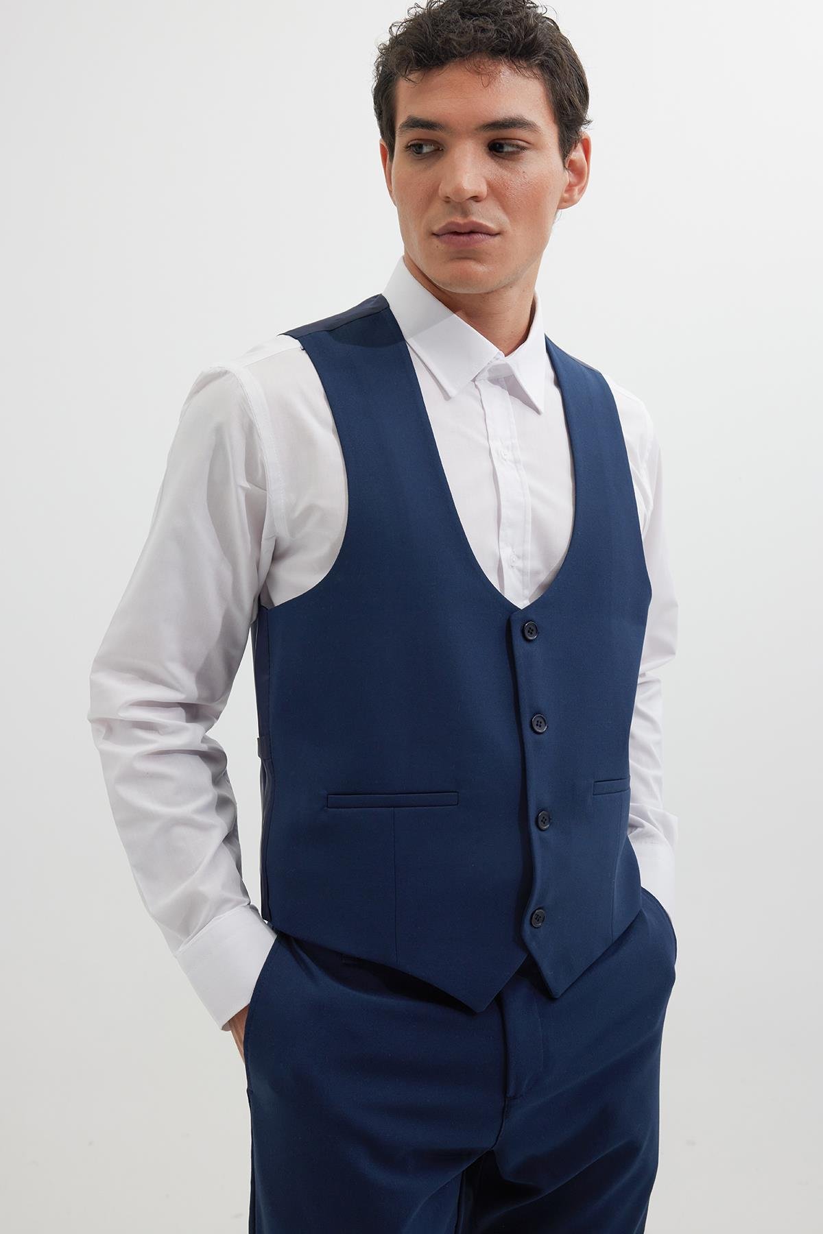 Erkek Standart Fit Normal Kesim Düz Fleto Cepli Lacivert Yelek (YL250012-47)