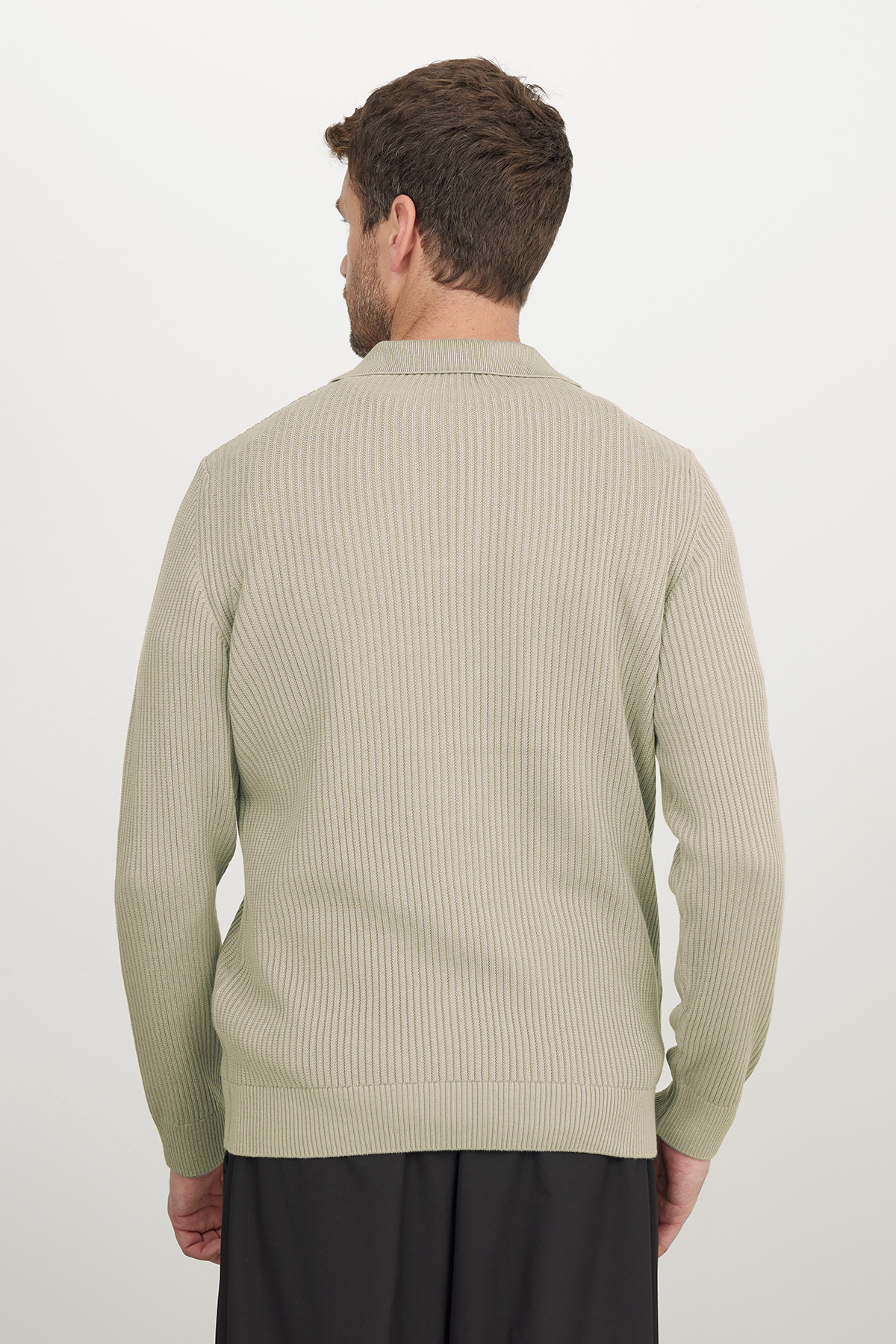 Erkek Standart Fit Normal Kesim Pamuklu Polo V Yaka Taş Kazak