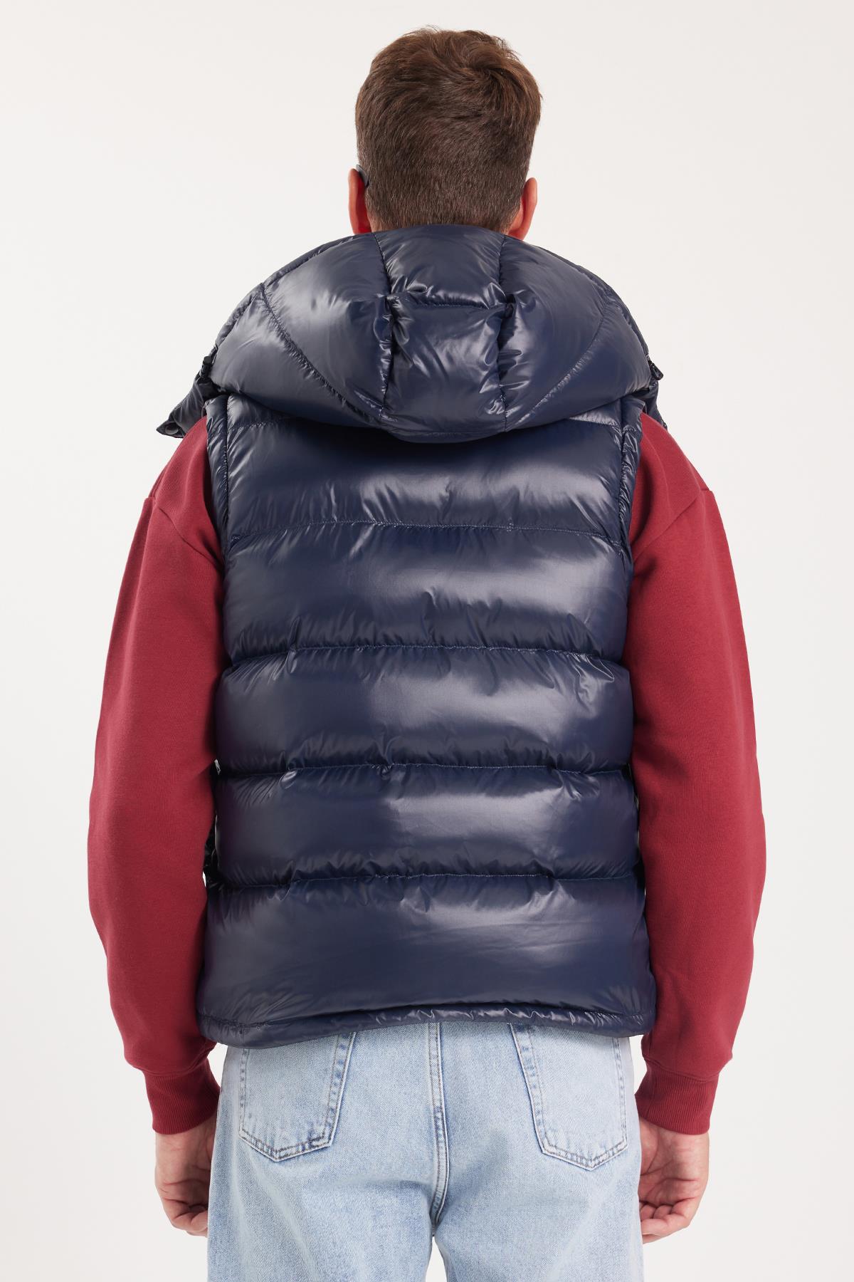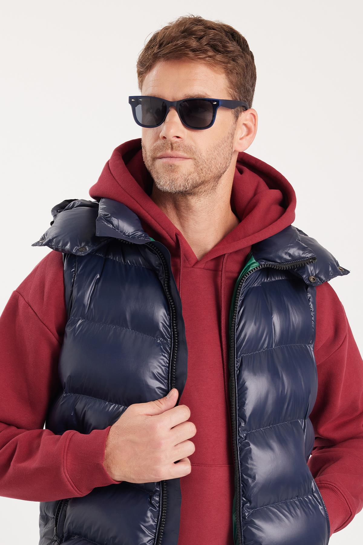 Erkek Standart Fit Normal Kesim Sıfır Kol Çift Cepli Fermuarlı Lacivert Şişme Yelek