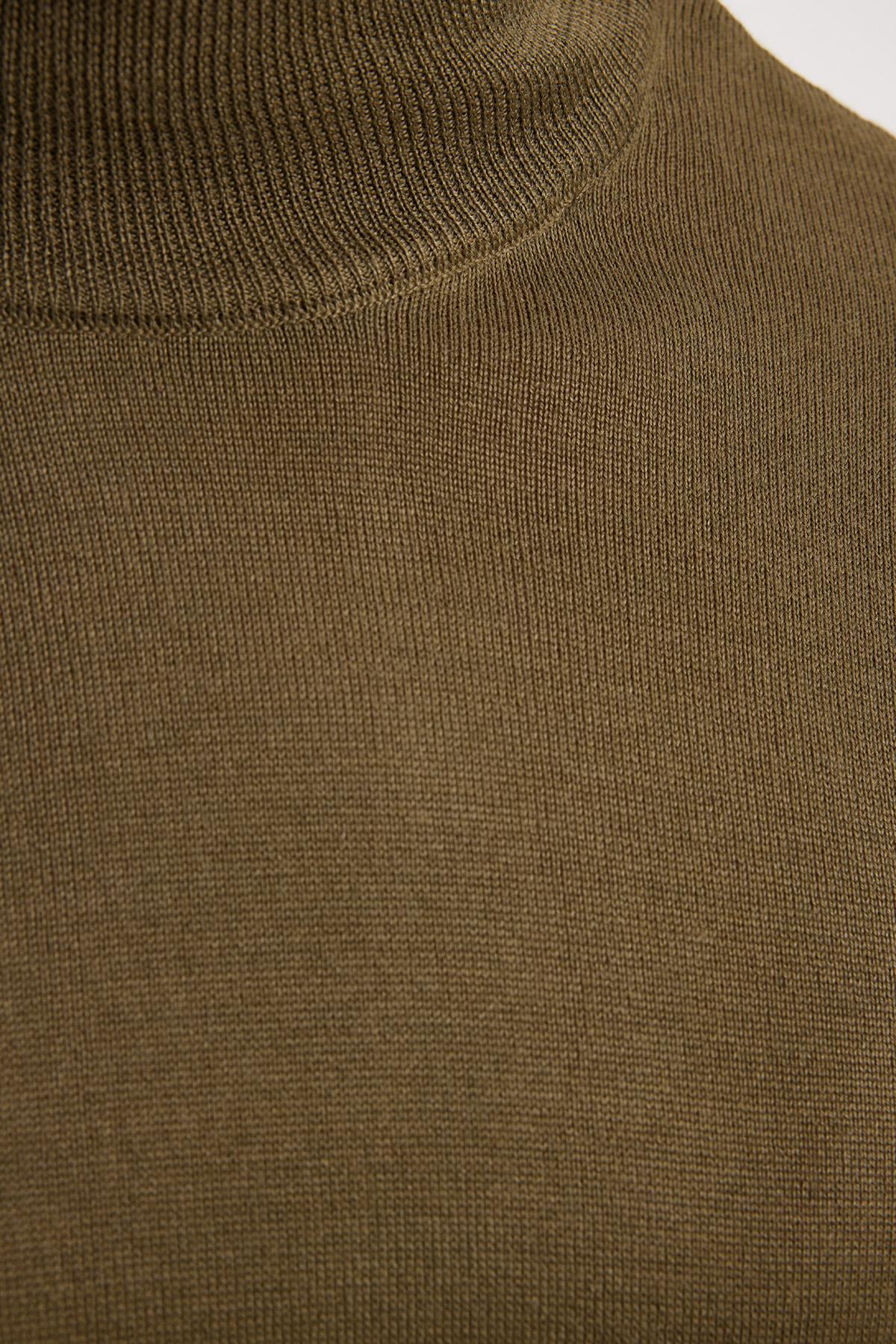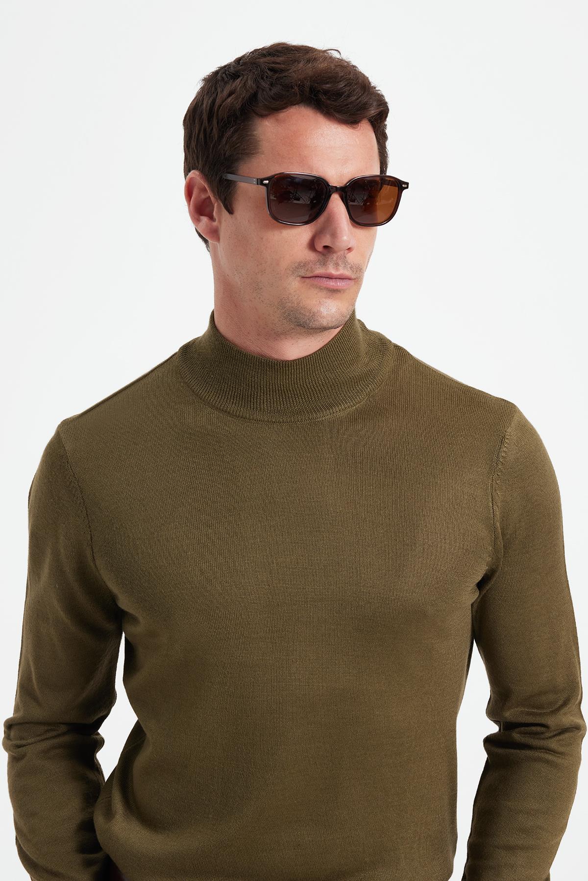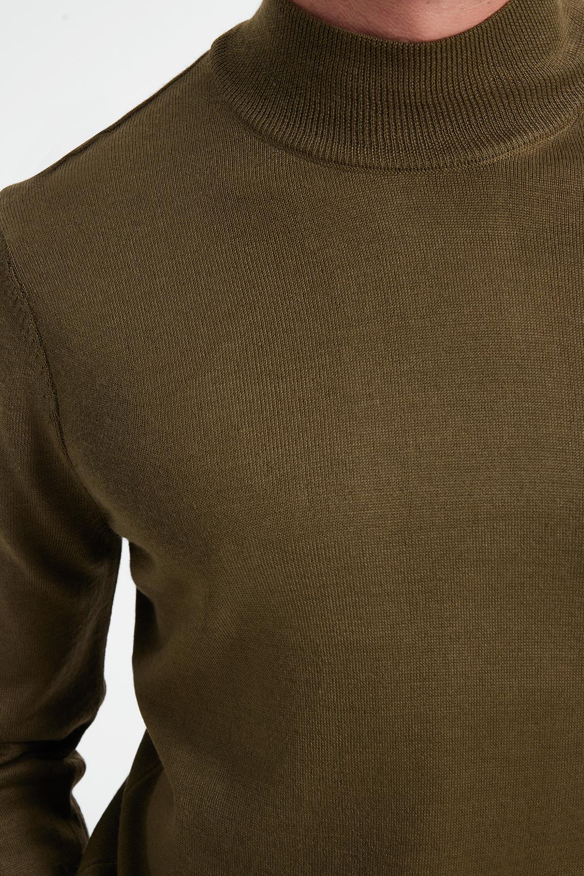 Erkek Standart Fit Normal Kesim Yarım Balıkçı Yaka Düz Haki Triko Kazak