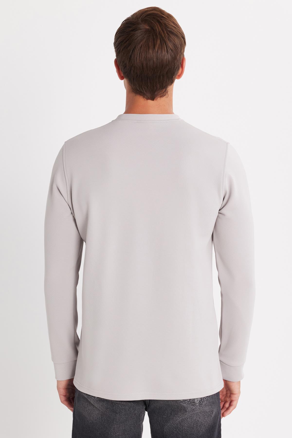 Erkek Standart Fit Pamuklu Bisiklet Yaka Şardonlu Baskılı Açık Gri Sweatshirt (SW250018-A.G)