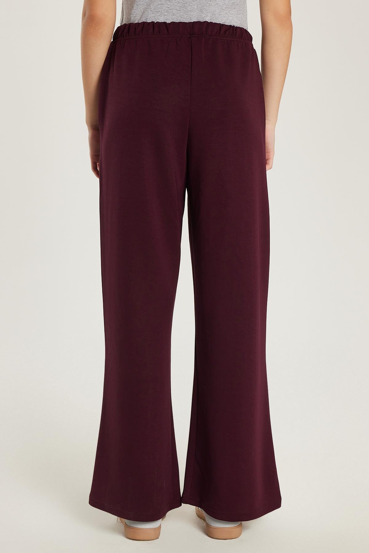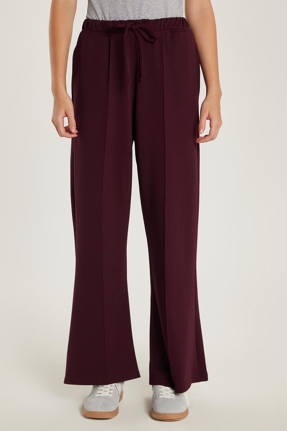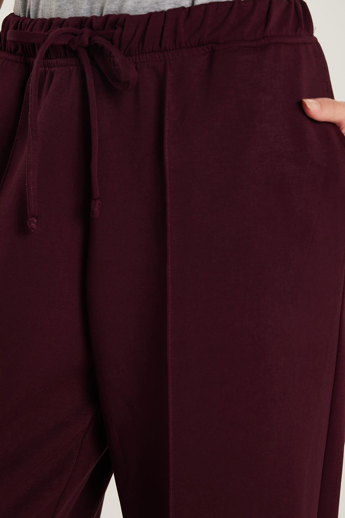 Kadın Modal Kumaş Relax Fit Beli Lastikli Bağlamalı Bordo Pantolon