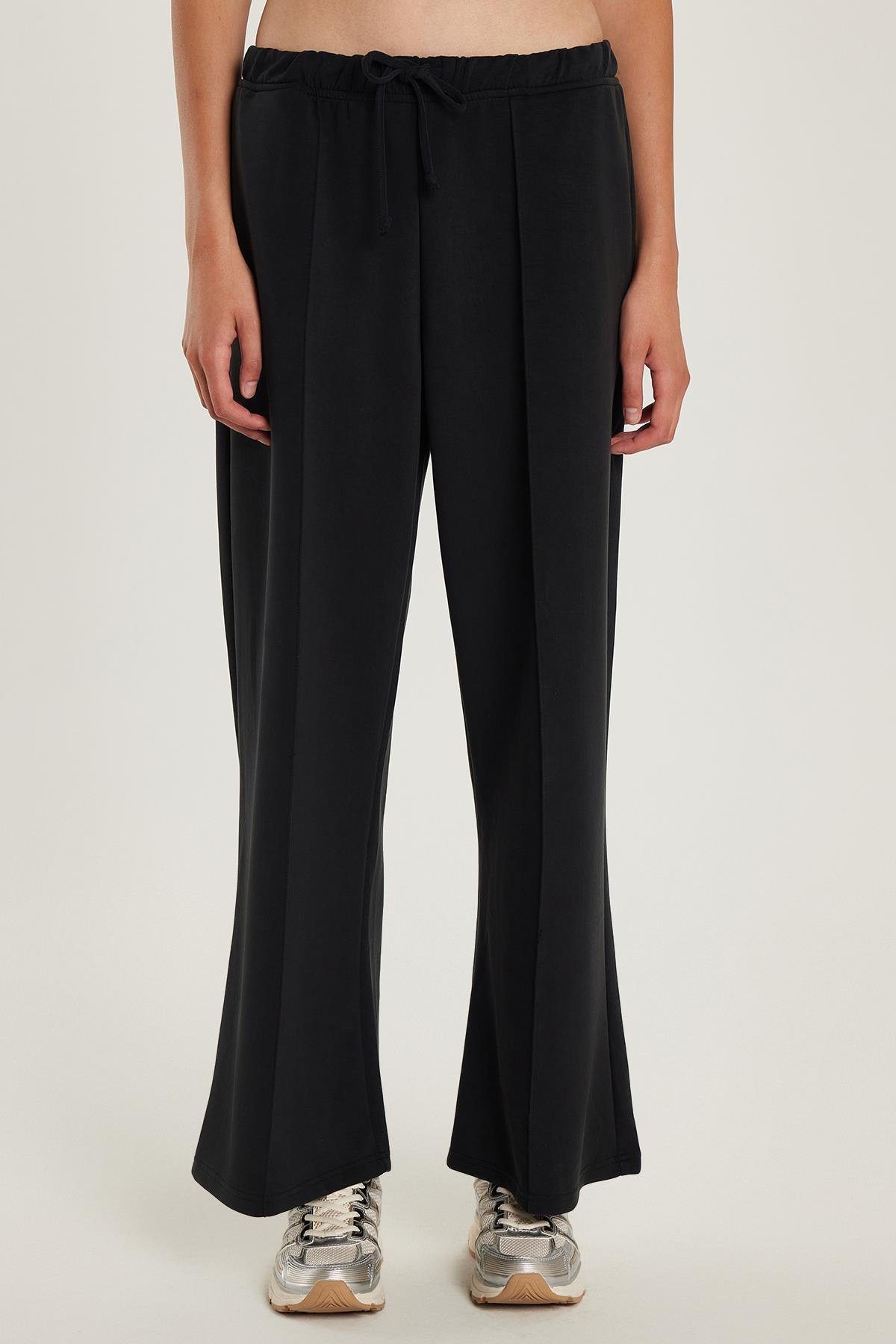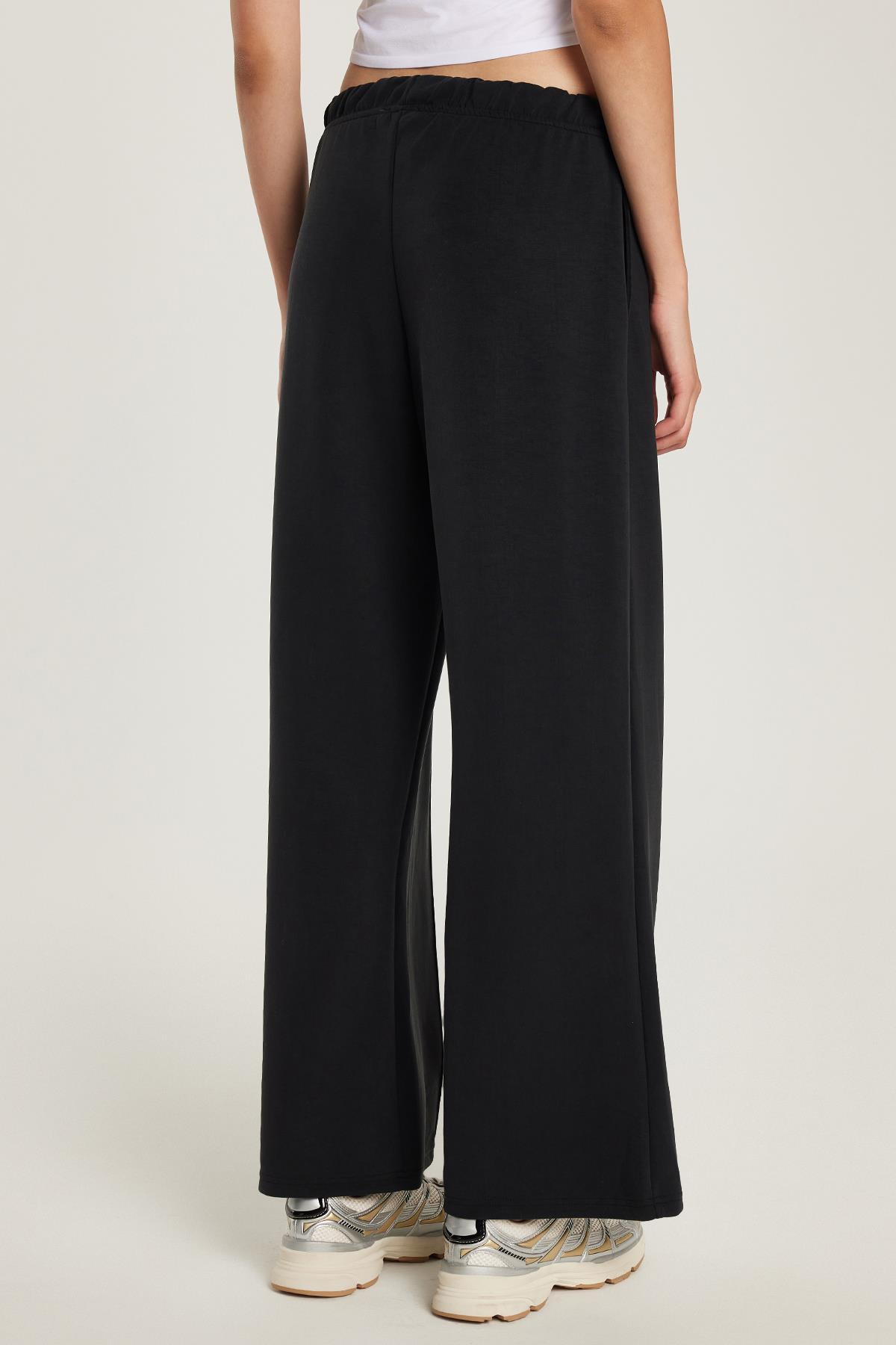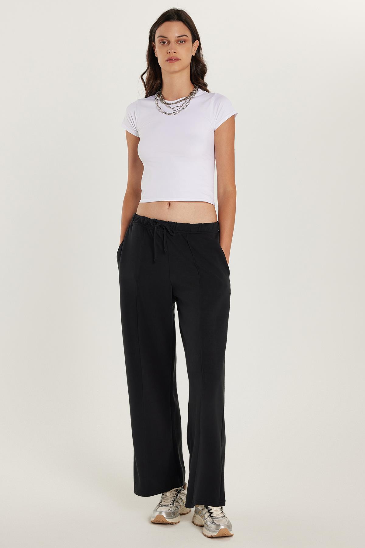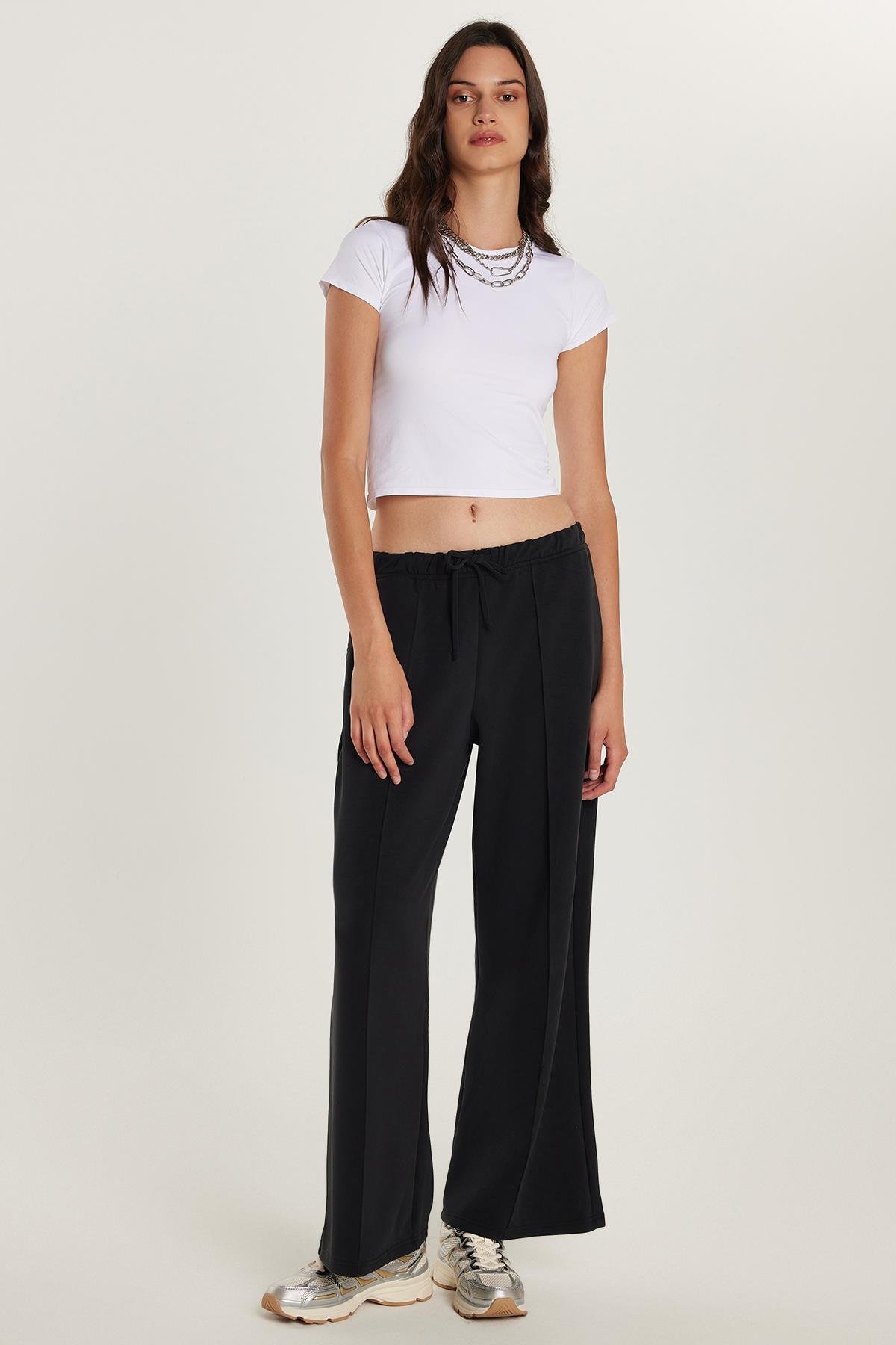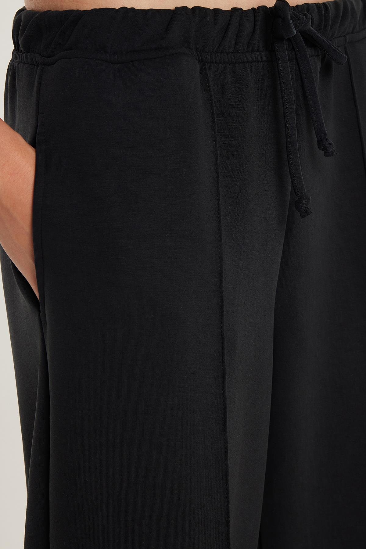 Kadın Modal Kumaş Slim Fit Dar Kesim Beli Lastikli Bağcıklı Siyah Pantolon (KDN25236-02)