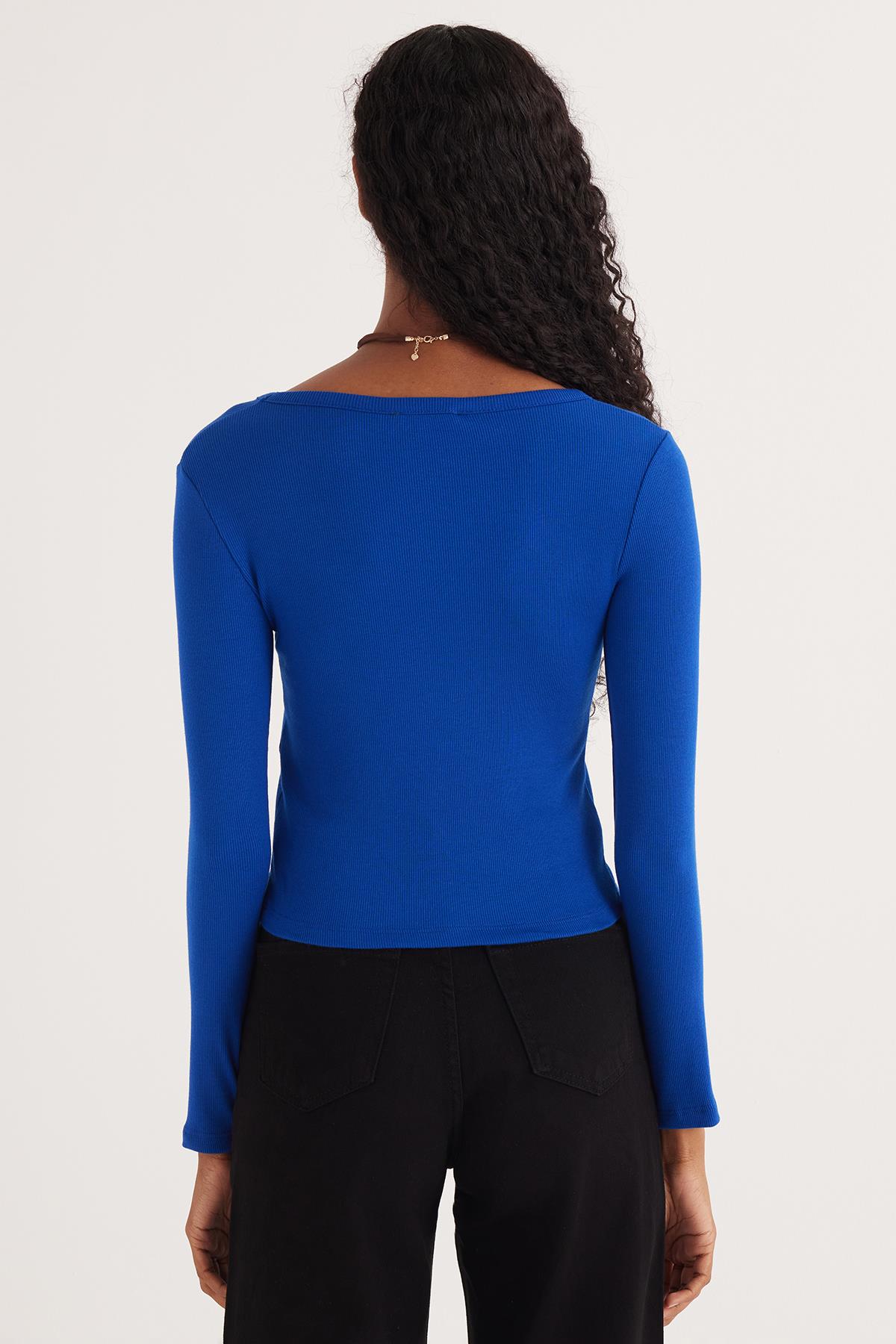 Kadın Modal Kumaş Slim Fit Pamuklu Düz V Yaka Mavi Bluz (BYGM2513-SBL)
