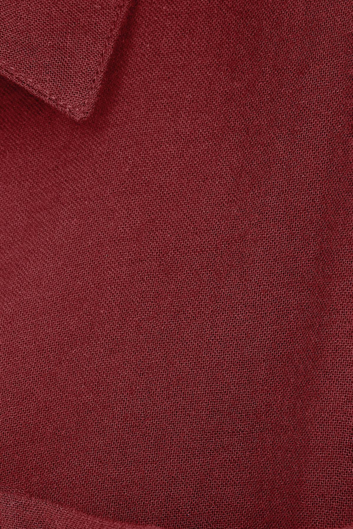 Kadın Oversize Geniş Kesim %100 Pamuk Müslin Kumaş Uzun Kollu Cepli Dokulu Bordo Gömlek