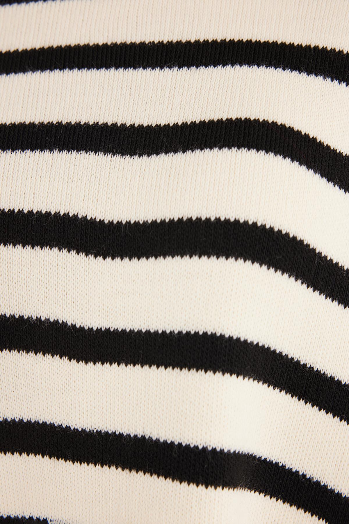Kadın Oversize Geniş Kesim Bisiklet Yaka Çizgili Beyaz Kazak
