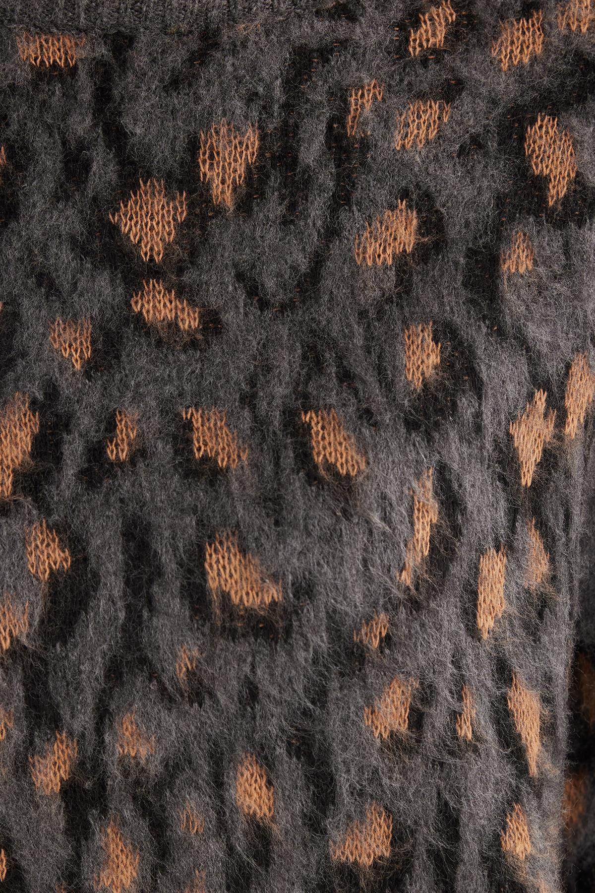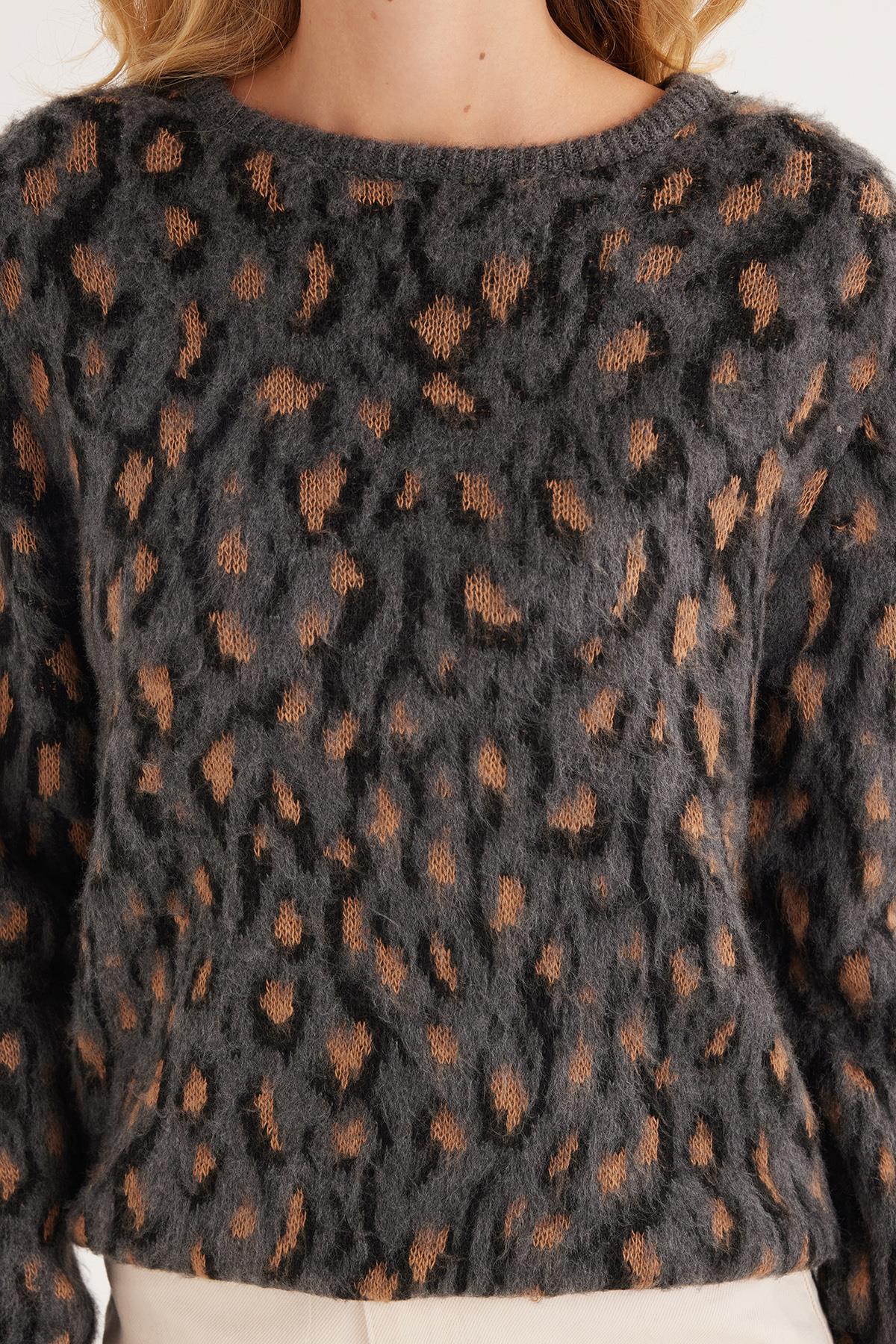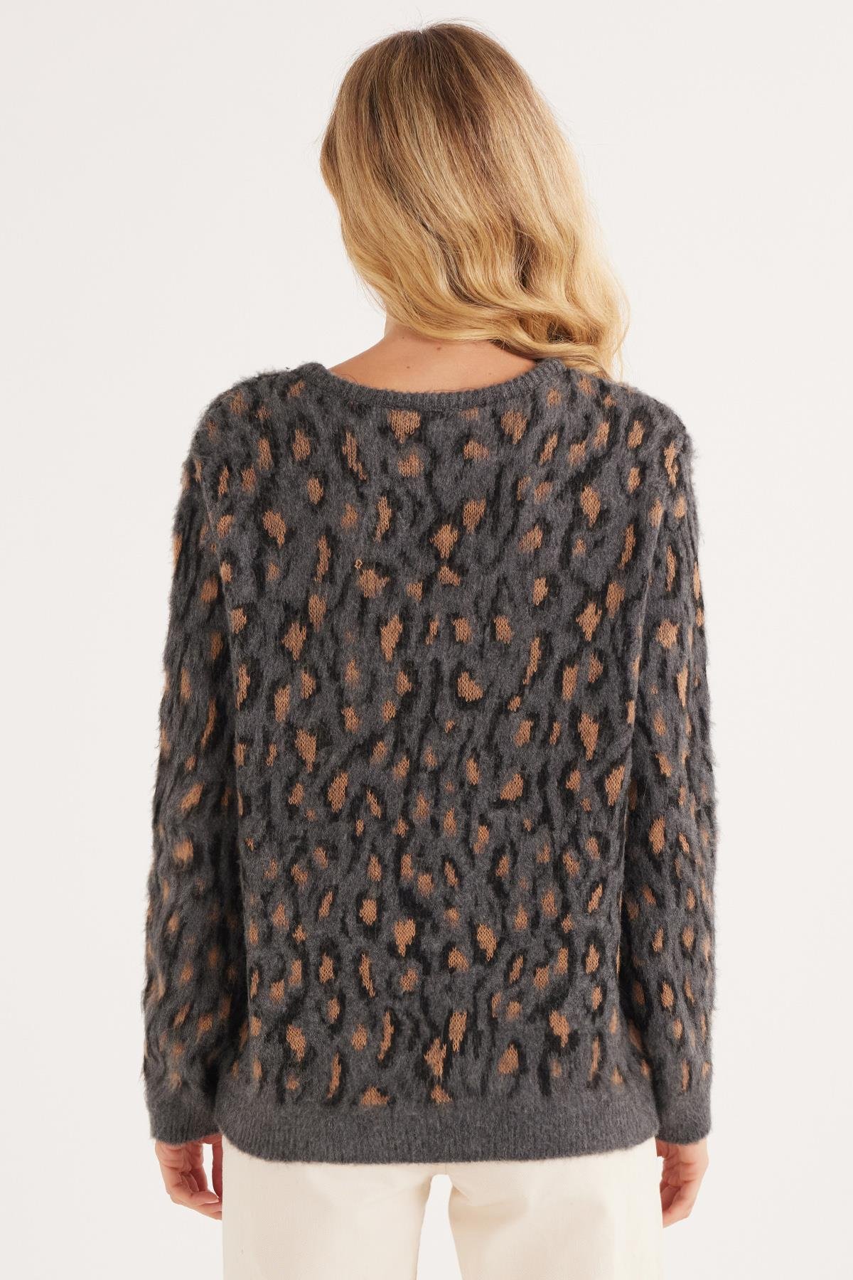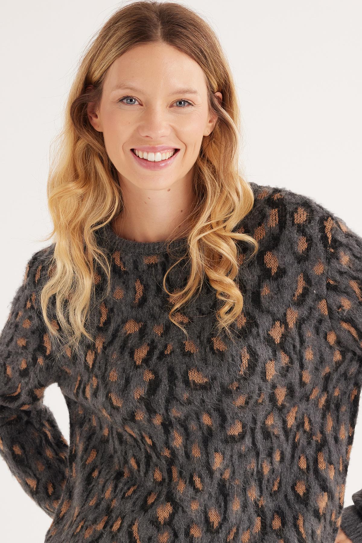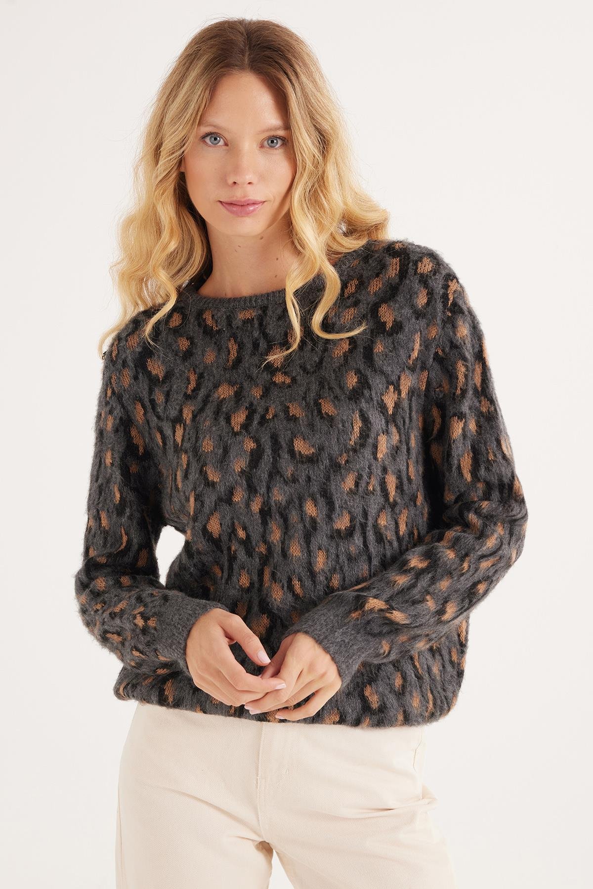 Kadın Oversize Geniş Kesim Bisiklet Yaka Desenli Kazak (BYKZ2523-ANHCT)