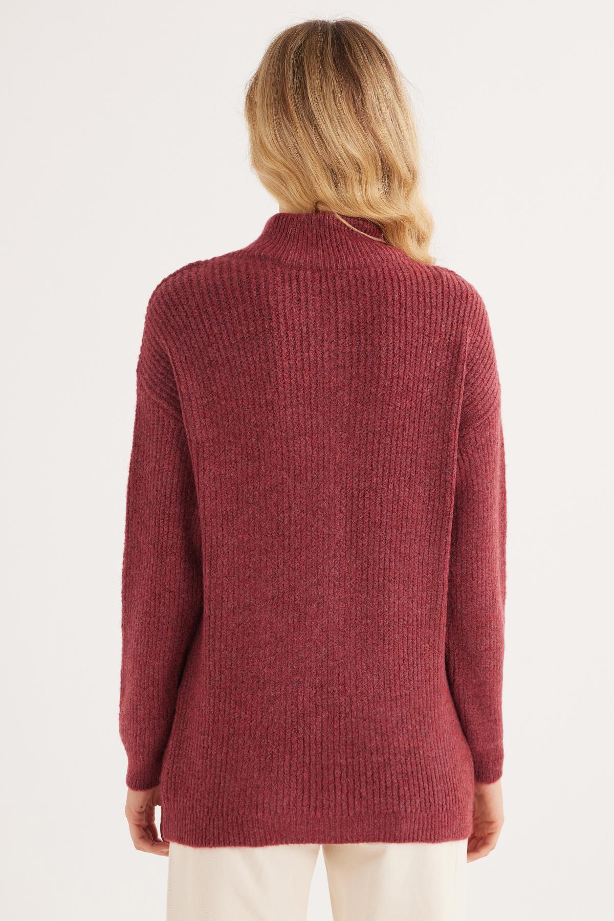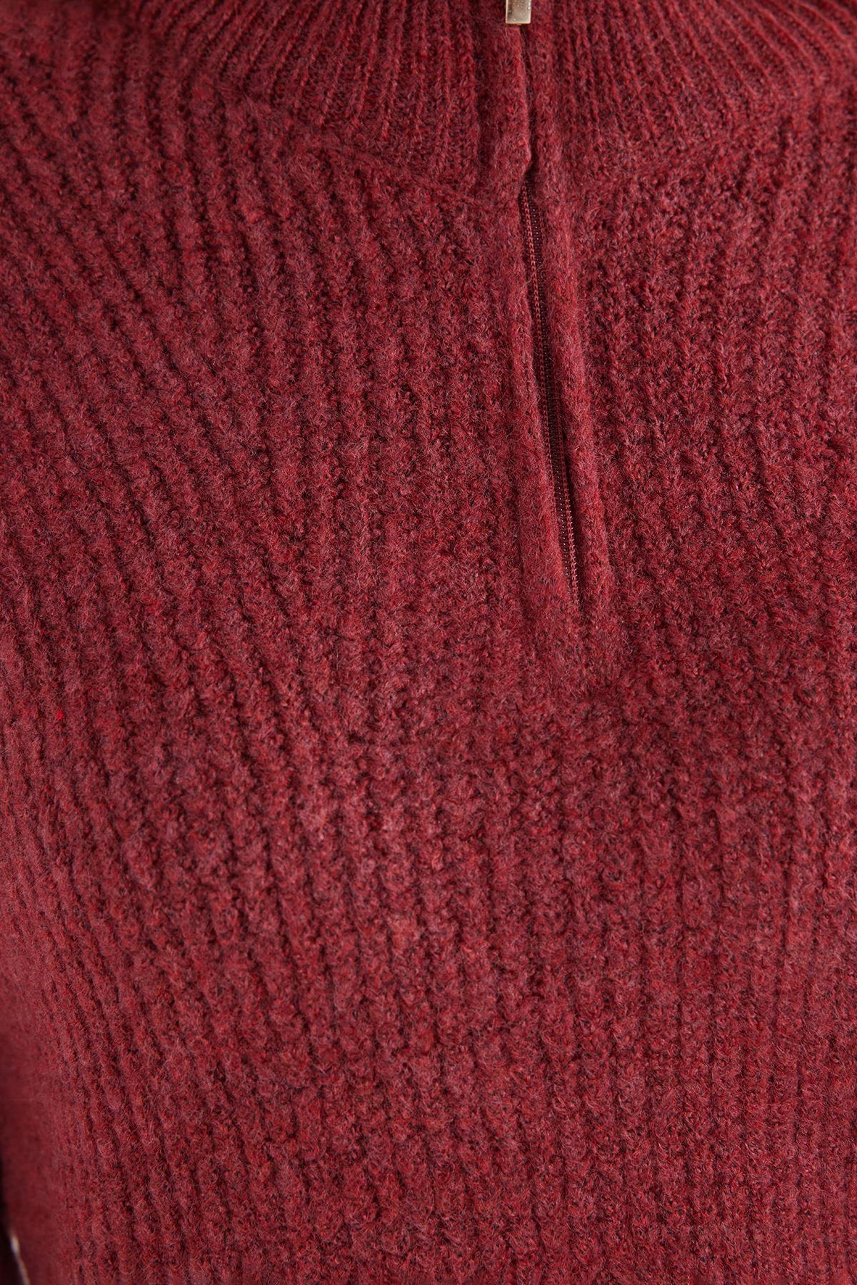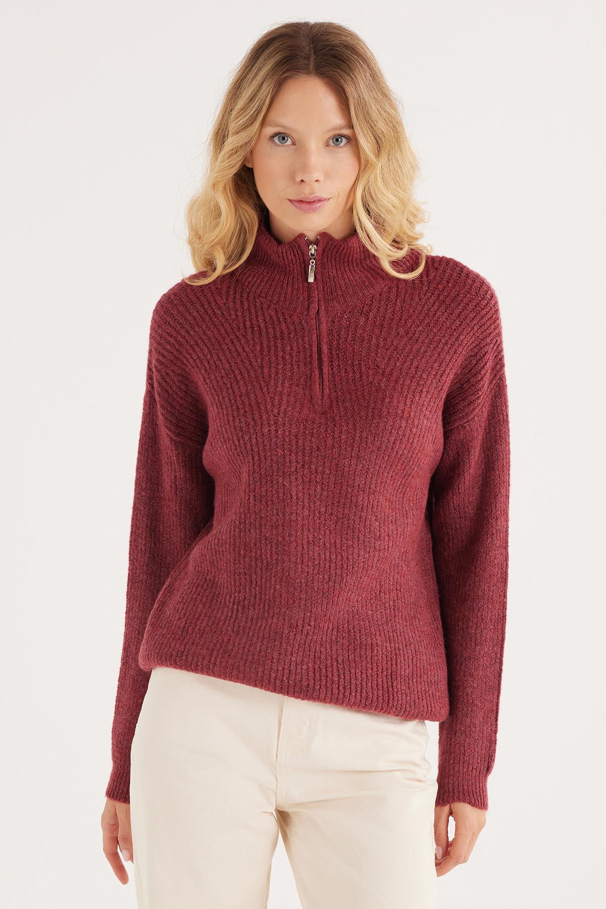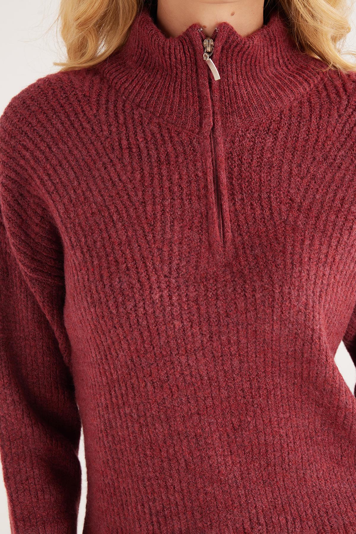 Kadın Oversize Geniş Kesim Dokumalı Fermuarlı Yaka Gül Kurusu Kazak (BYKZ2512-dROSE)