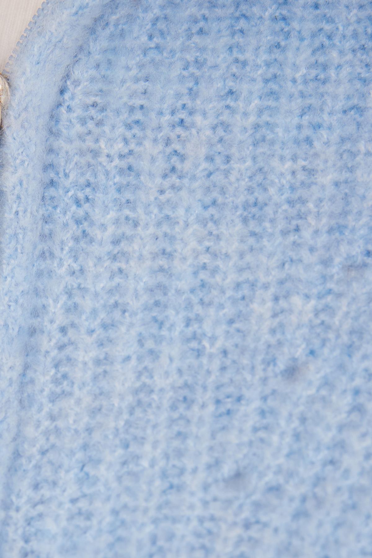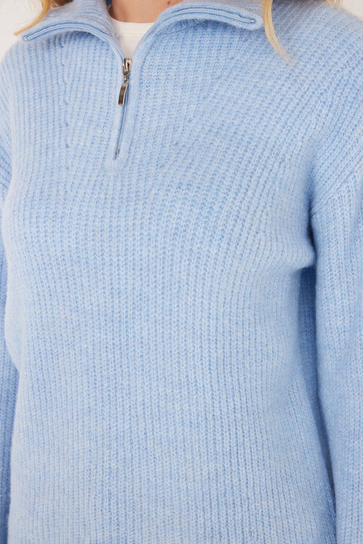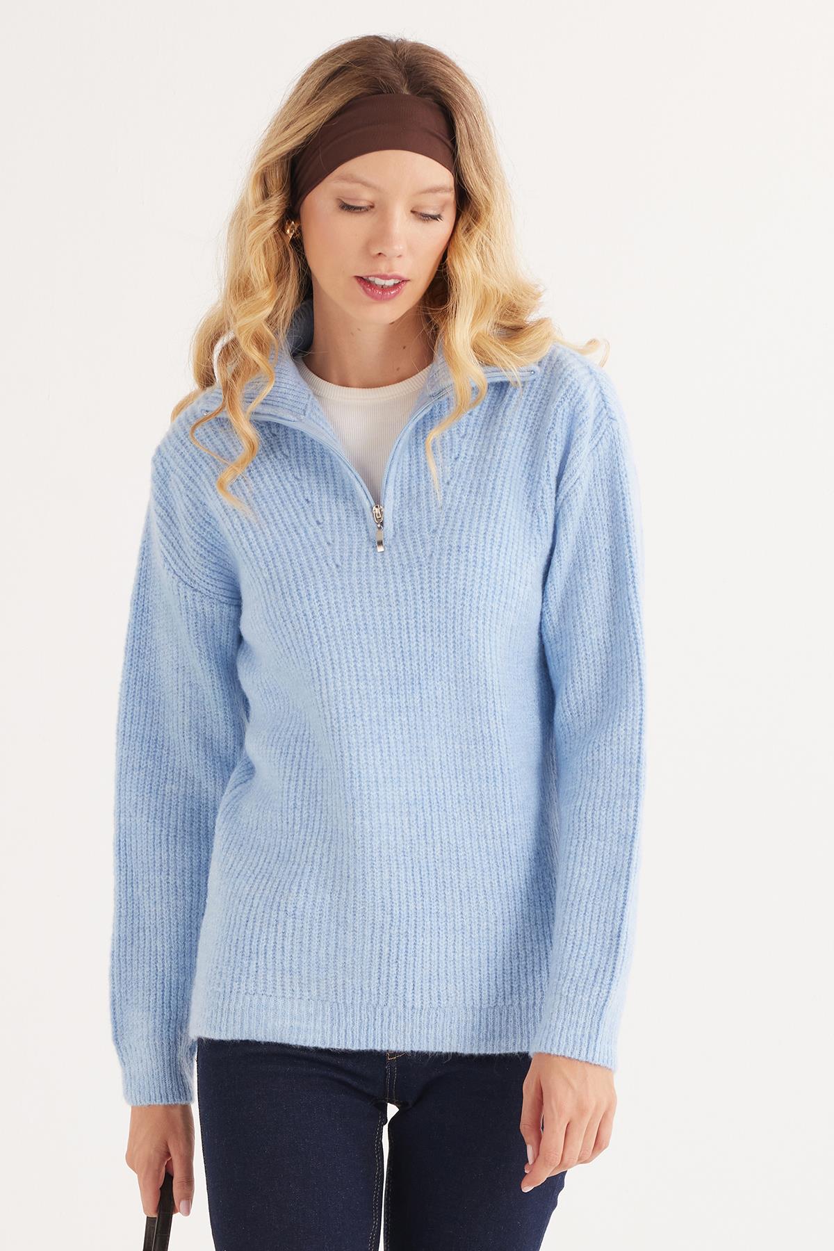 Kadın Oversize Geniş Kesim Dokumalı Fermuarlı Yaka Mavi Kazak (BYKZ2512-BB1)