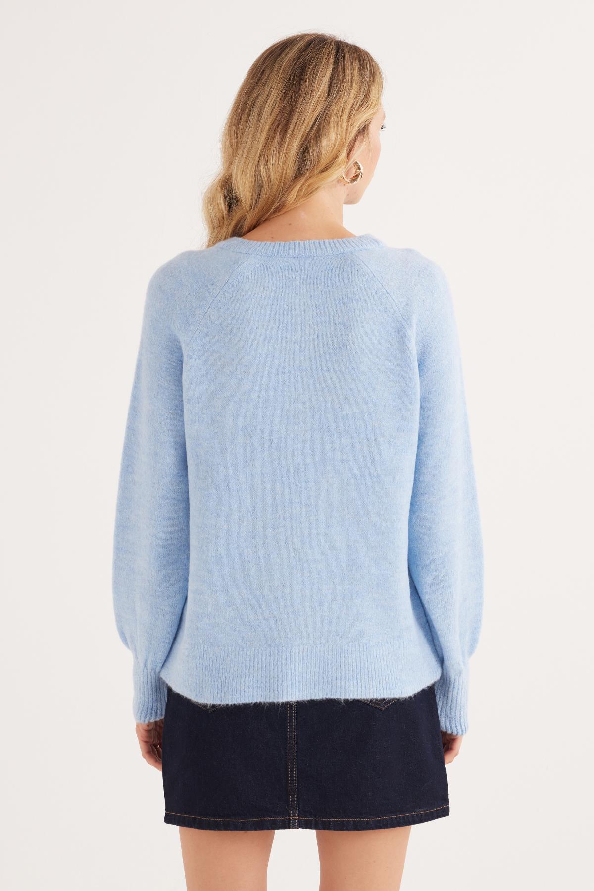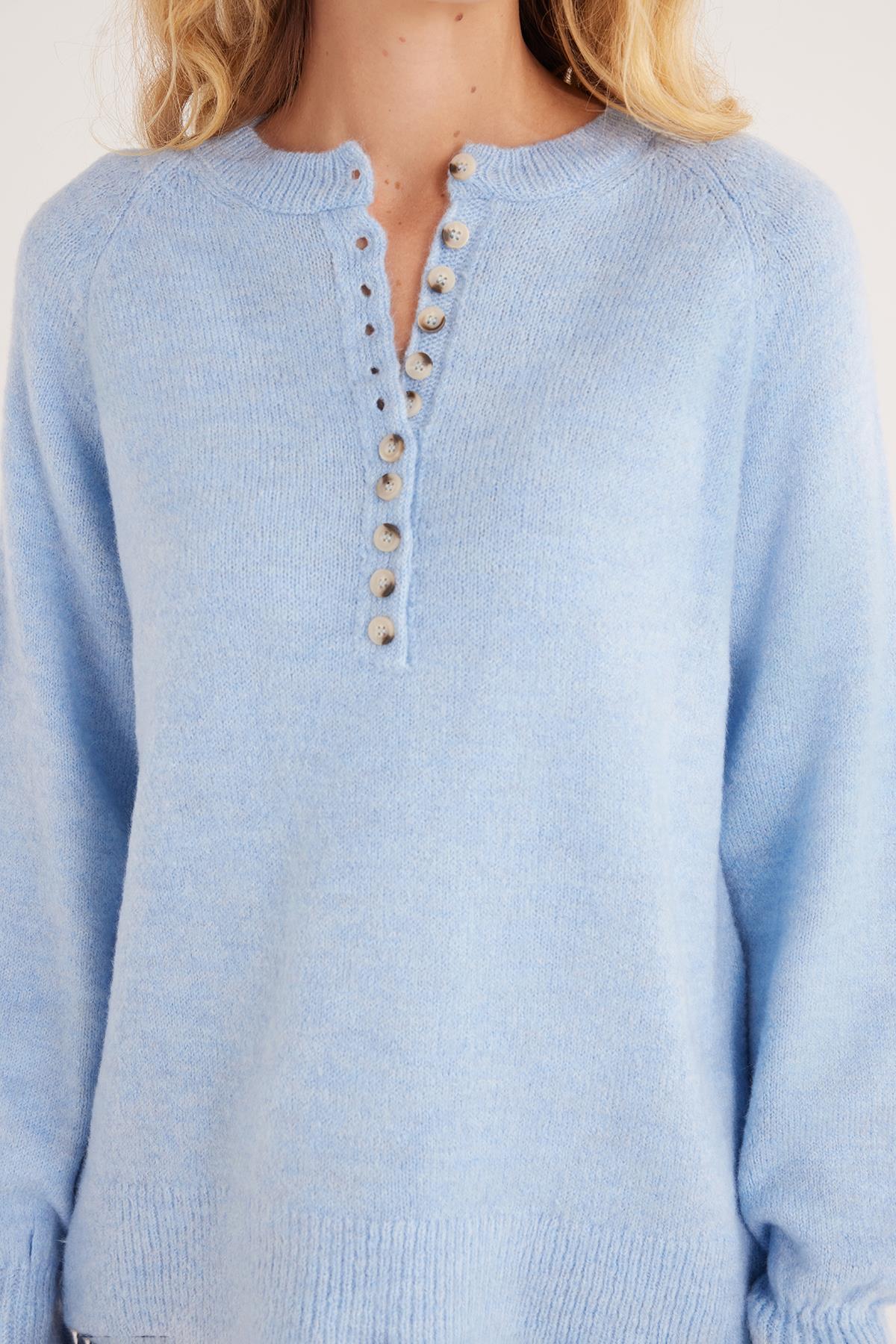 Kadın Oversize Geniş Kesim Düğmeli Yaka Mavi Kazak (BYKZ2505-22)