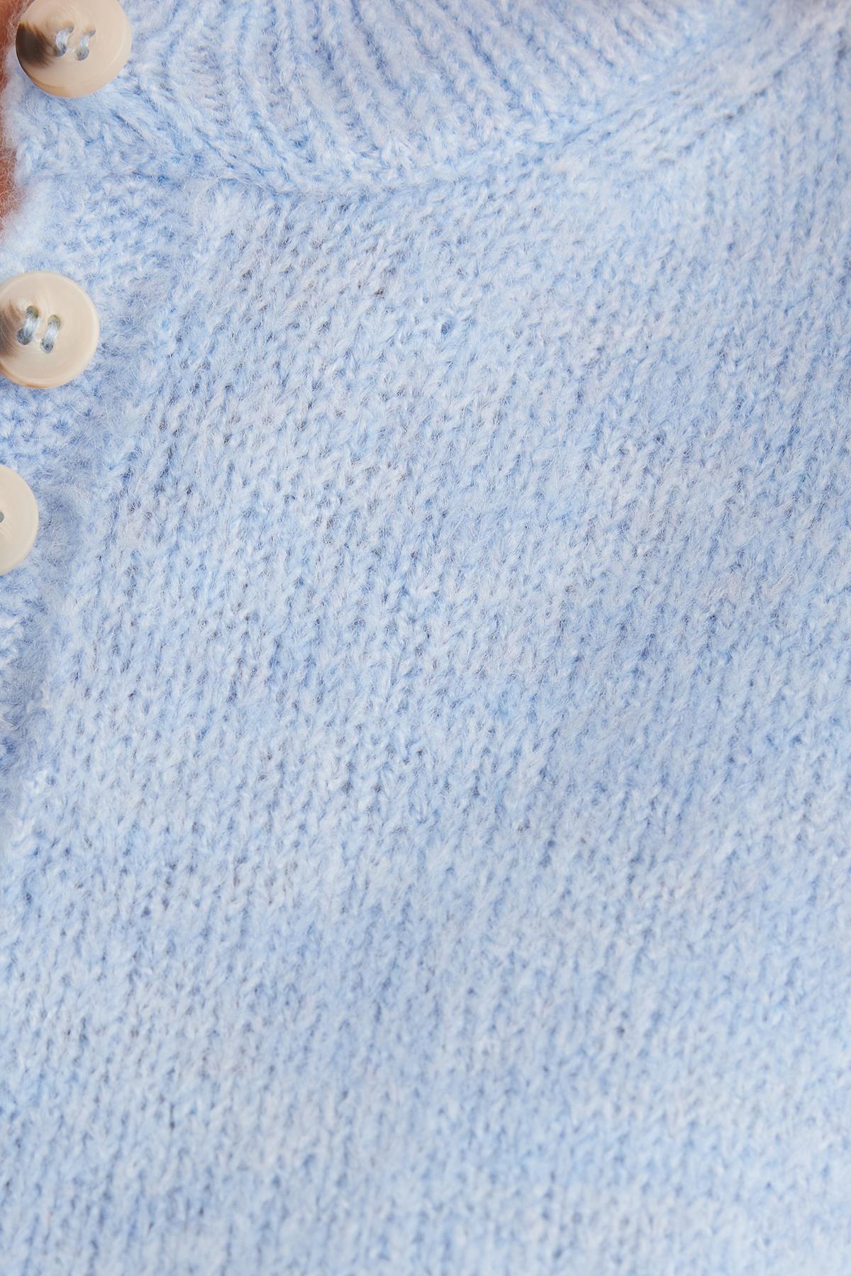Kadın Oversize Geniş Kesim Düğmeli Yaka Mavi Kazak