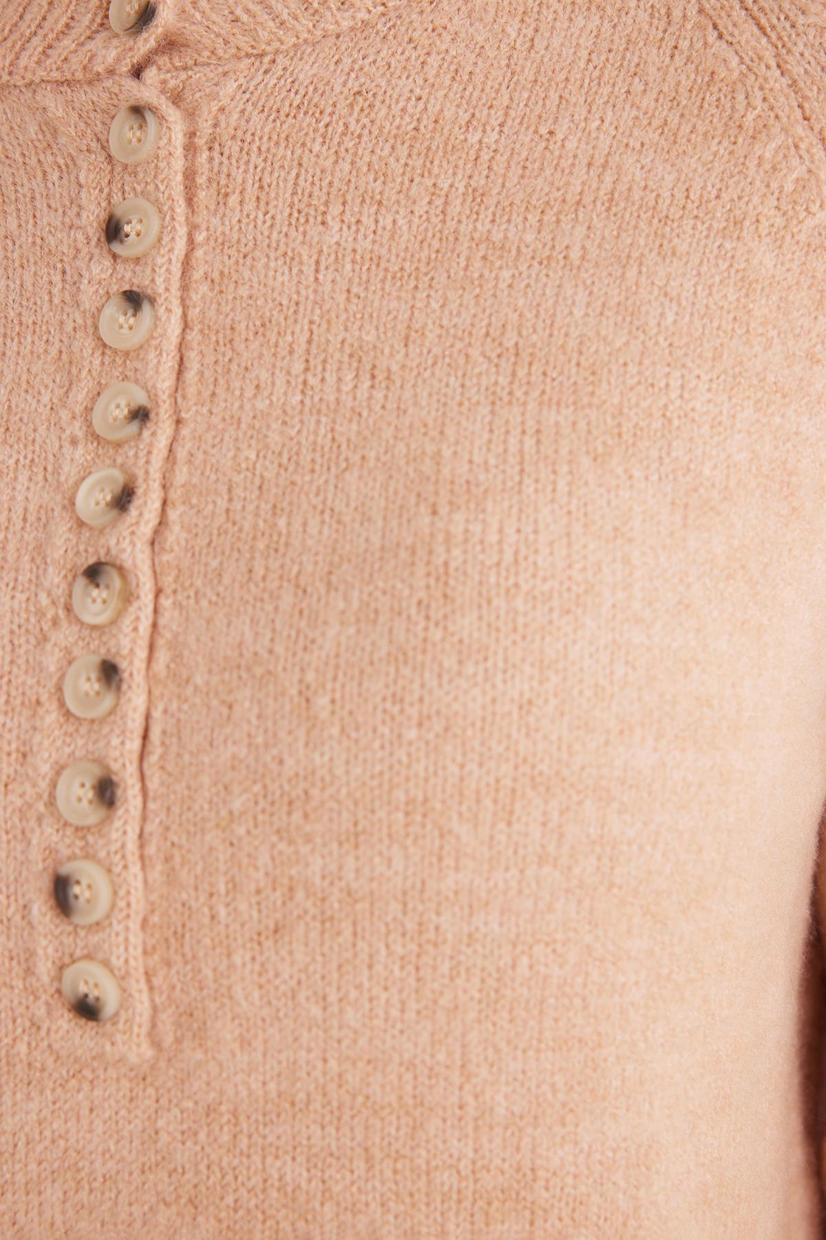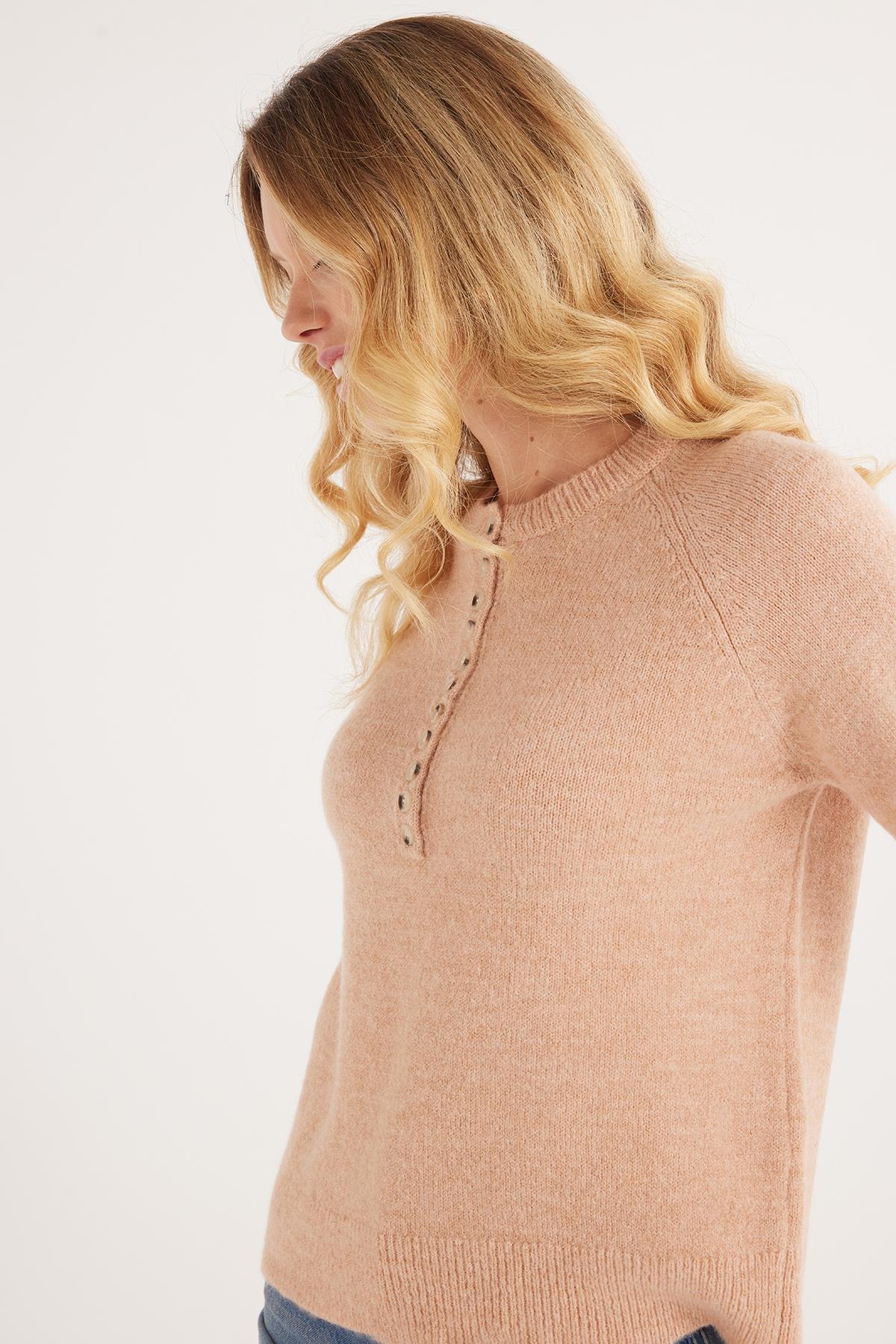 Kadın Oversize Geniş Kesim Düğmeli Yaka Pudra Kazak