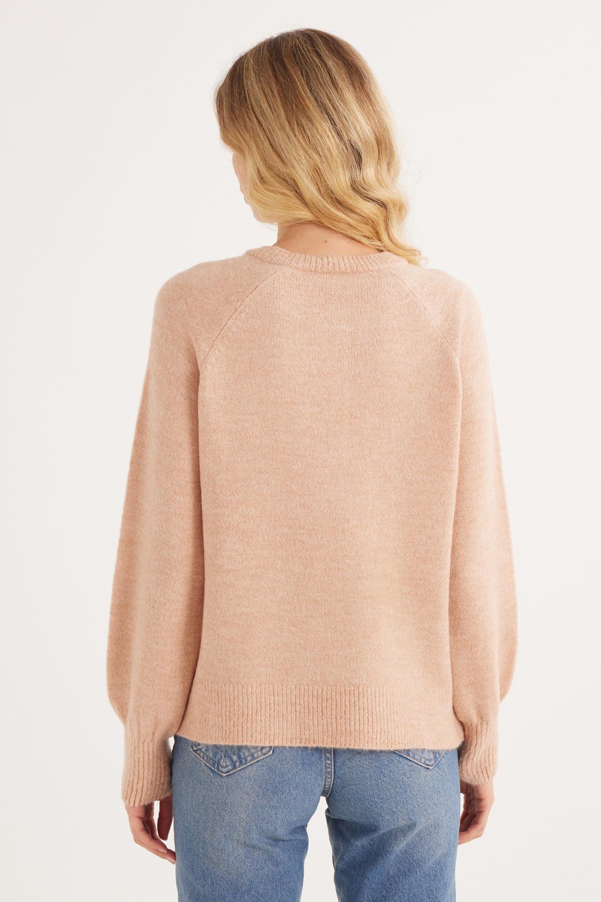 Kadın Oversize Geniş Kesim Düğmeli Yaka Pudra Kazak (BYKZ2505-PUDRA)
