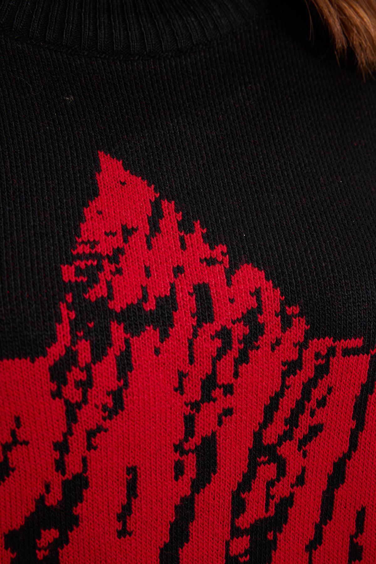 Kadın Oversize Geniş Kesim Örme Detaylı Baskılı Bisiklet Yaka Siyah Kazak