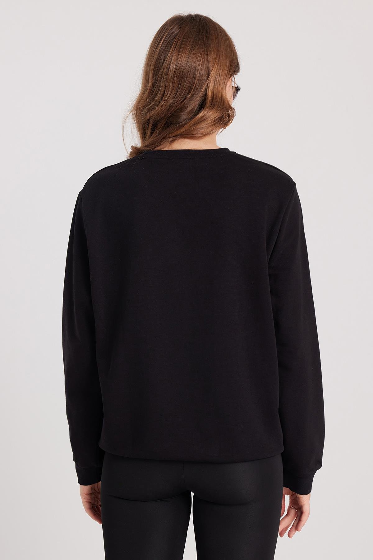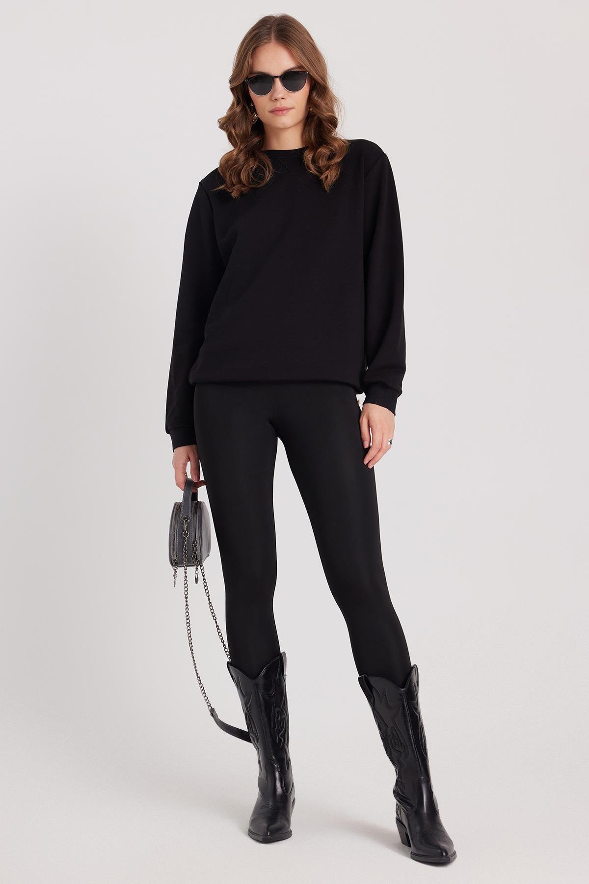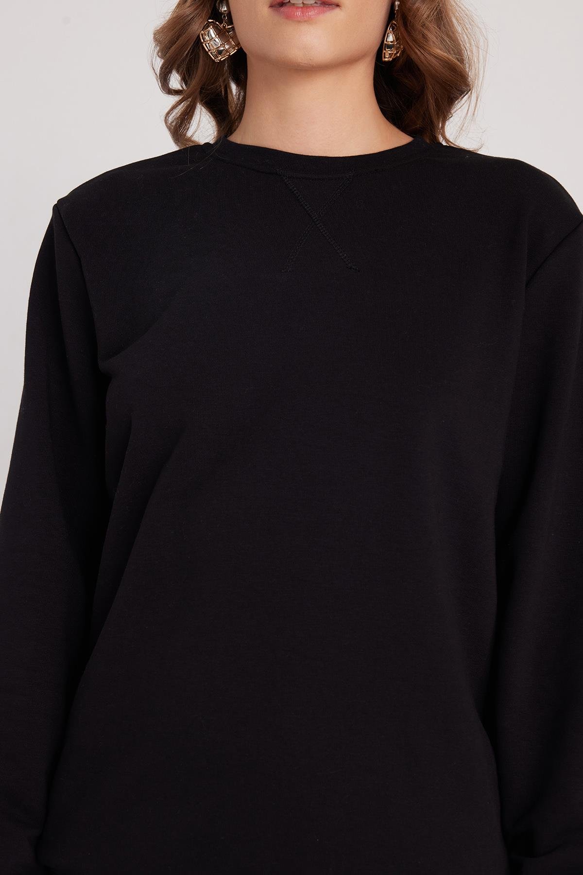 Kadın Oversize Geniş Kesim Pamuklu Basic Siyah Bisiklet Yaka Sweatshirt (SW250030-02)