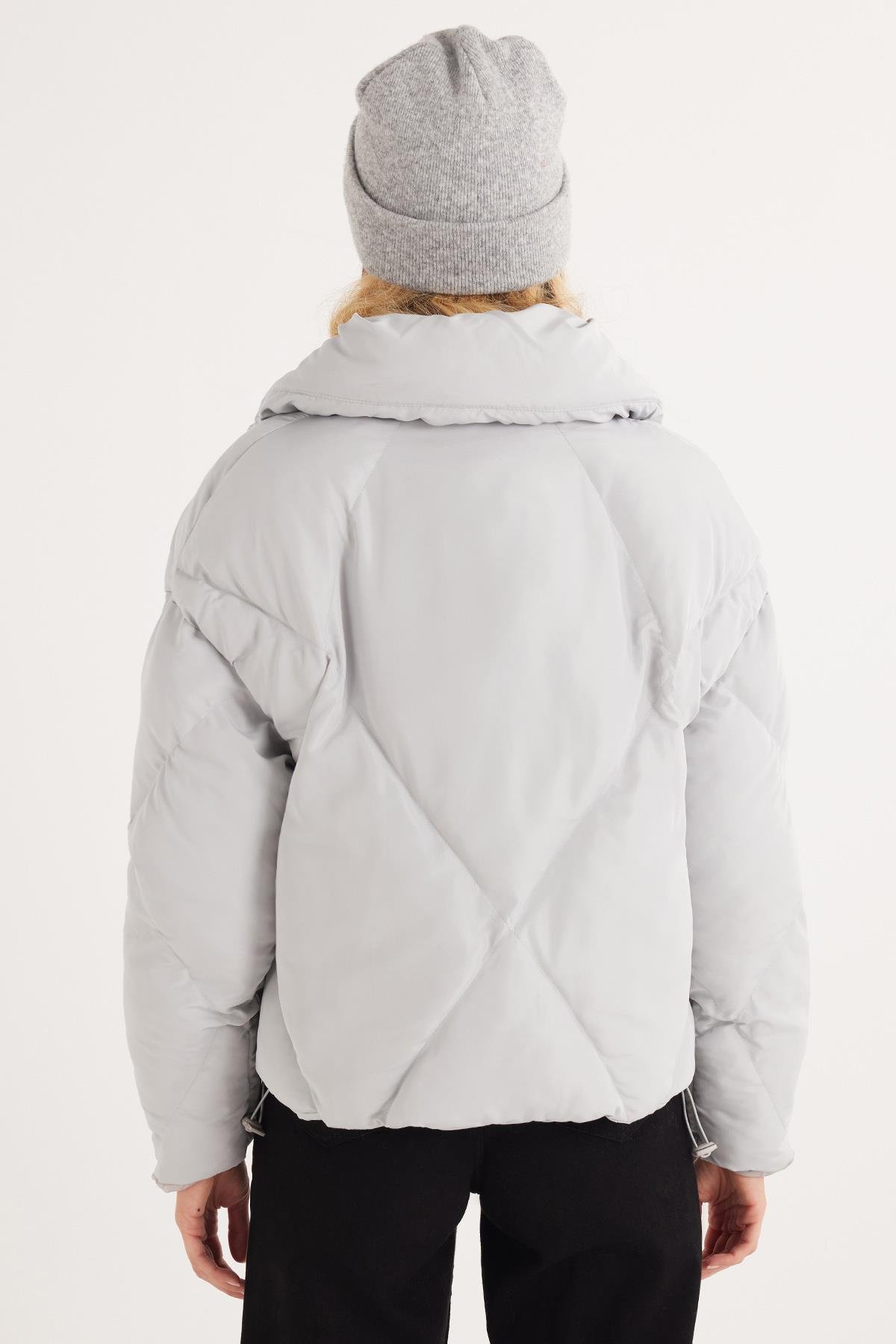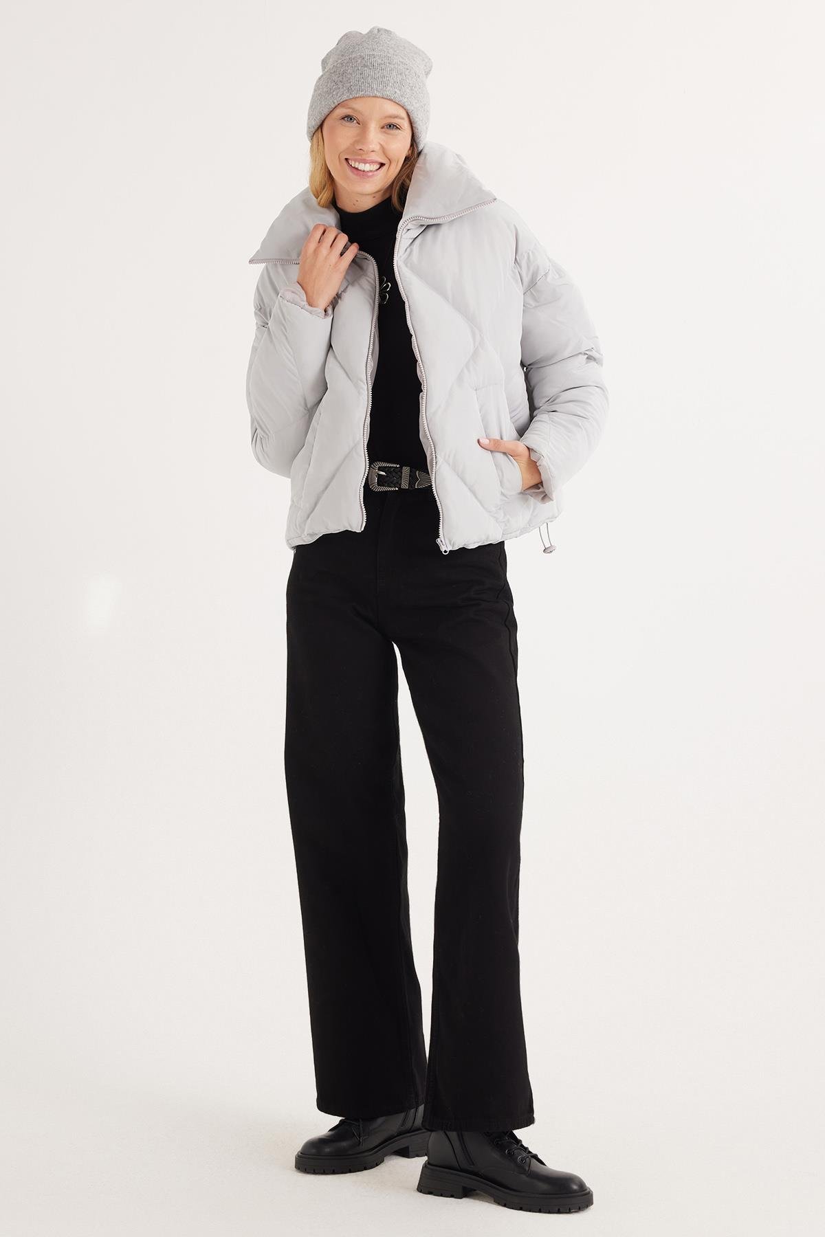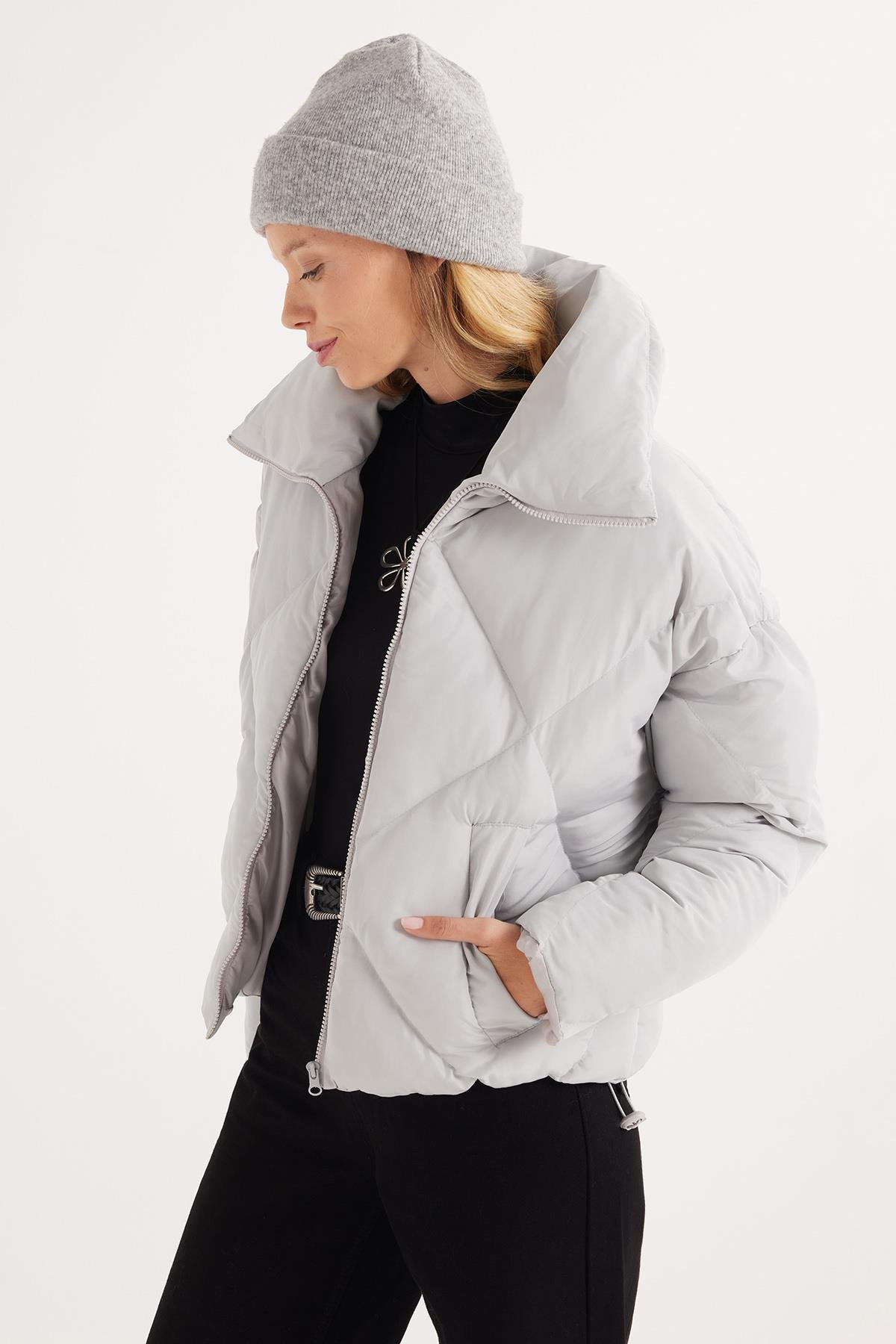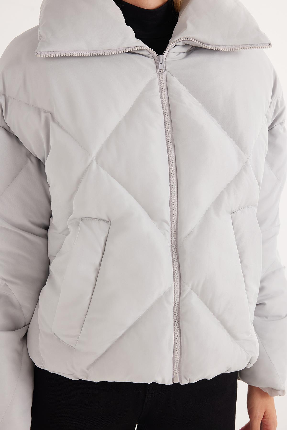 Kadın Oversize Geniş Kesim Şişme Dik Yaka Gri Mont (KBN25002-11)