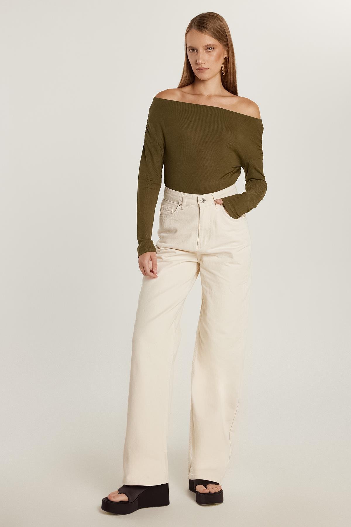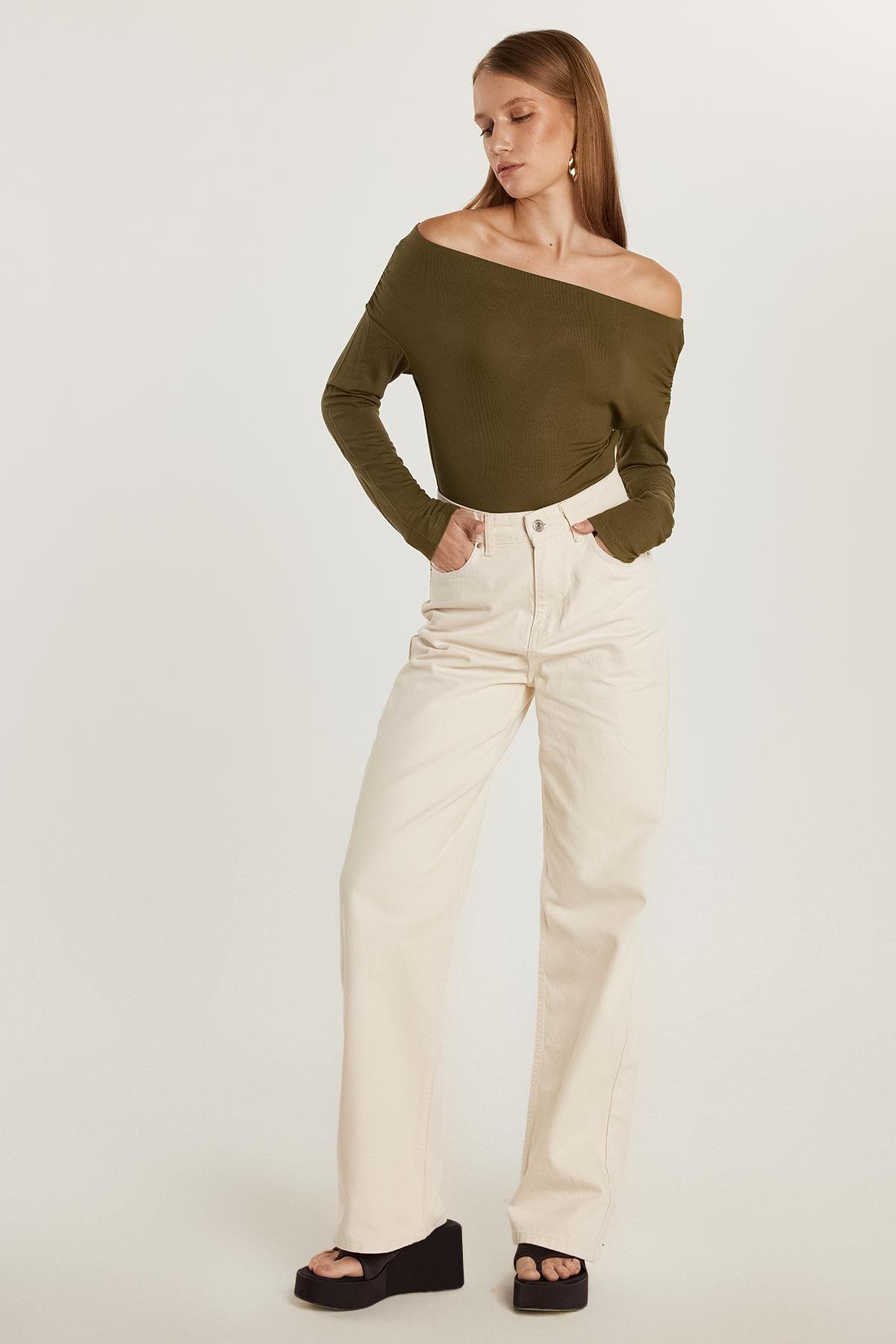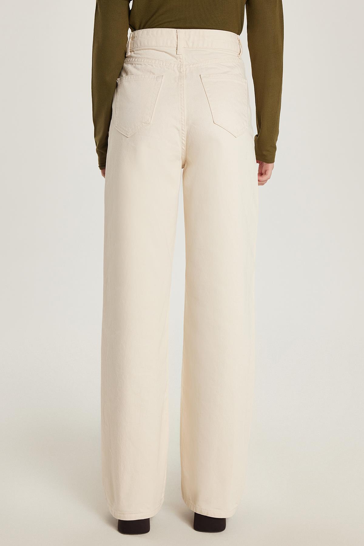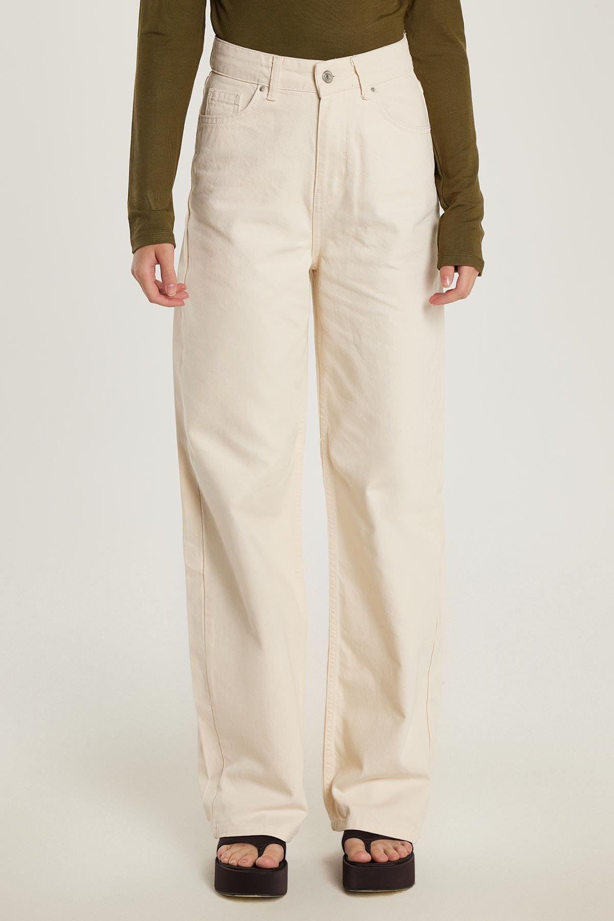 Kadın Regular Fit %100 Pamuk Bol Paça Bej Jean Kot Pantolon