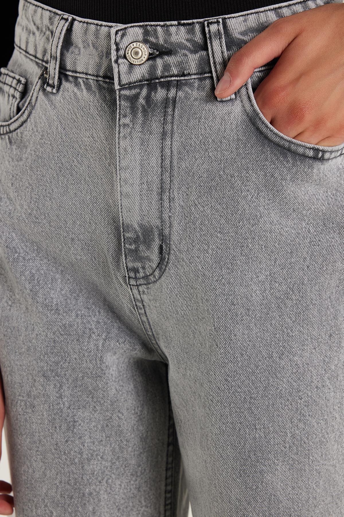 Kadın Regular Fit %100 Pamuk Bol Paça Gri Jean Kot Pantolon (KDN25241-2151)