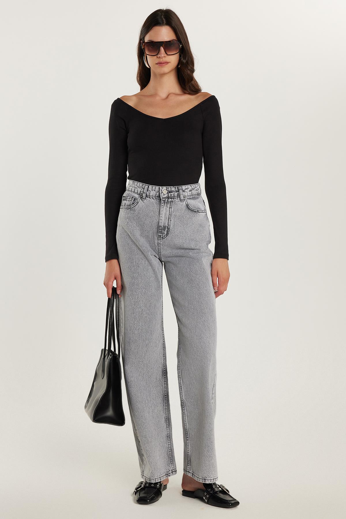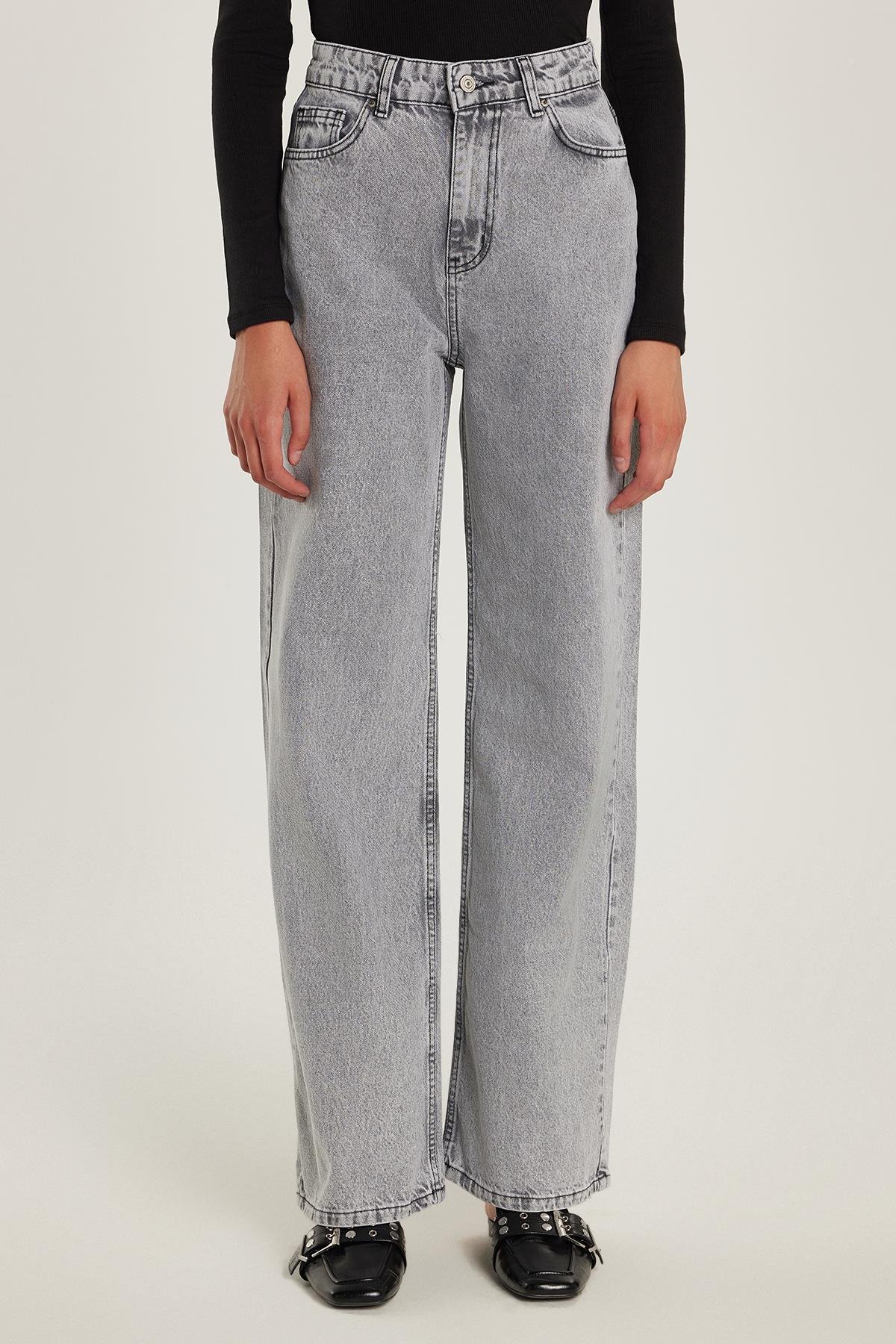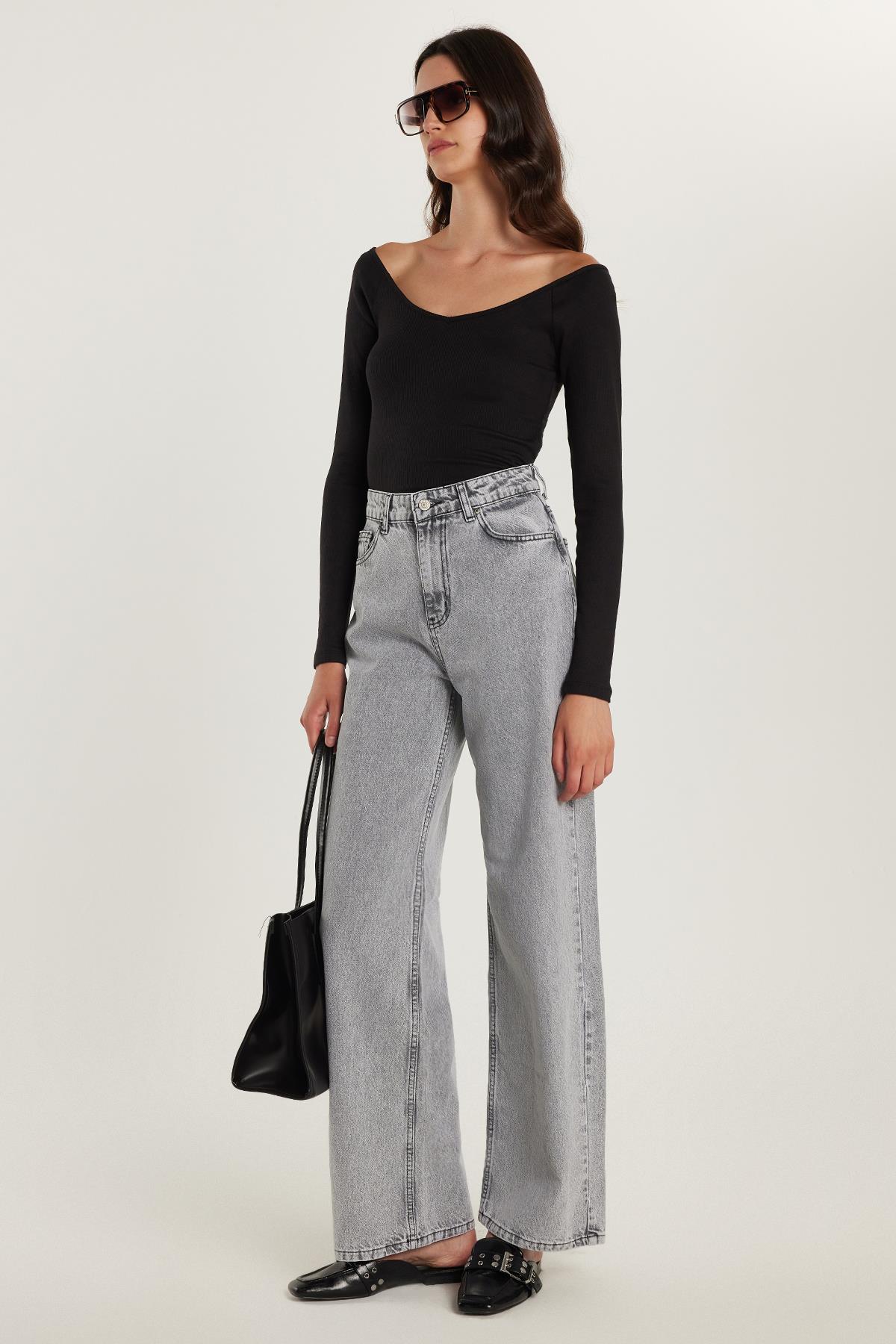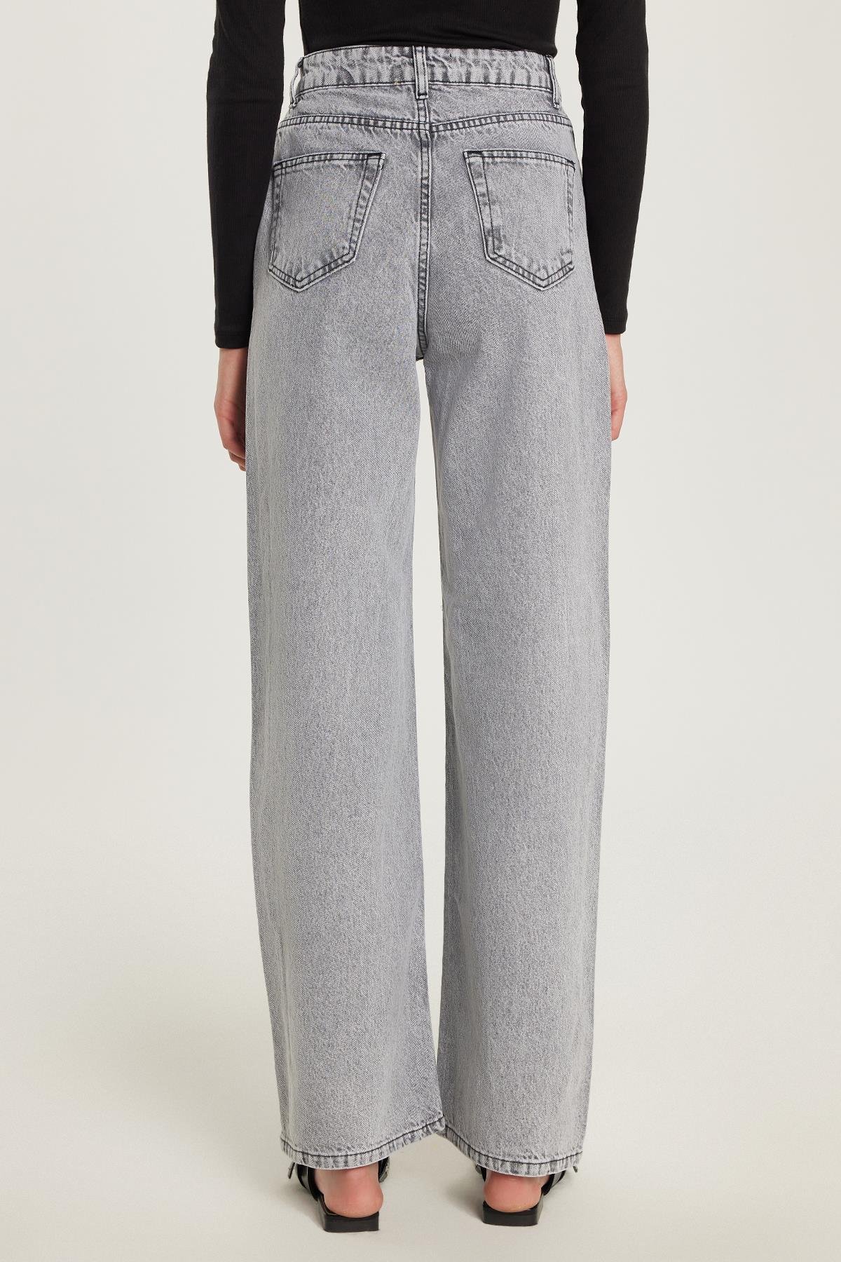 Kadın Regular Fit %100 Pamuk Bol Paça Gri Jean Kot Pantolon