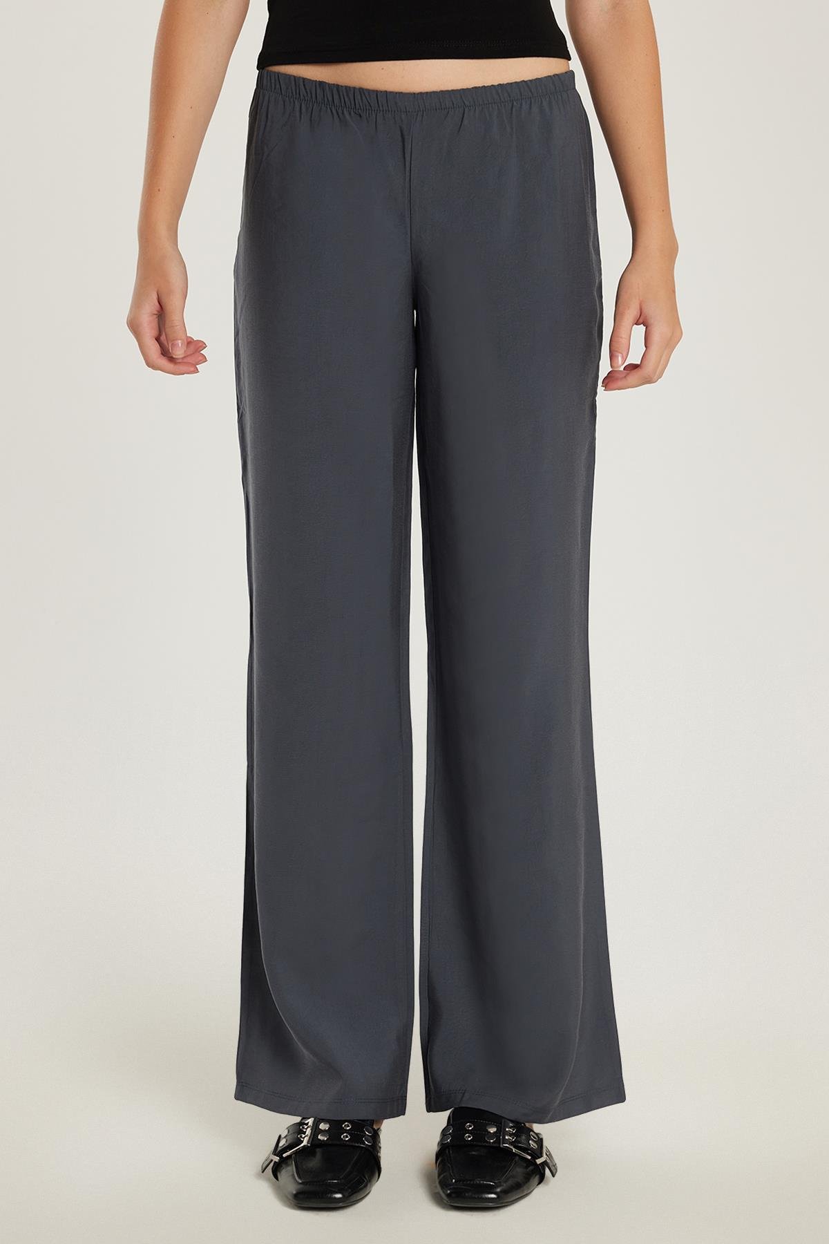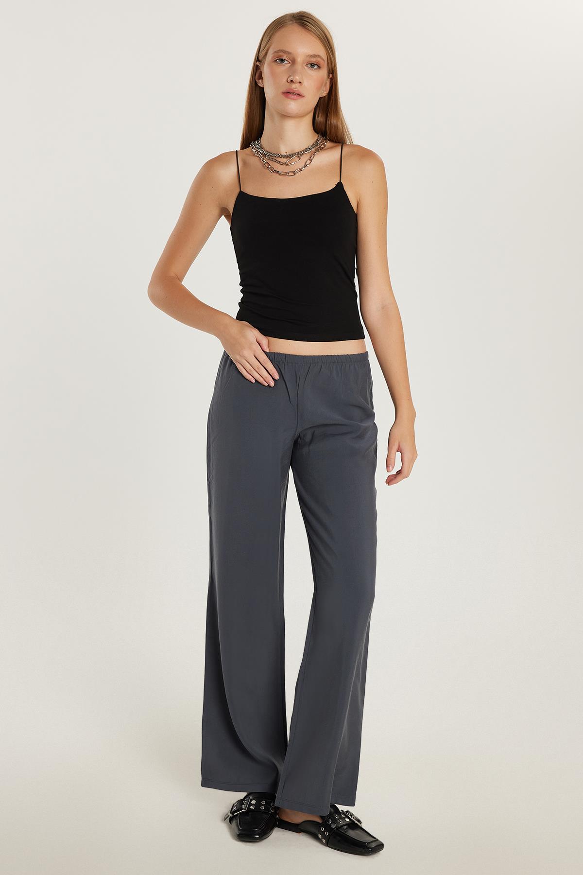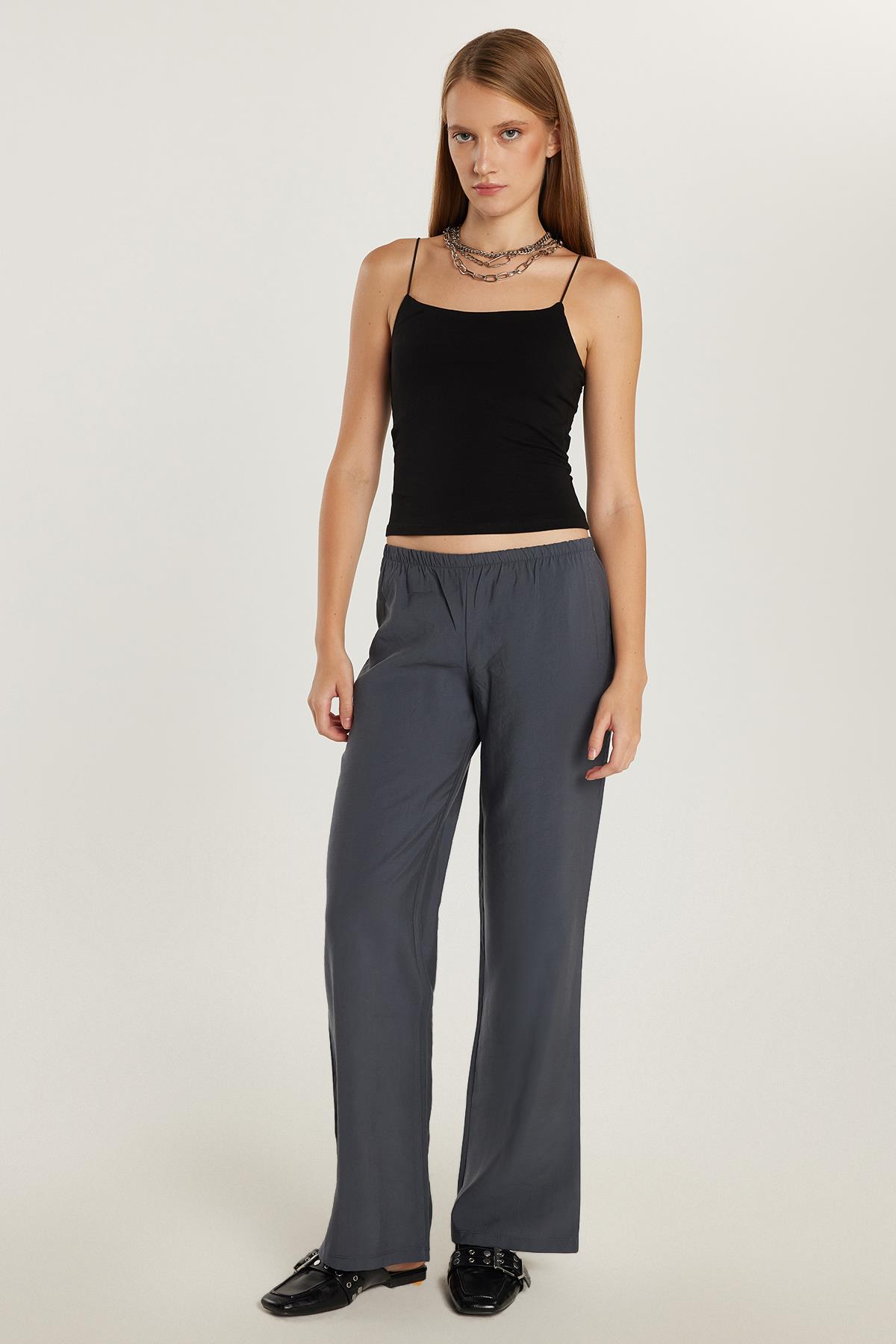 Kadın Regular Fit Beli Lastikli Modal İspanyol Paça Antrasit Pantolon