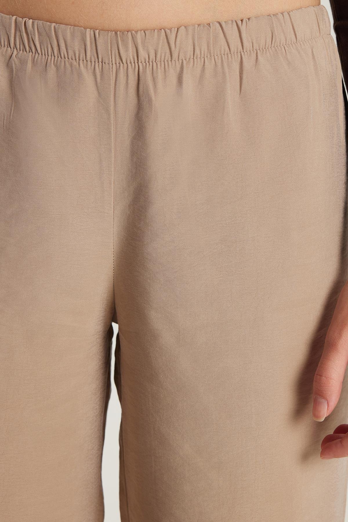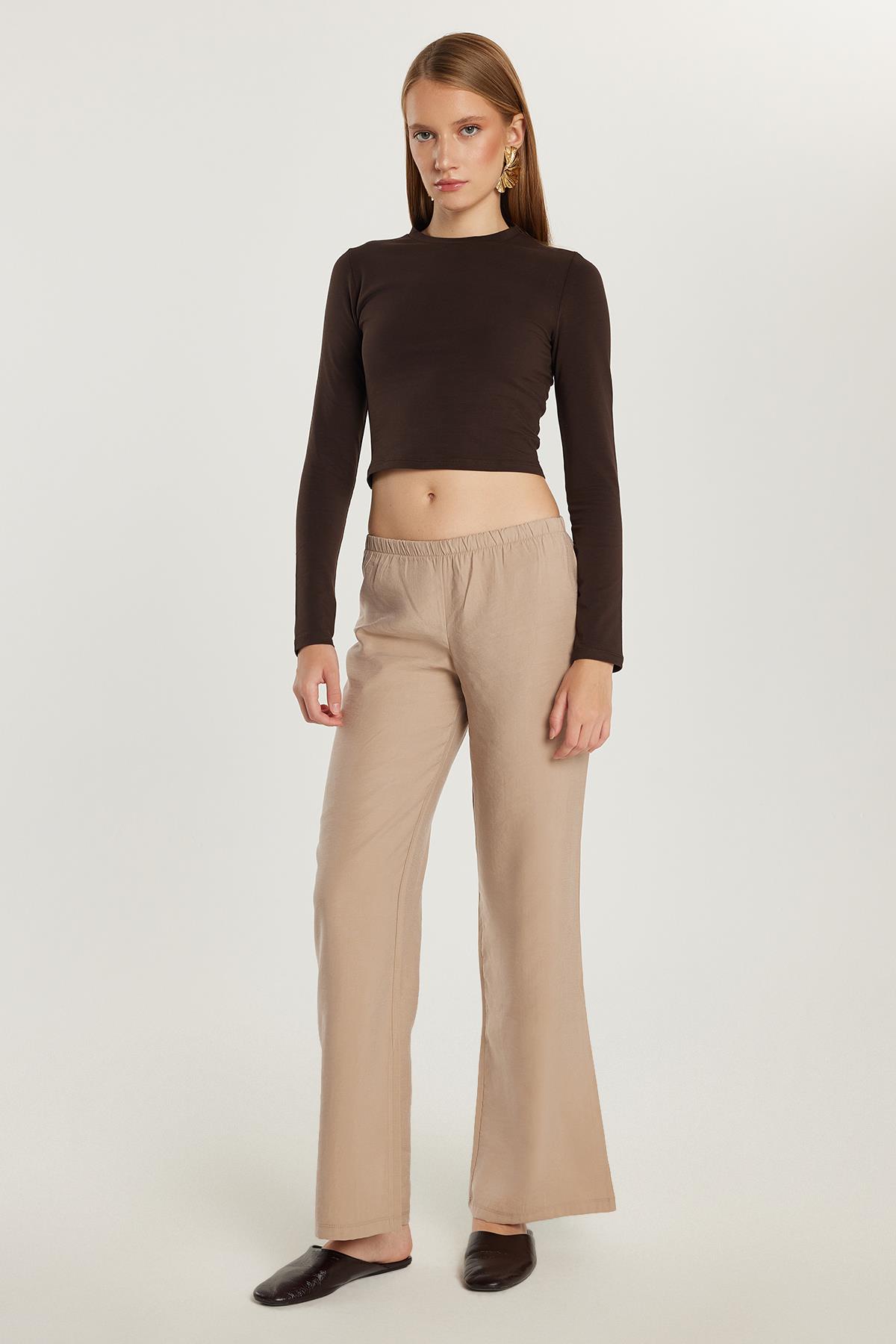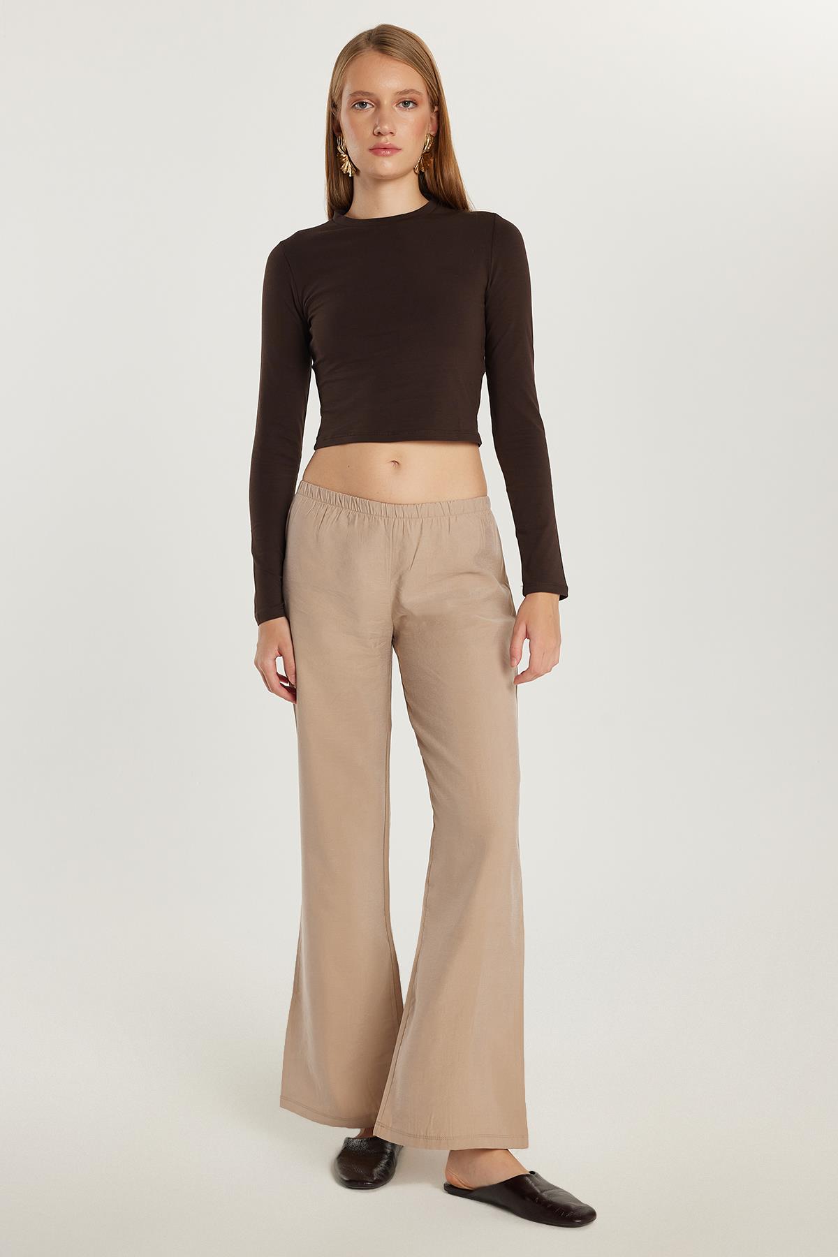 Kadın Regular Fit Beli Lastikli Modal İspanyol Paça Vizon Pantolon