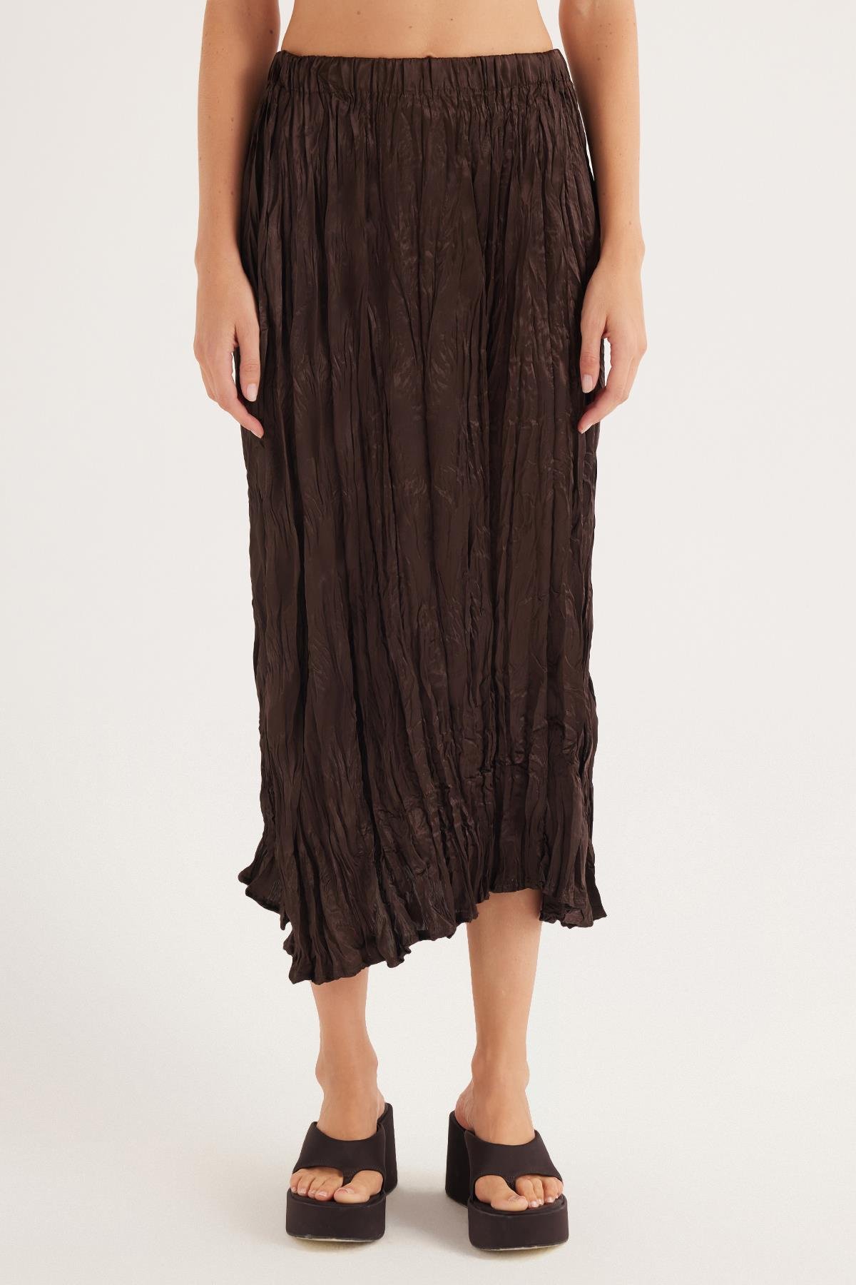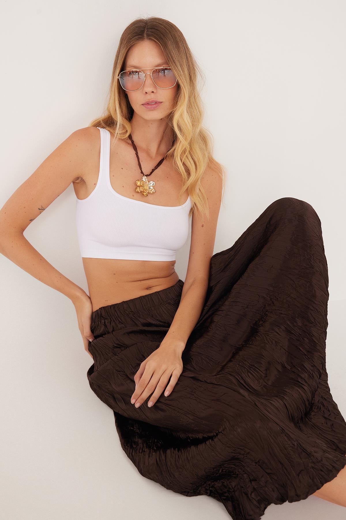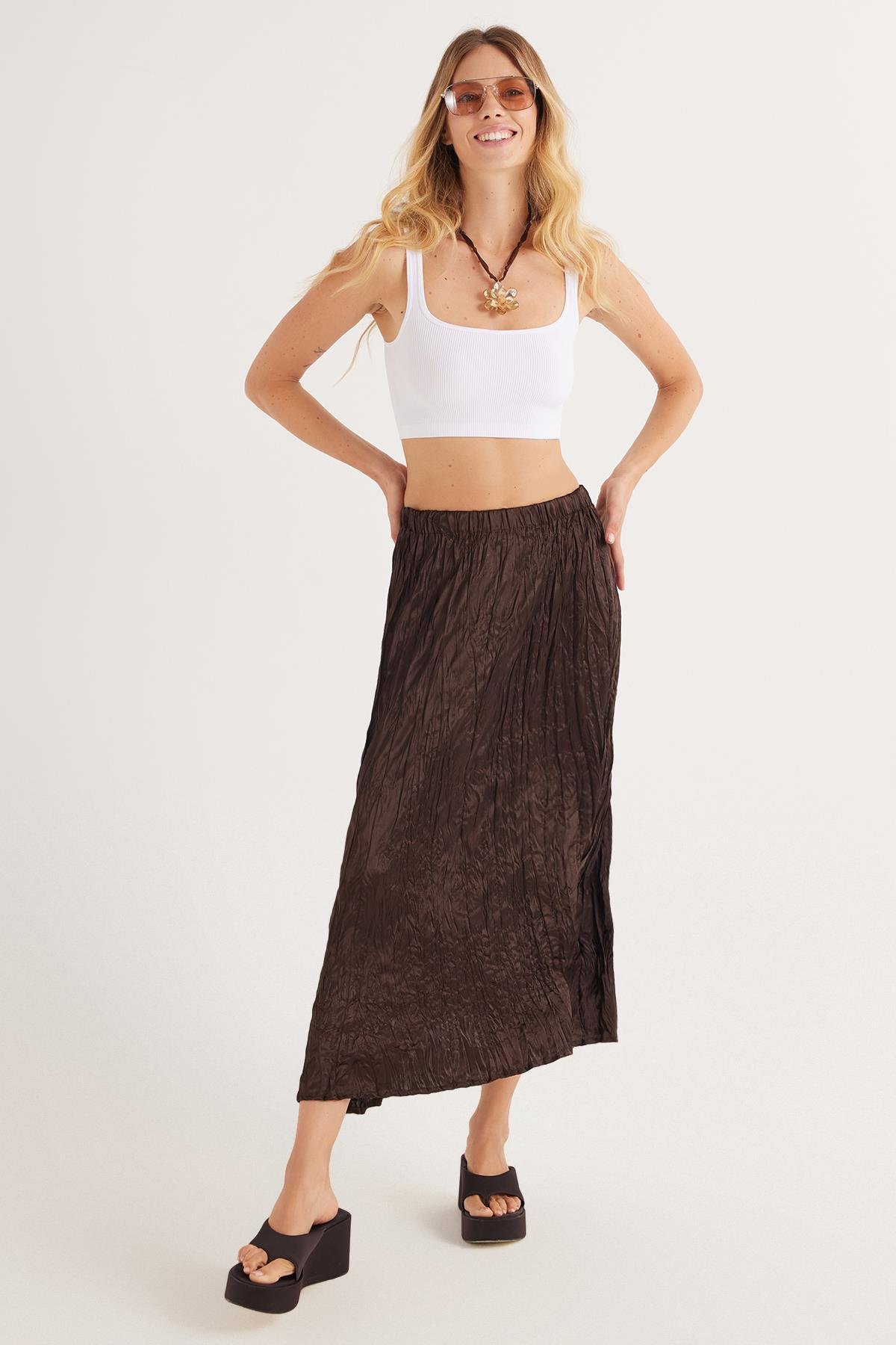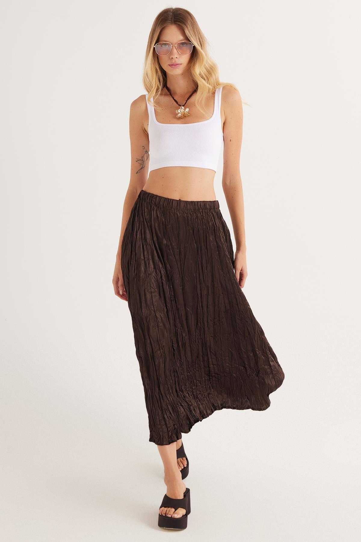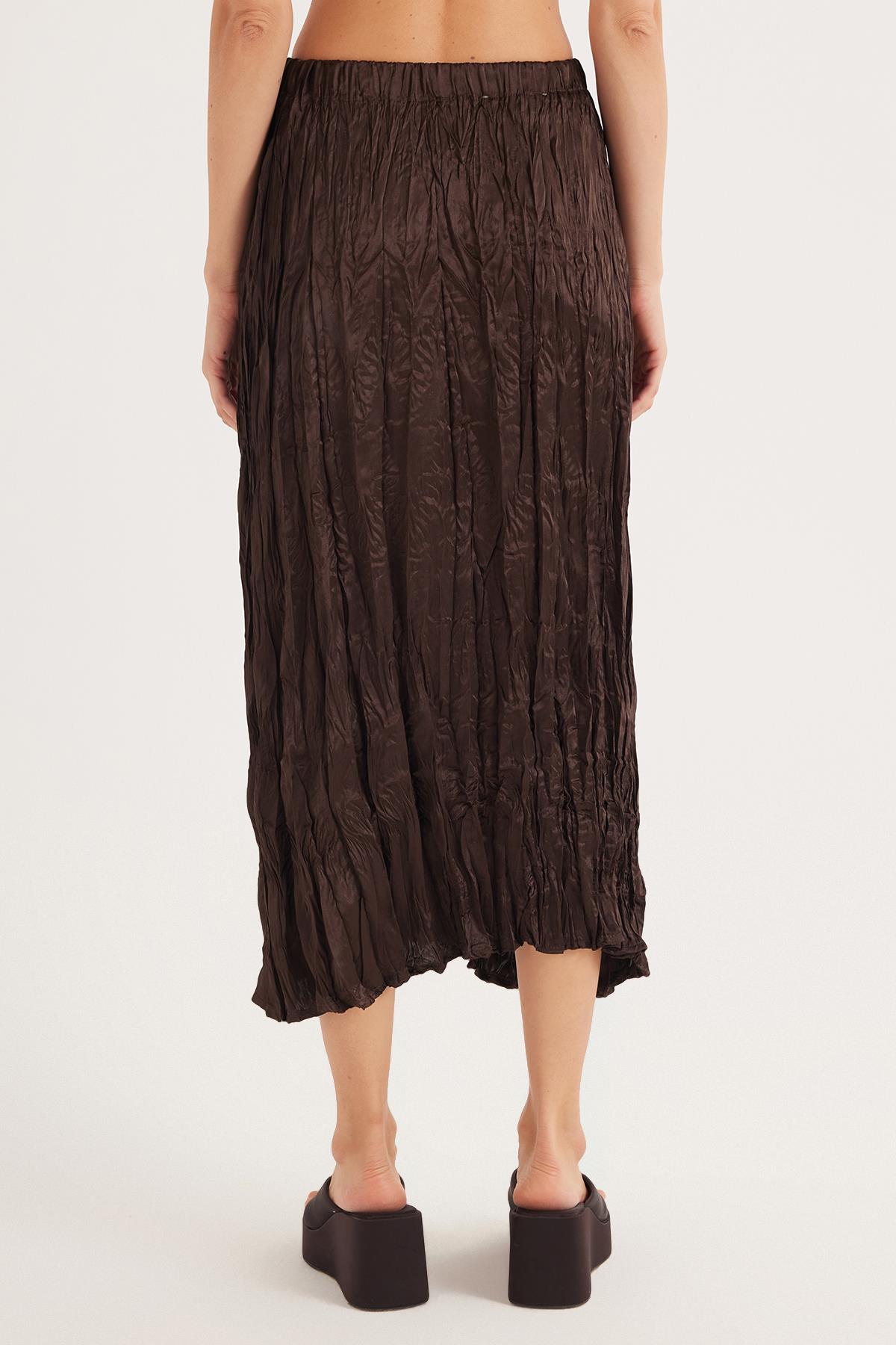 Kadın Regular Fit Desenli Saten Kahverengi Etek (KDN25089-07)