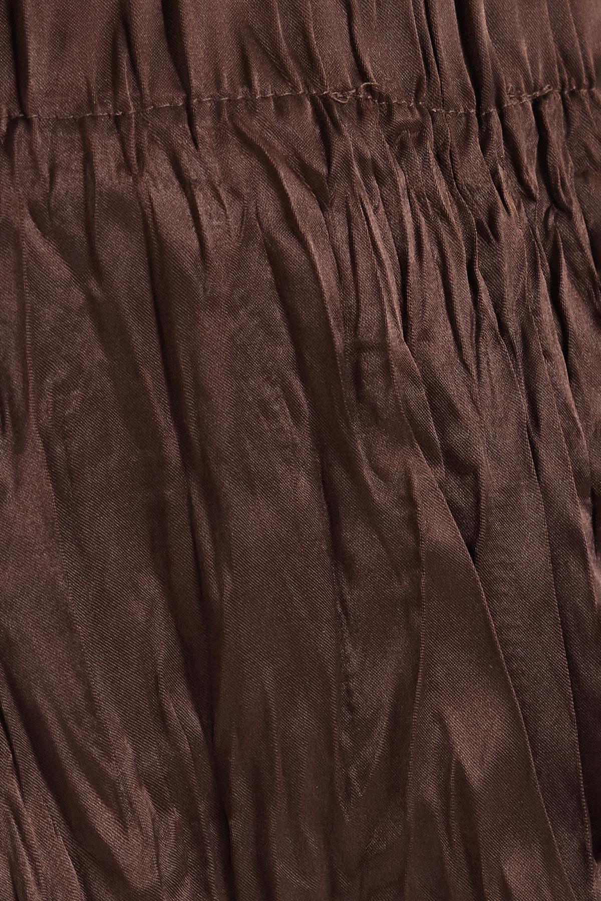 Kadın Regular Fit Desenli Saten Kahverengi Etek