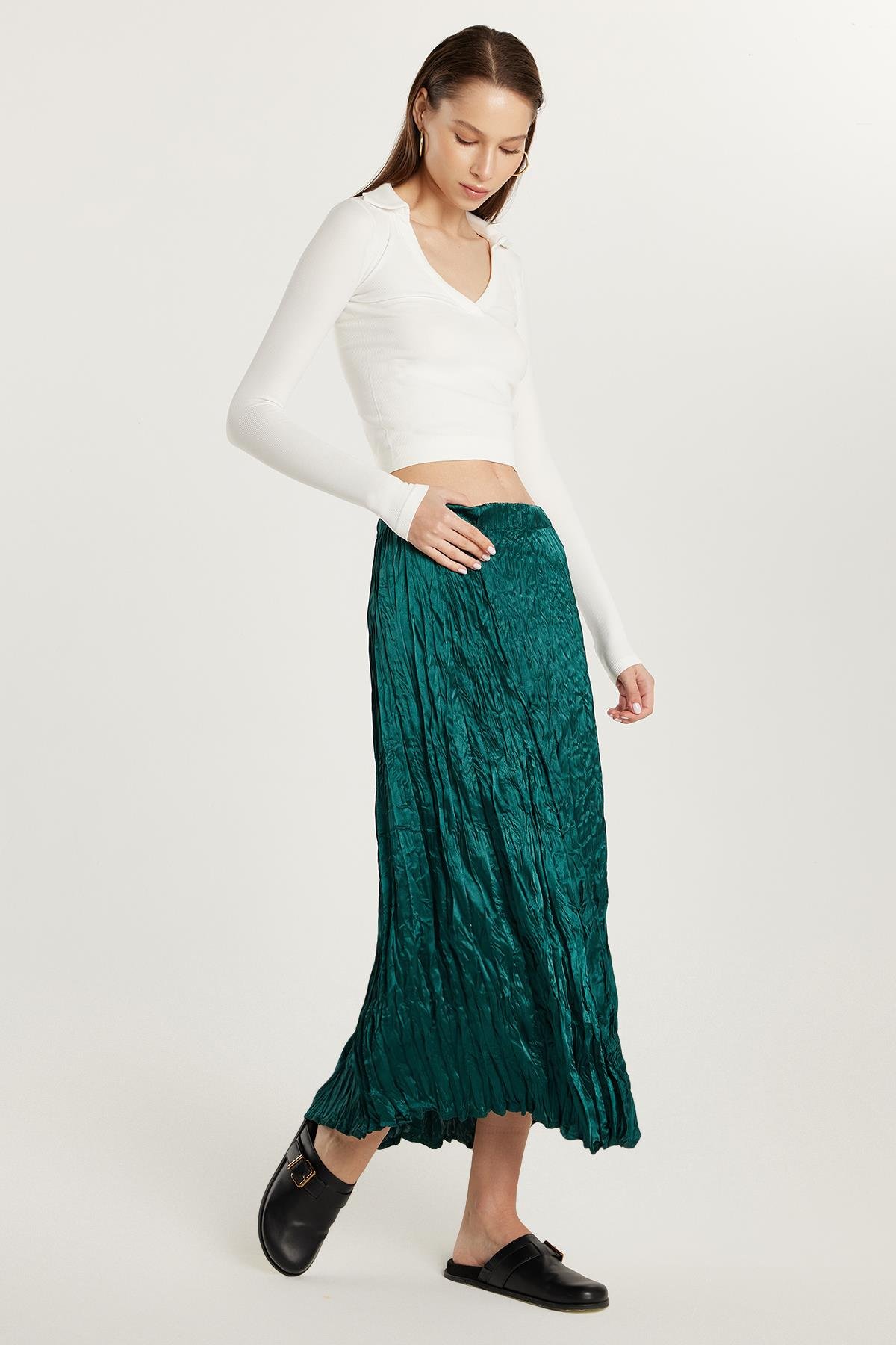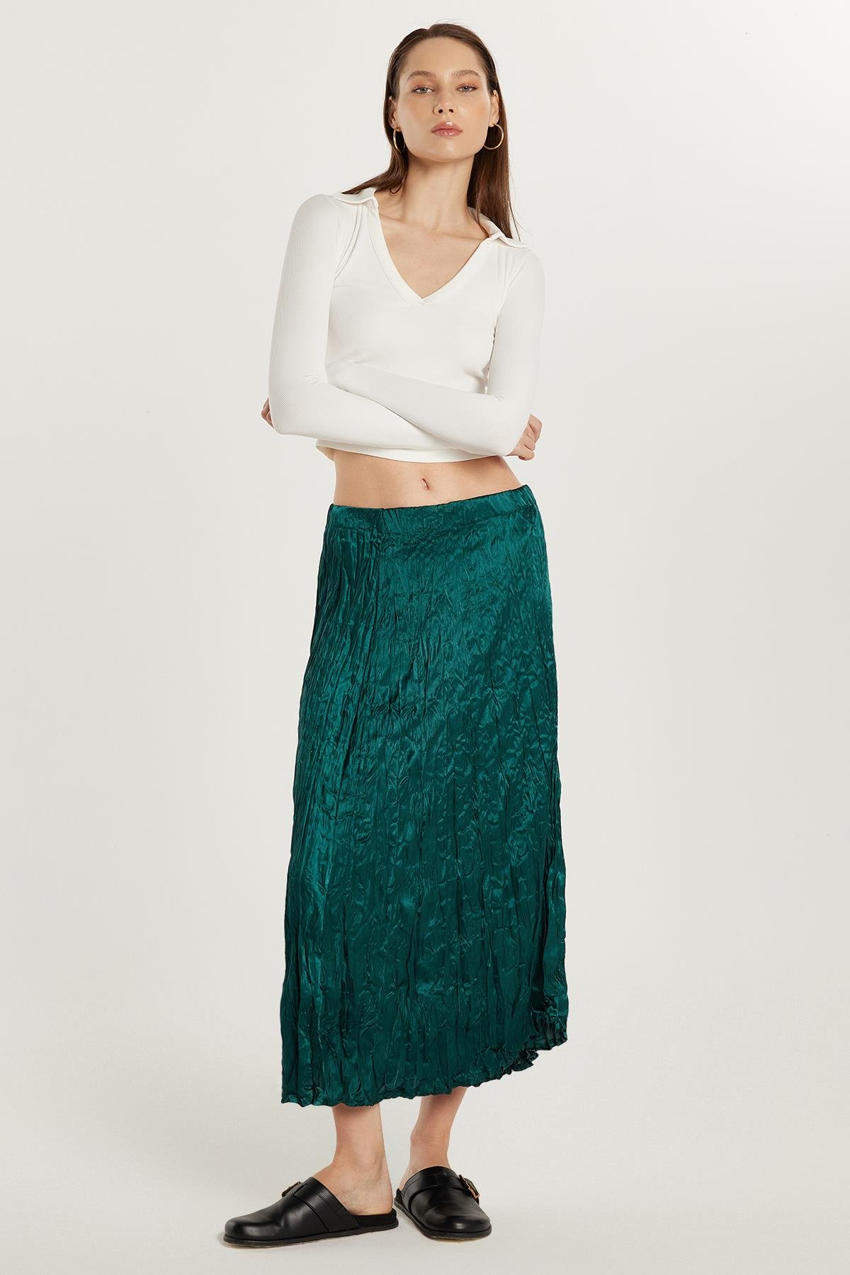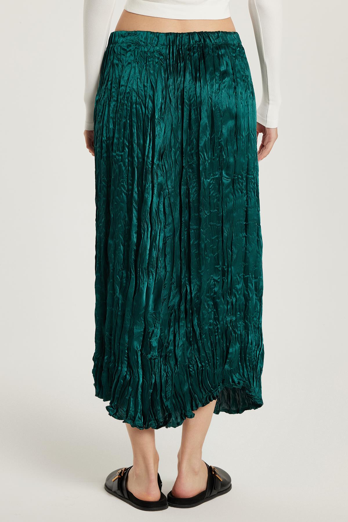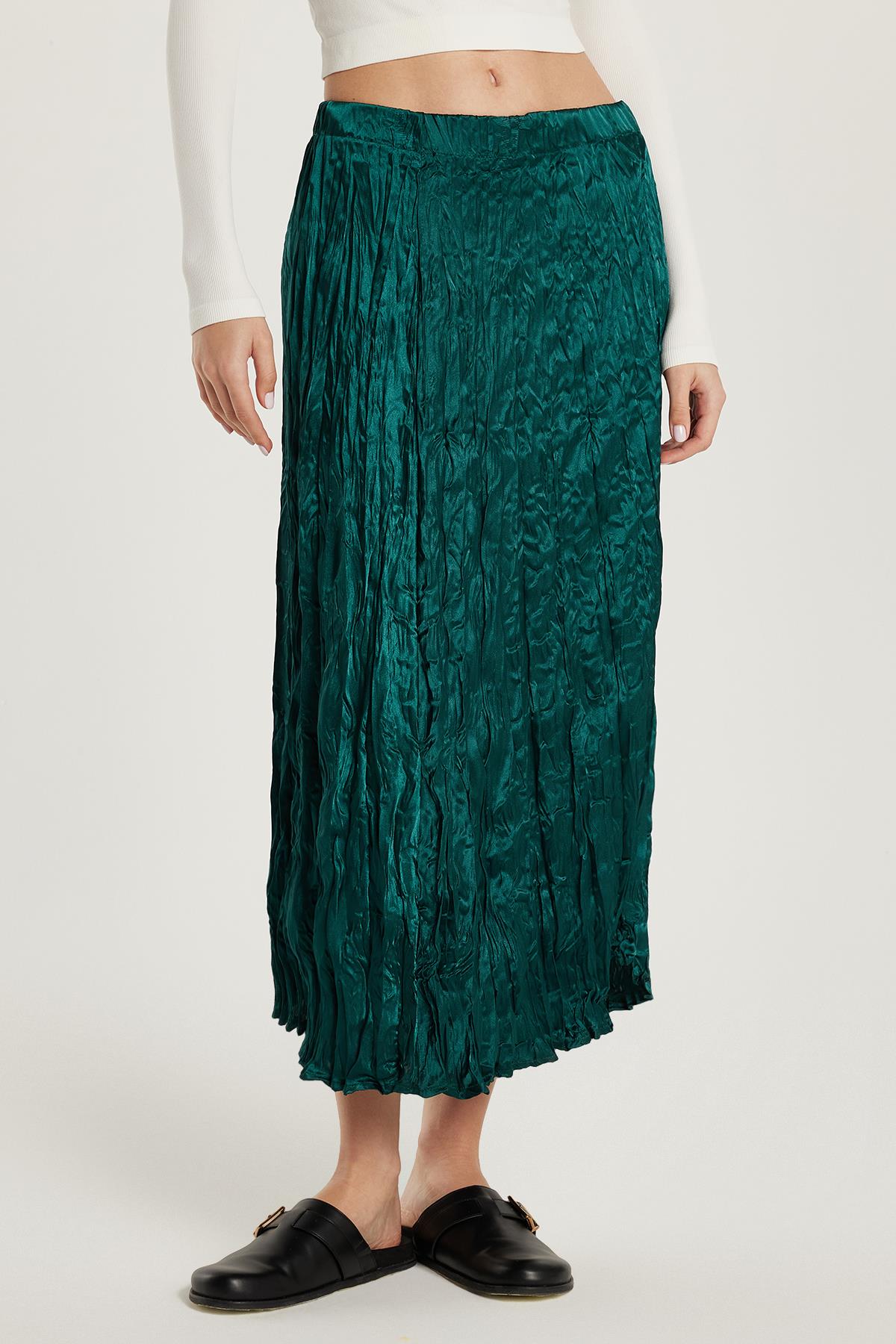 Kadın Regular Fit Desenli Saten Yeşil Etek (KDN25089-04)