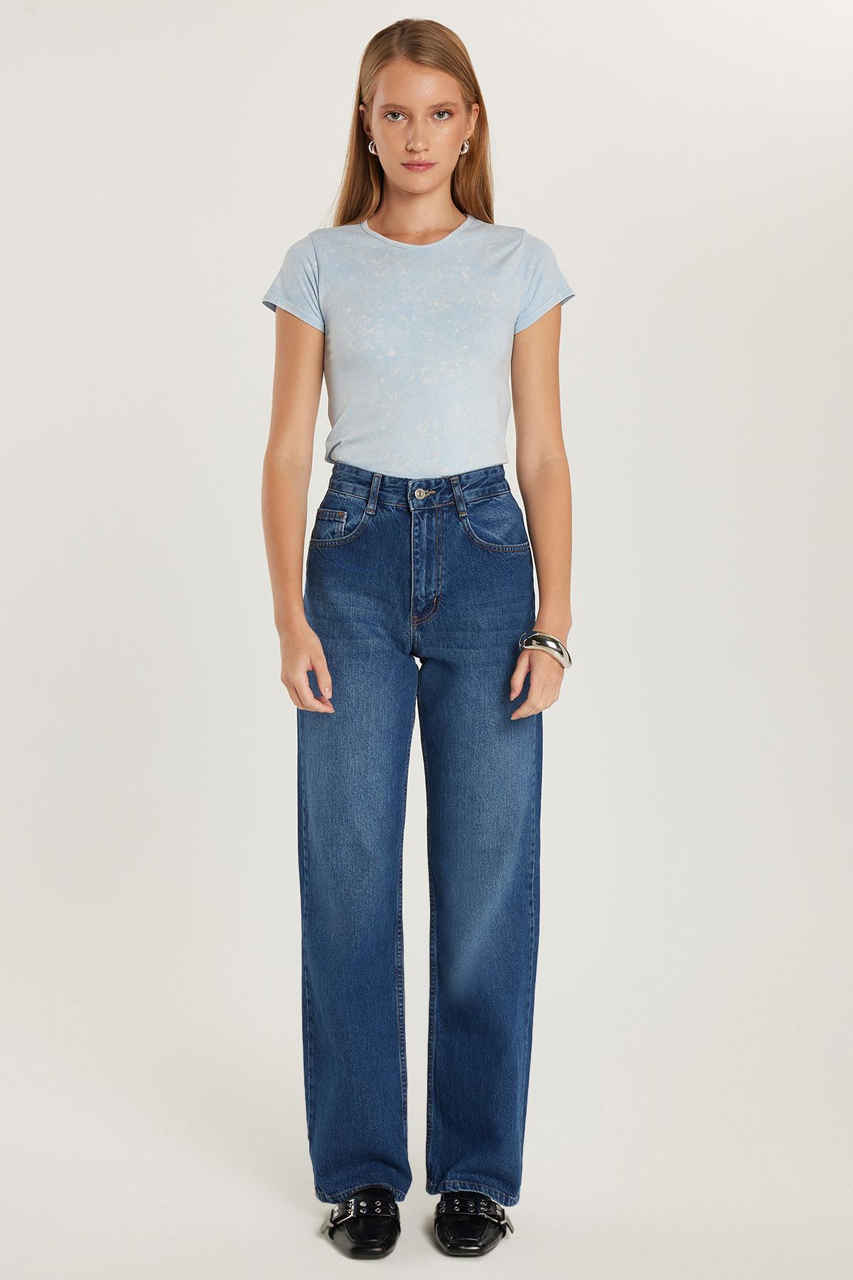 Kadın Regular Fit Geniş Paça Mavi Jean Kot Pantolon (KDN25246-4210)