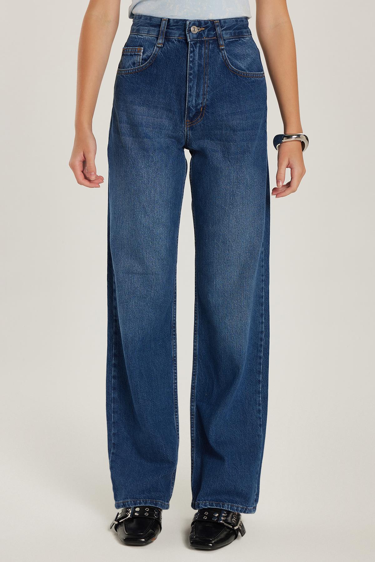 Kadın Regular Fit Geniş Paça Mavi Jean Kot Pantolon