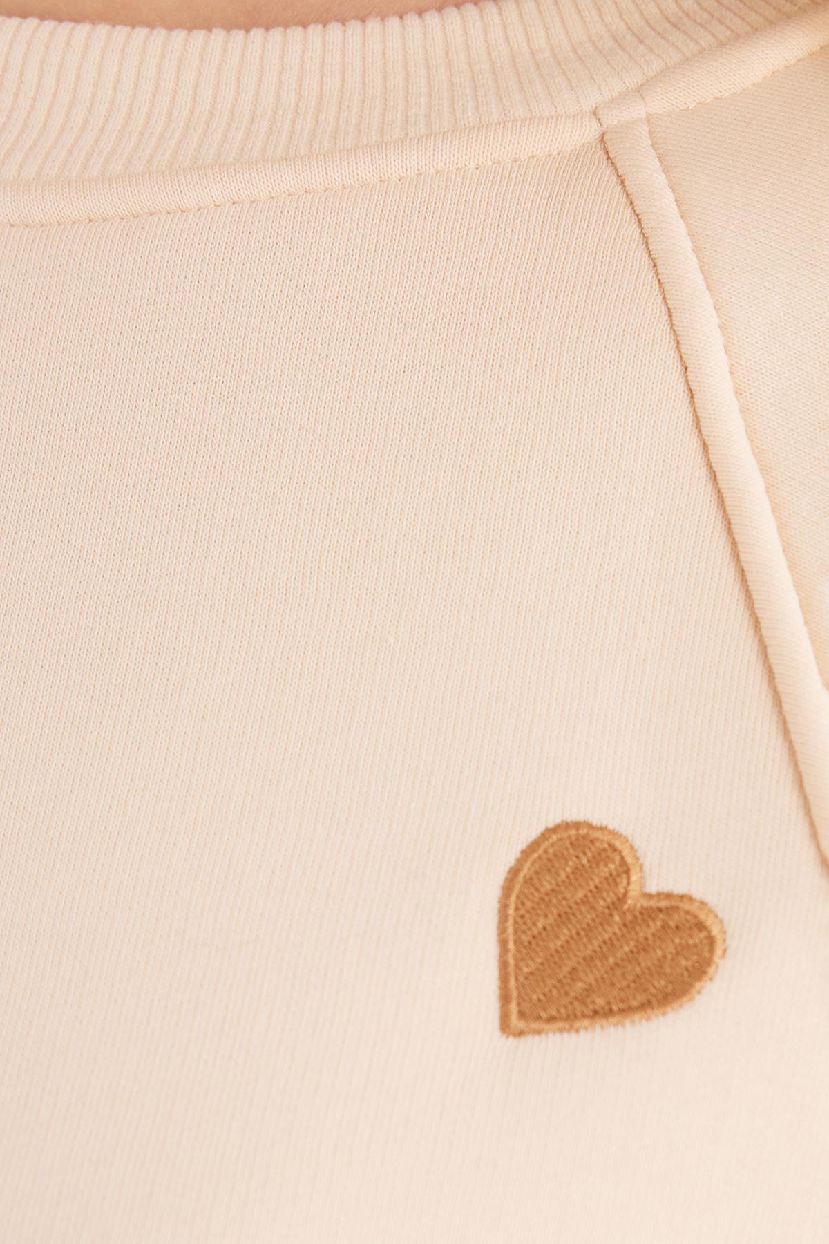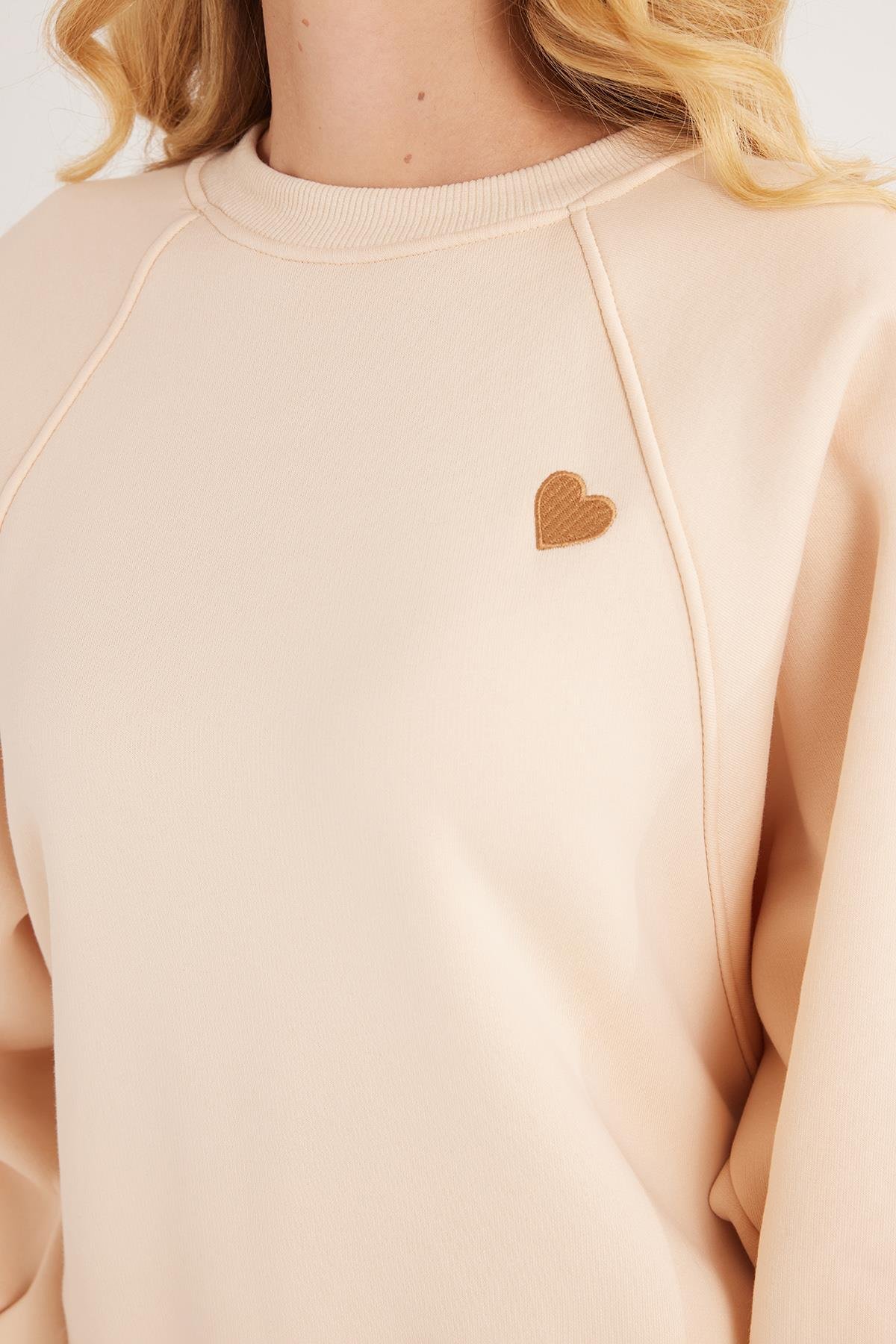 Kadın Regular Fit Klasik Kesim %100 Pamuk Baskılı Bisiklet Yaka Bej Sweatshirt