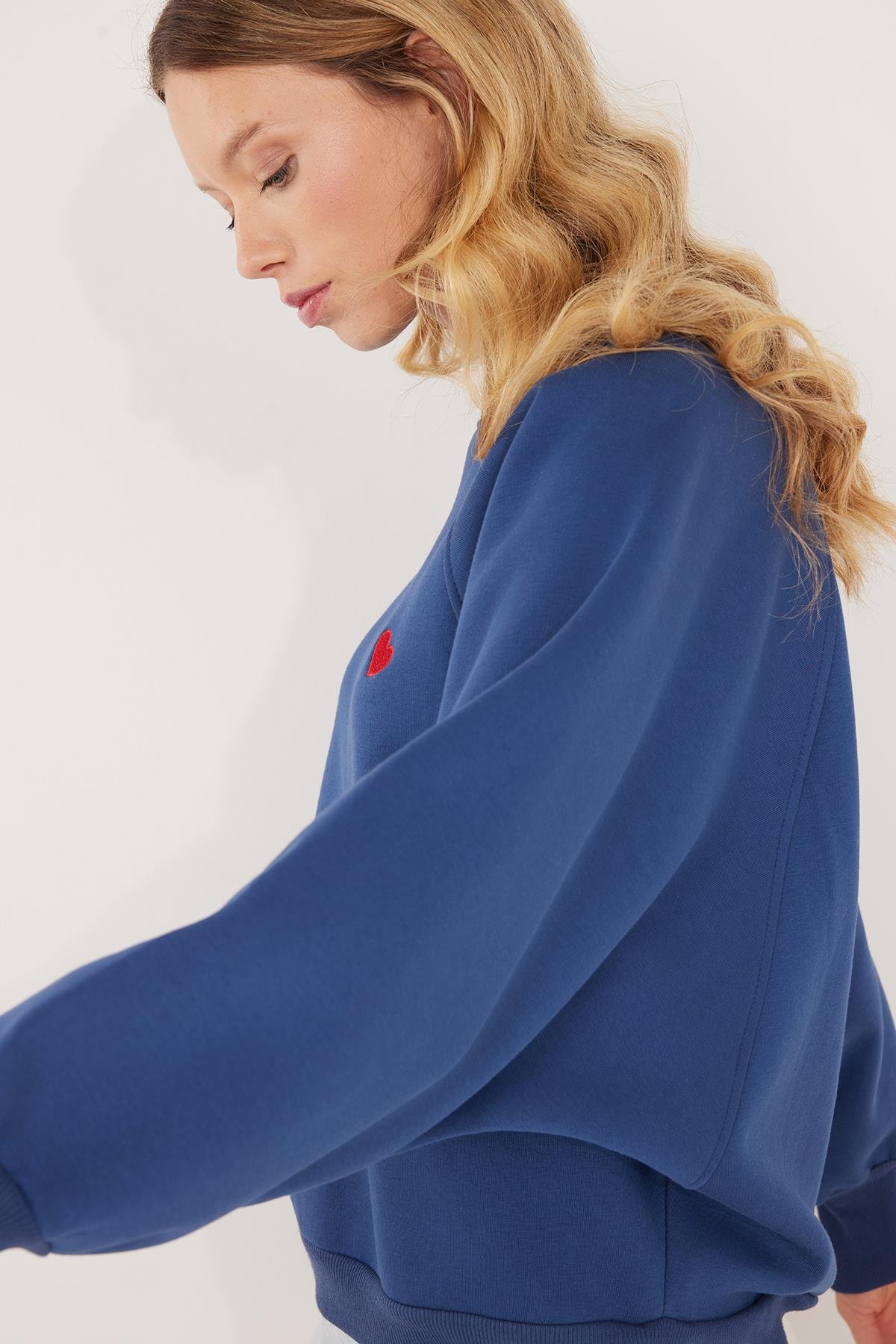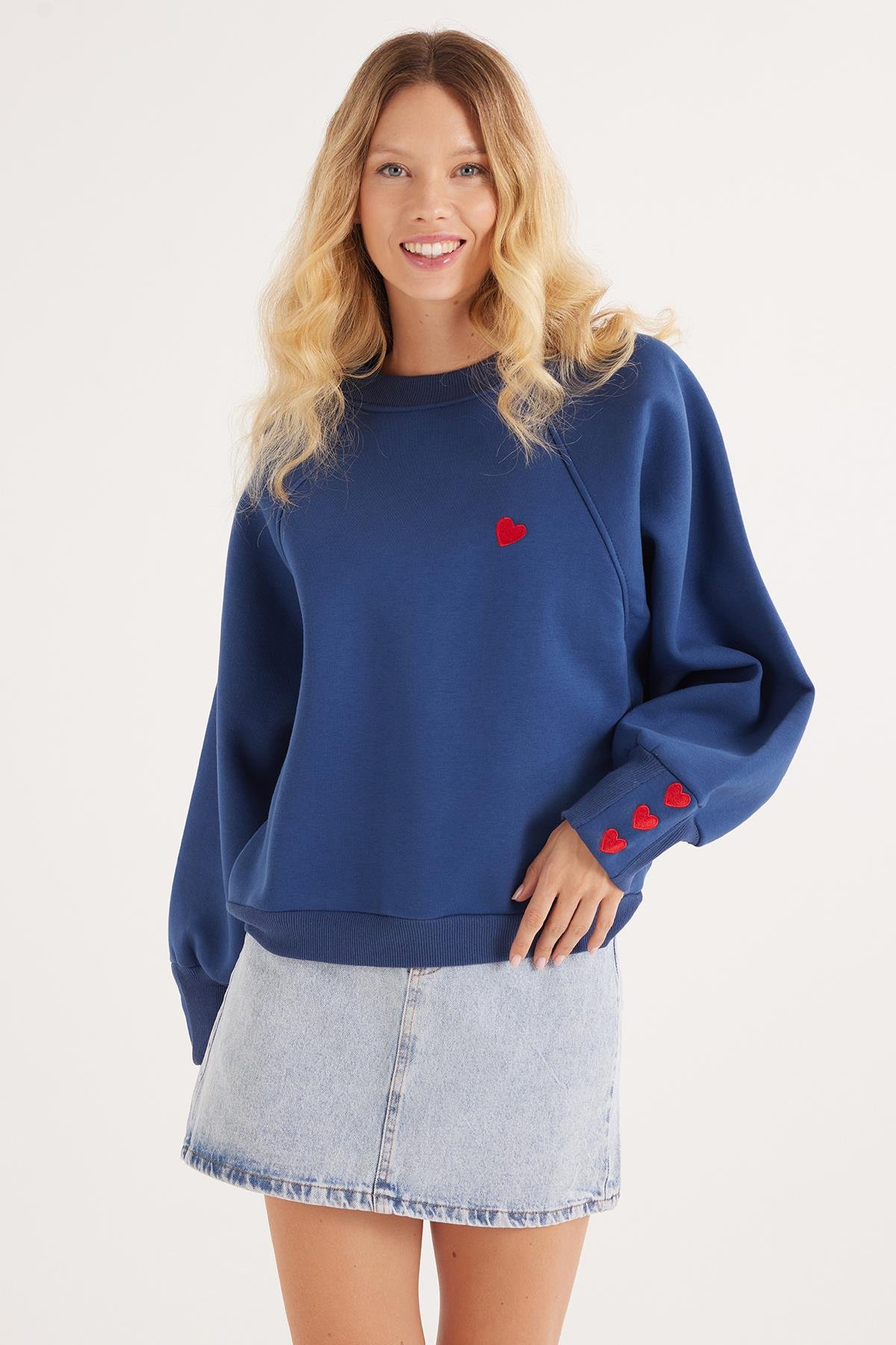 Kadın Regular Fit Klasik Kesim %100 Pamuk Baskılı Bisiklet Yaka Lacivert Sweatshirt (SW250012-47)
