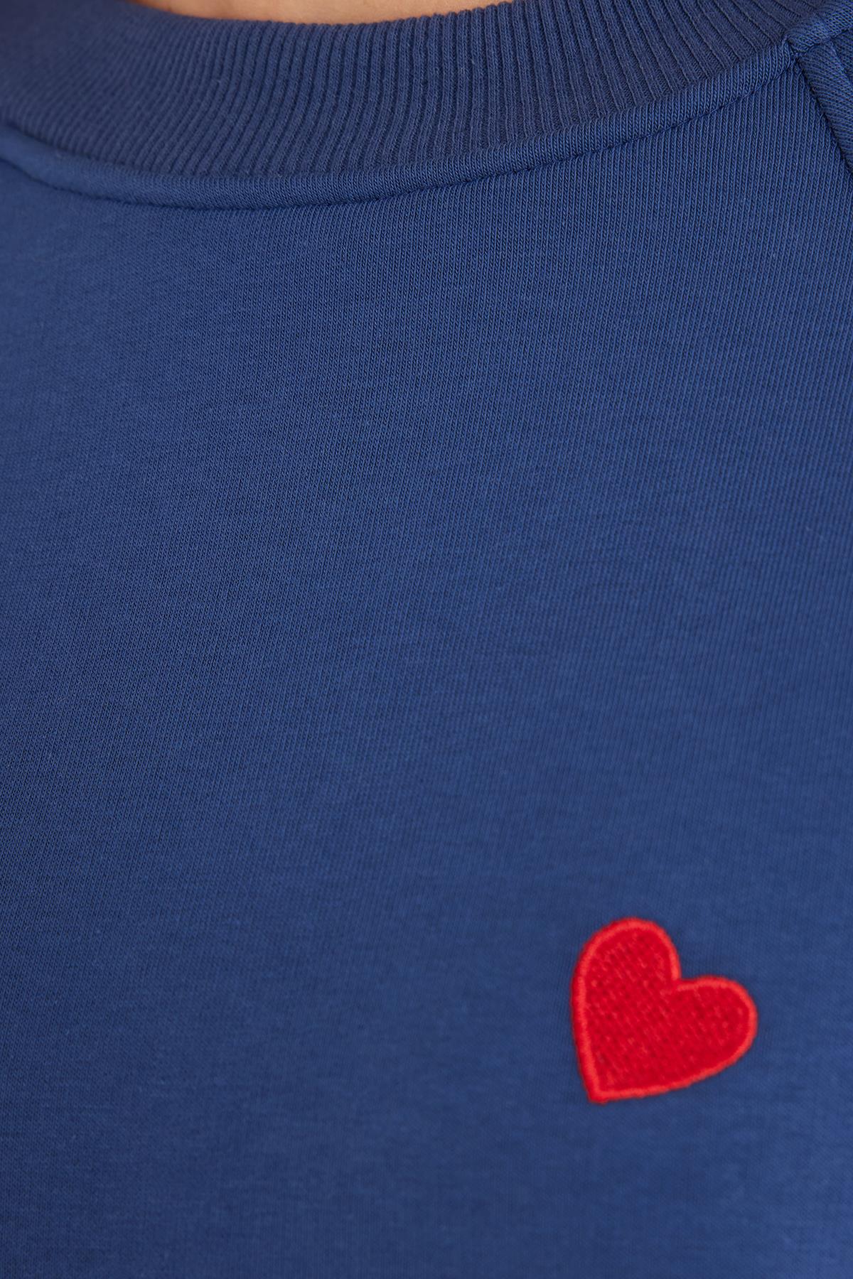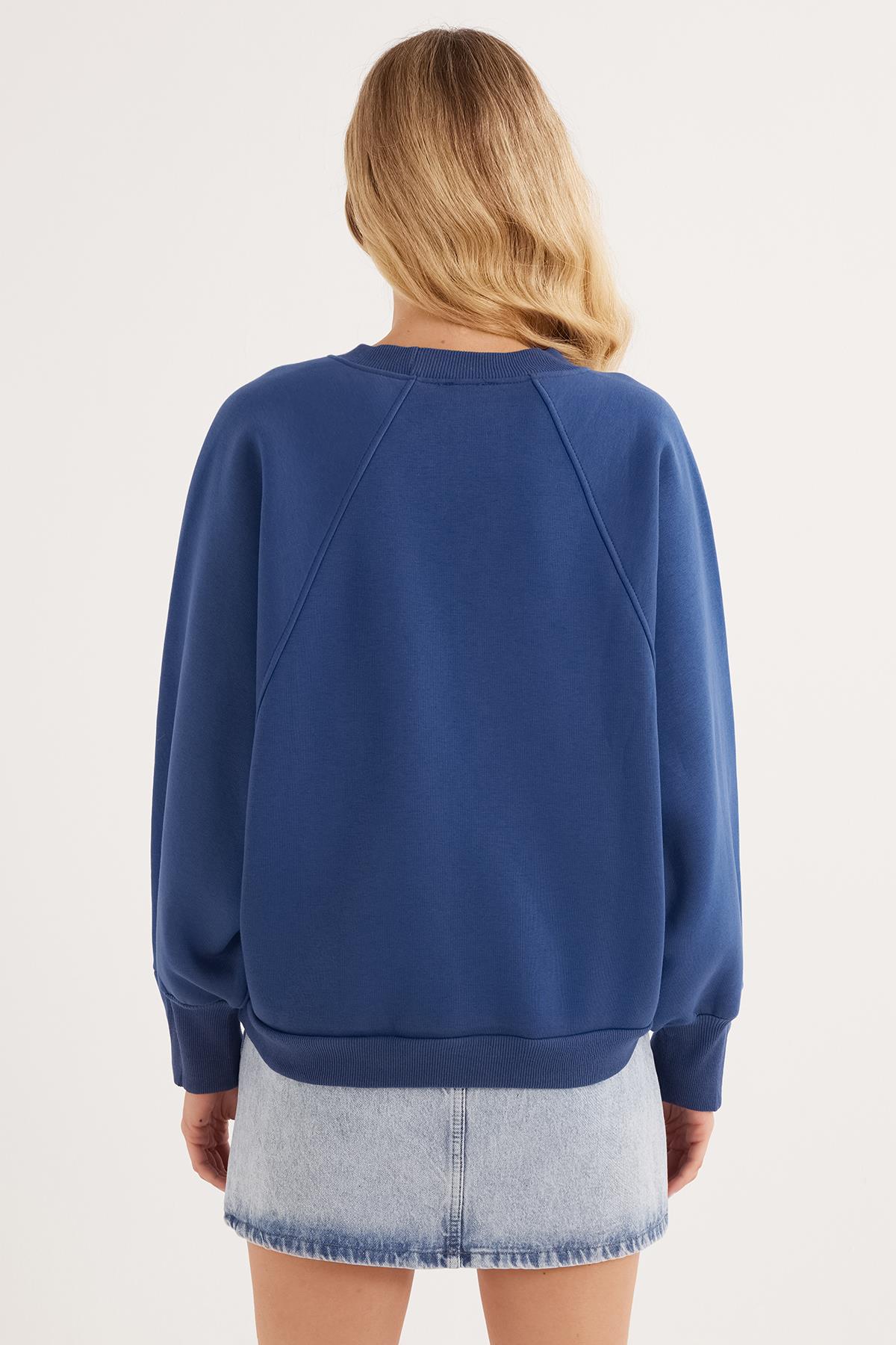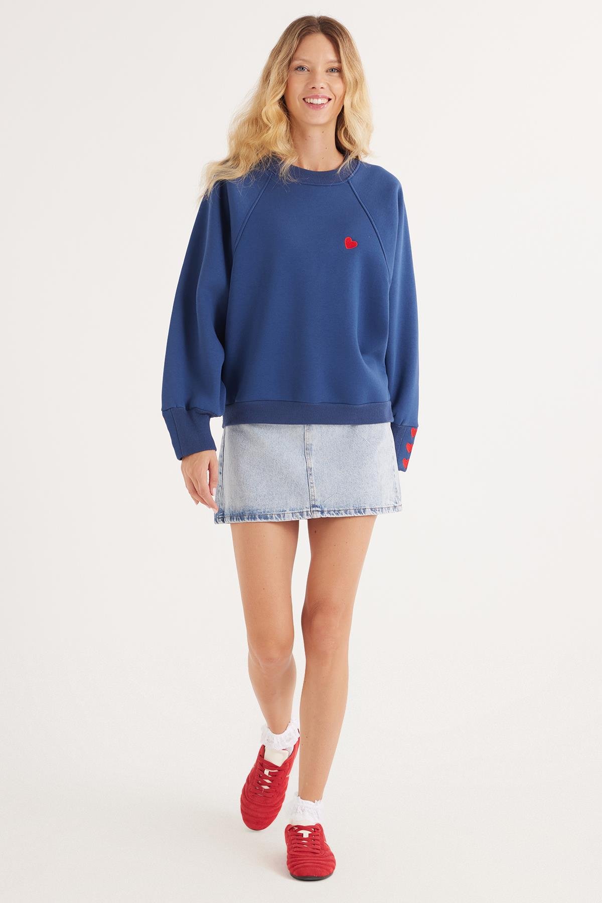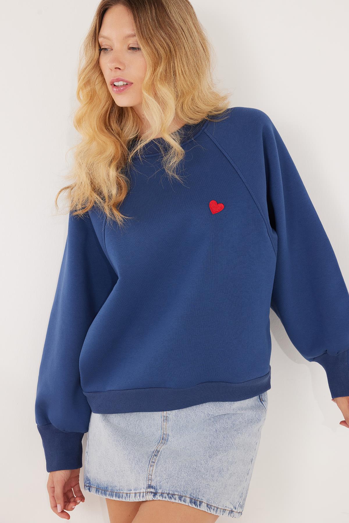 Kadın Regular Fit Klasik Kesim %100 Pamuk Baskılı Bisiklet Yaka Lacivert Sweatshirt