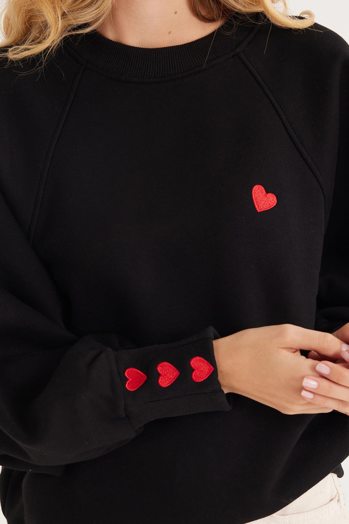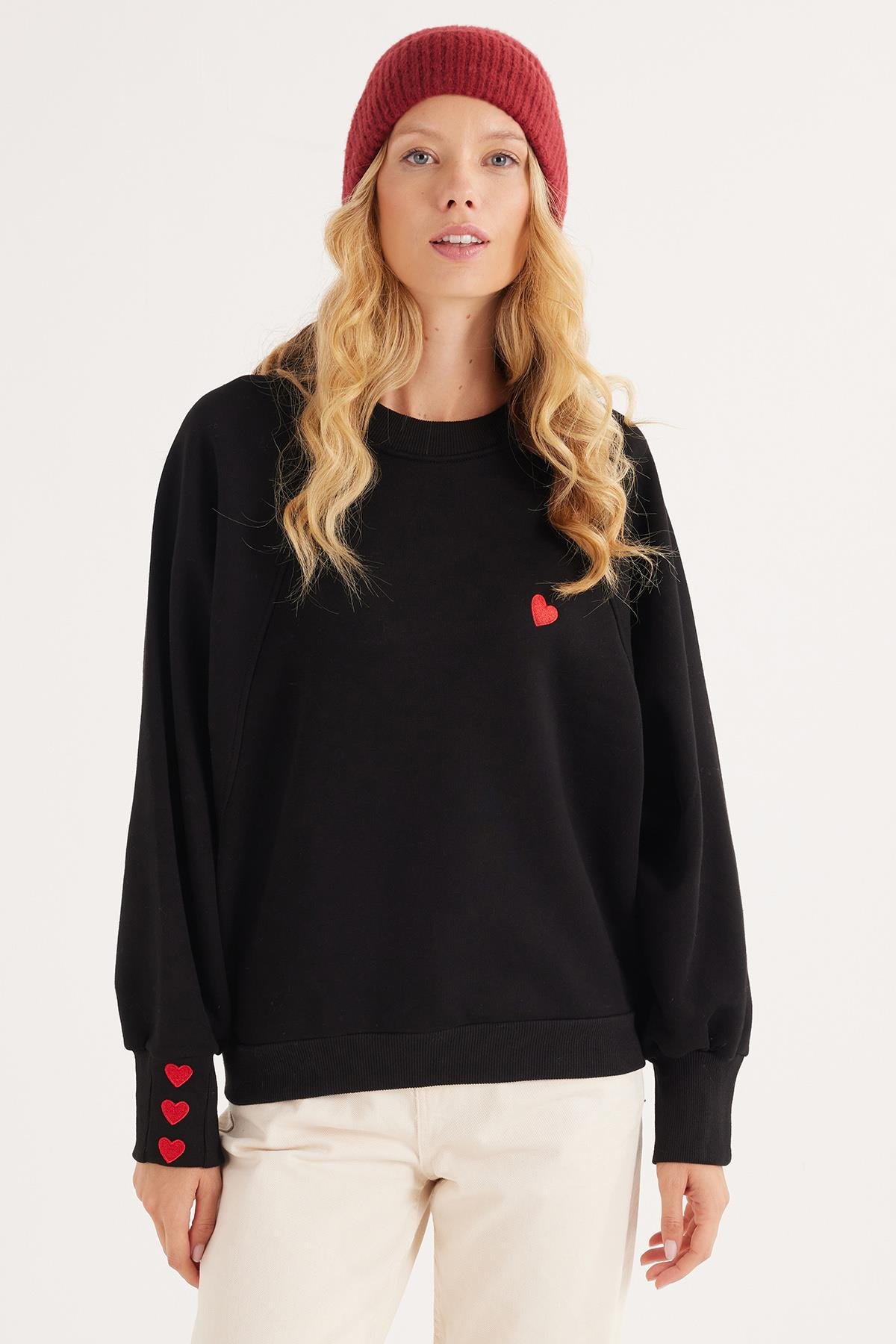 Kadın Regular Fit Klasik Kesim %100 Pamuk Baskılı Bisiklet Yaka Siyah Sweatshirt (SW250012-02)