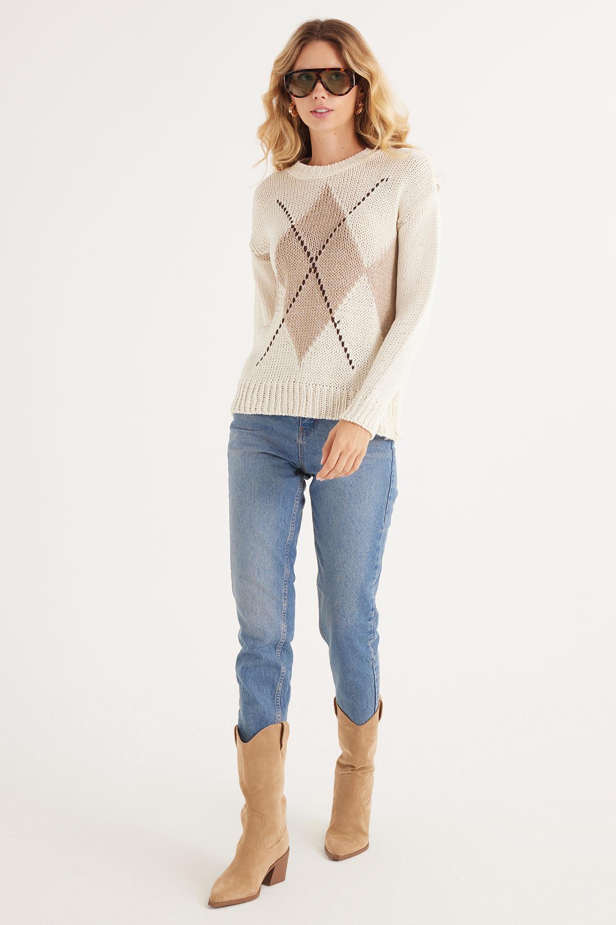 Kadın Regular Fit Klasik Kesim Bisiklet Yaka Bej Kazak (BYKZ2510-71)