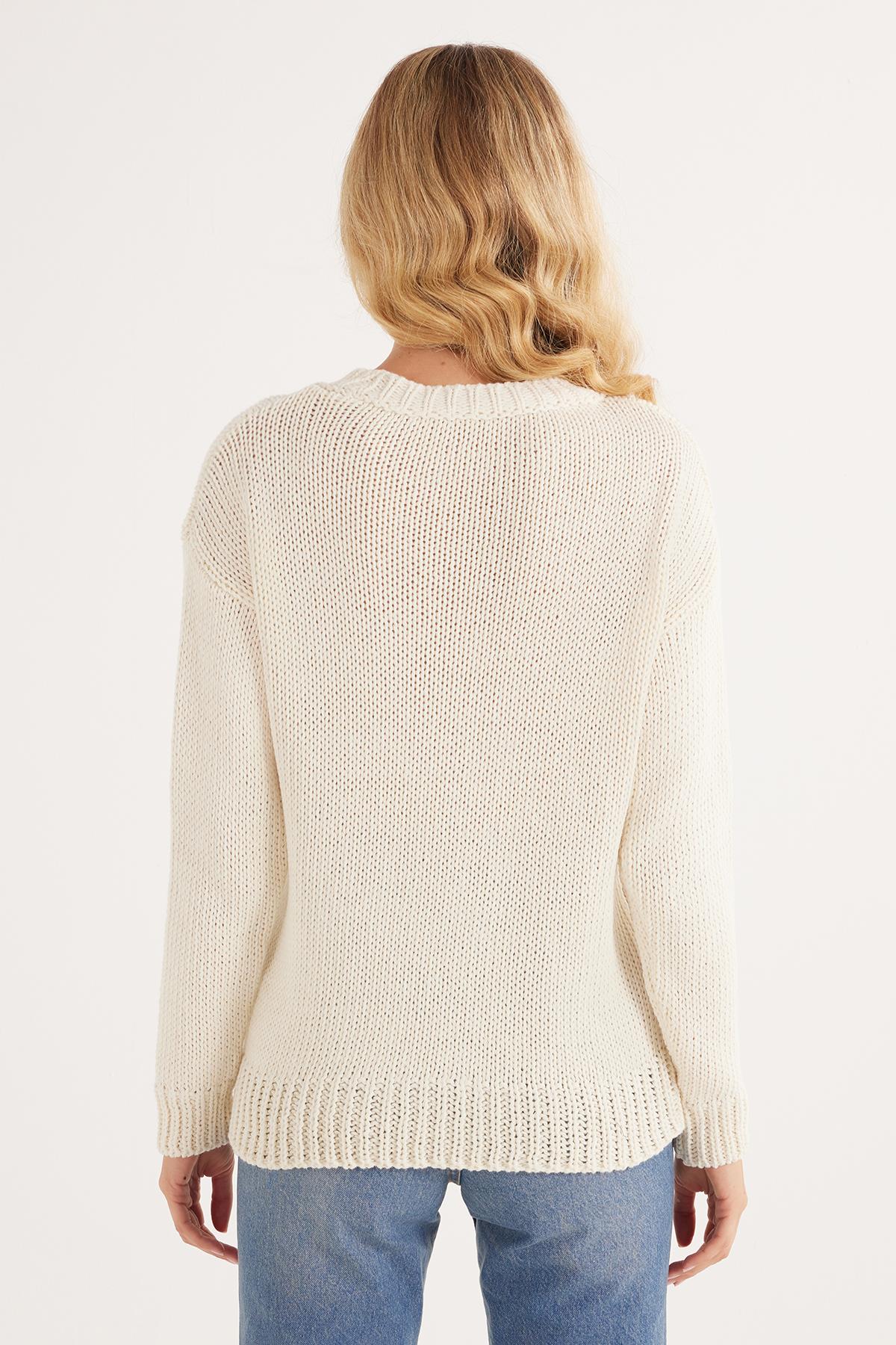Kadın Regular Fit Klasik Kesim Bisiklet Yaka Bej Kazak