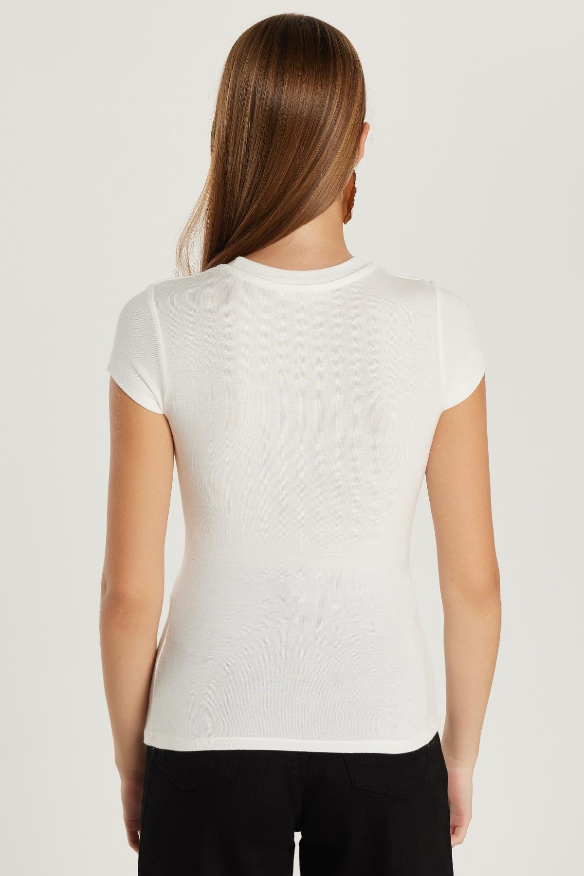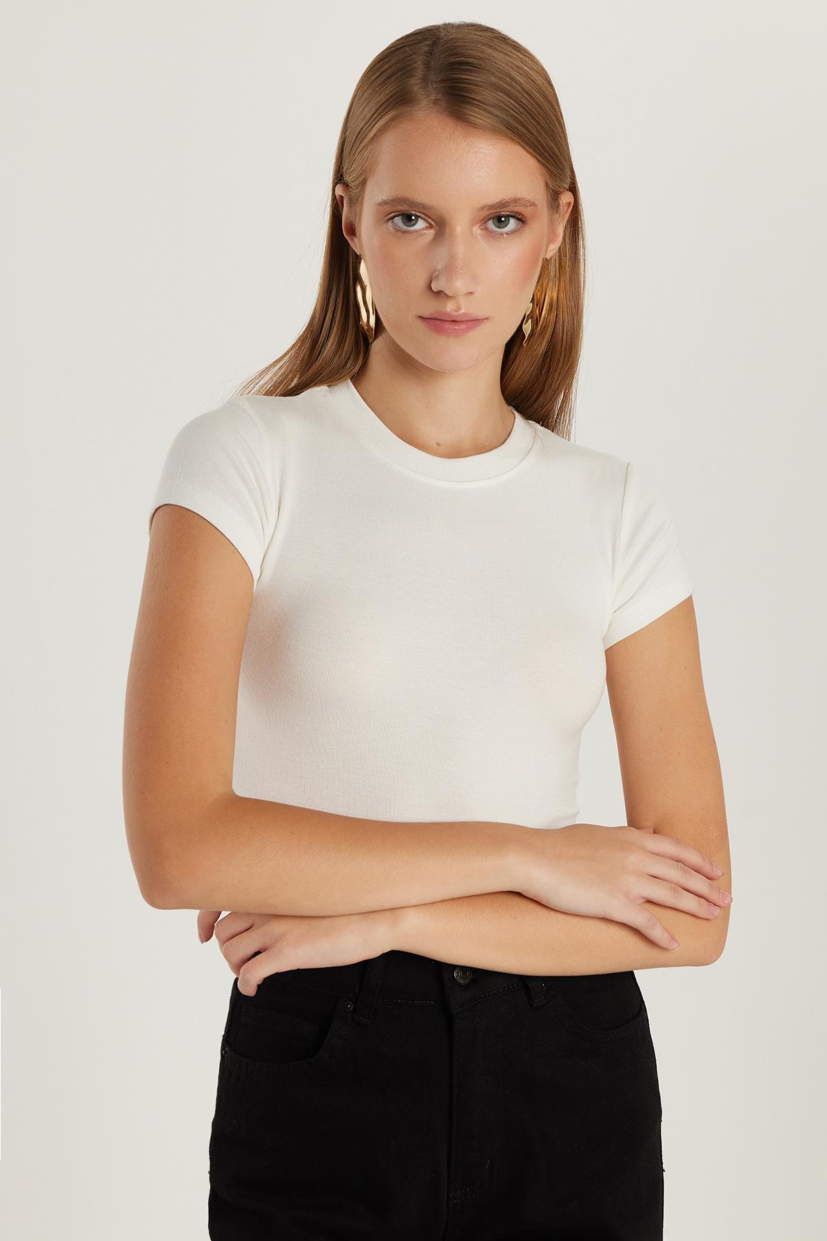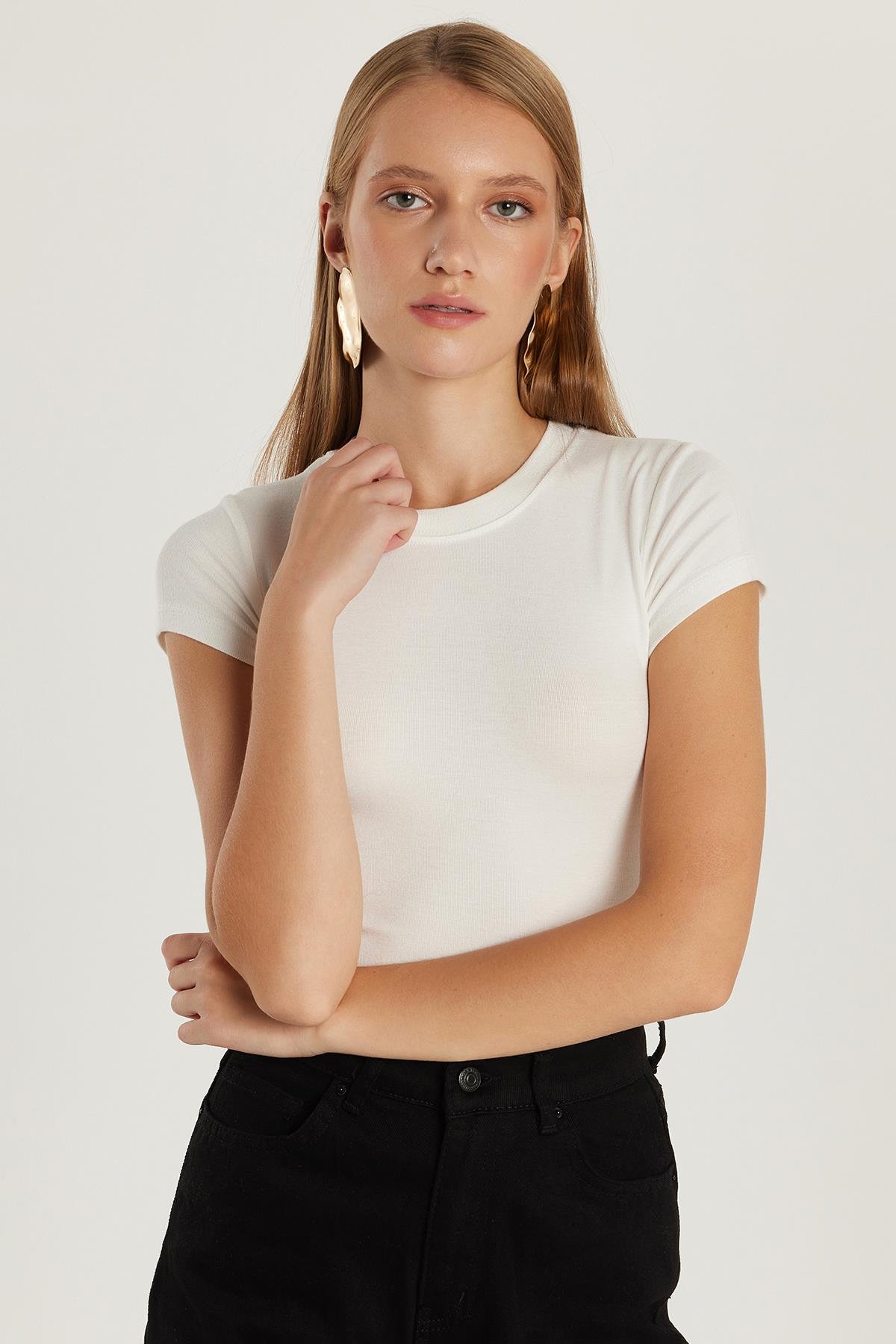 Kadın Regular Fit Klasik Kesim Bisiklet Yaka Viskon Kumaş Ultra Soft Beyaz Tişört (BDY25023-01)
