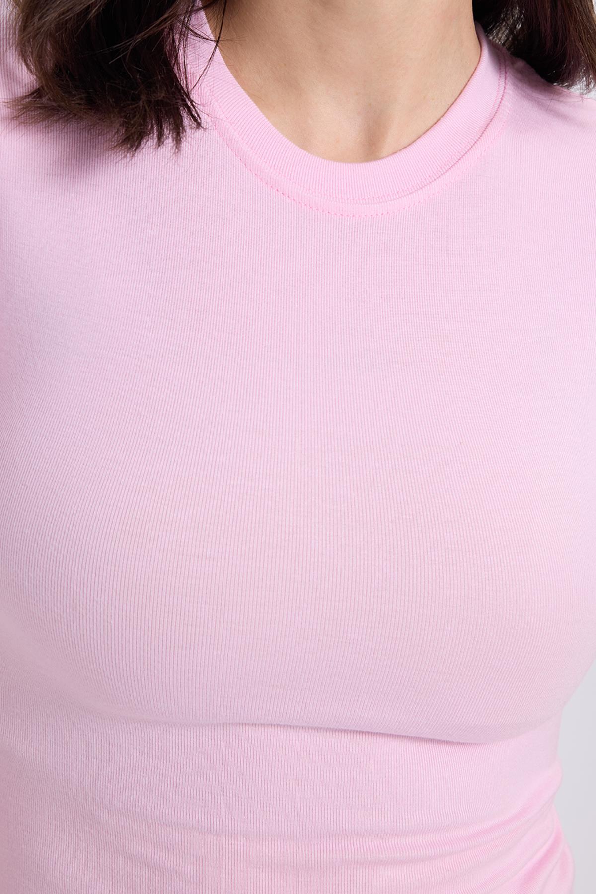 Kadın Regular Fit Klasik Kesim Bisiklet Yaka Viskon Kumaş Ultra Soft Pembe Tişört