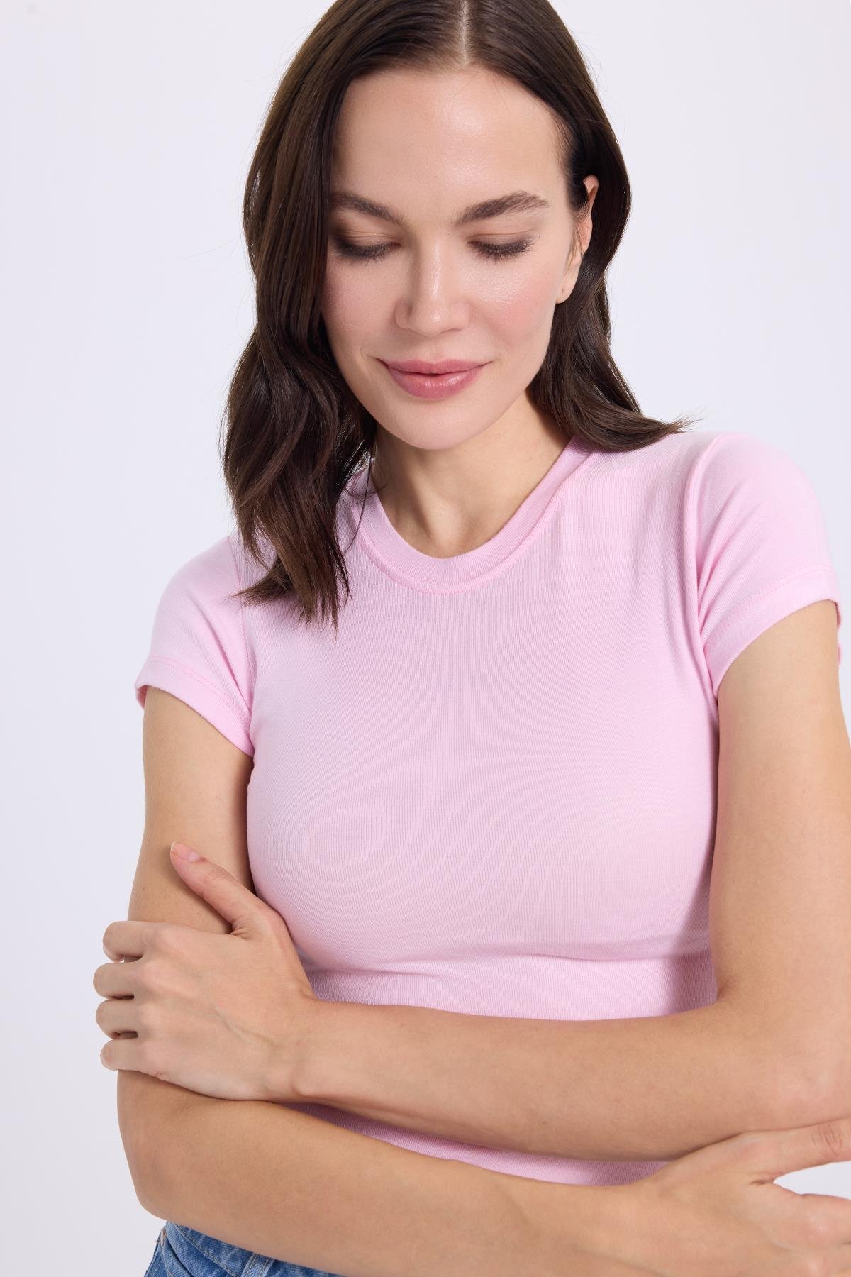 Kadın Regular Fit Klasik Kesim Bisiklet Yaka Viskon Kumaş Ultra Soft Pembe Tişört (BDY25023-15)