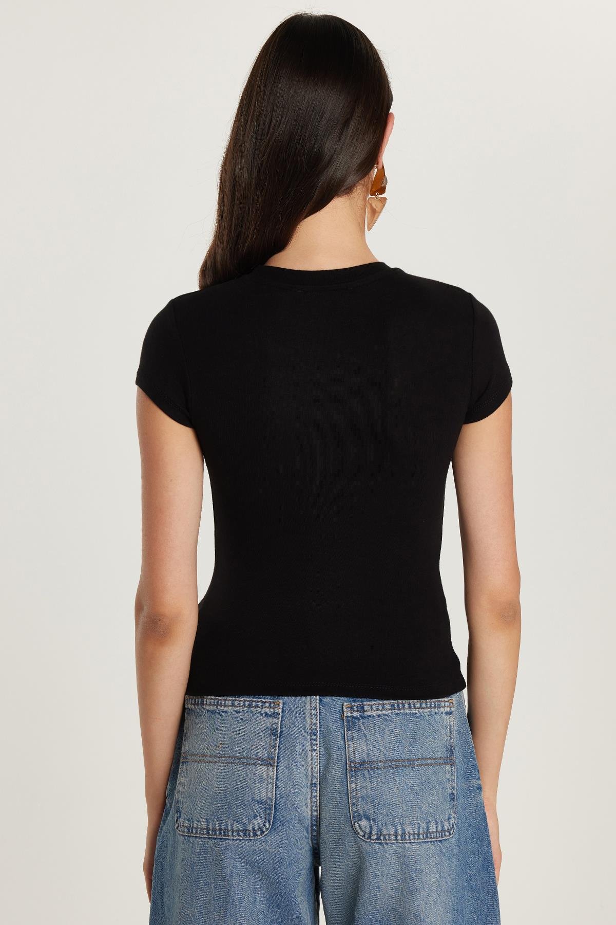 Kadın Regular Fit Klasik Kesim Bisiklet Yaka Viskon Kumaş Ultra Soft Siyah Tişört (BDY25023-02)