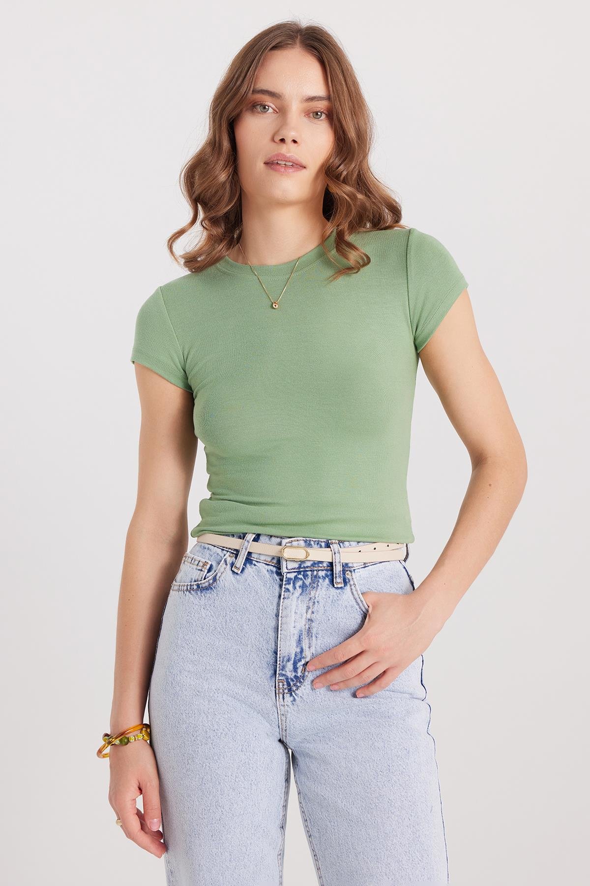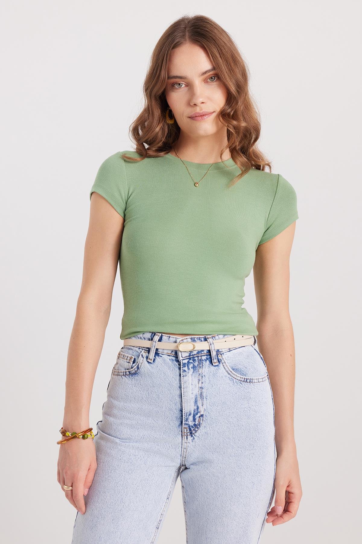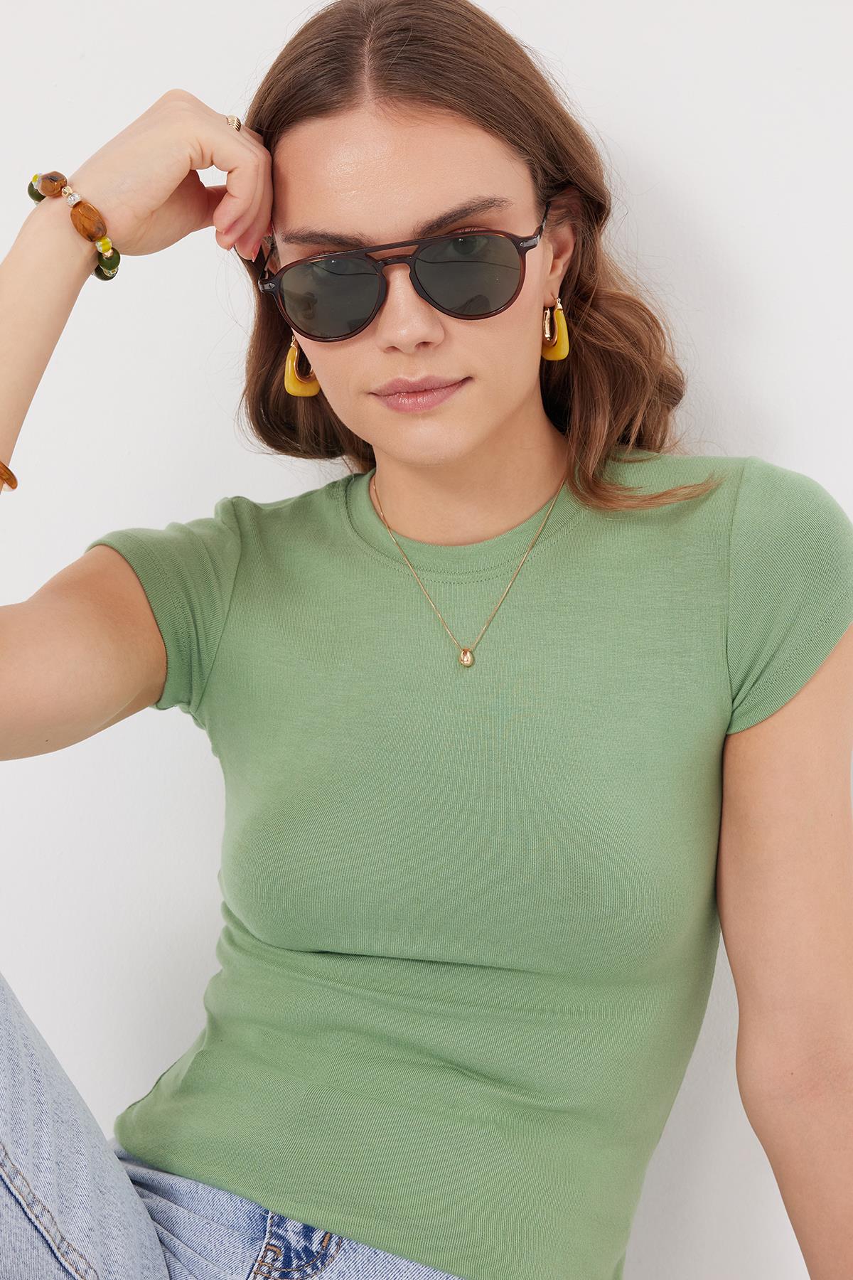 Kadın Regular Fit Klasik Kesim Bisiklet Yaka Viskon Kumaş Ultra Soft Yeşil Tişört (BDY25023-04)