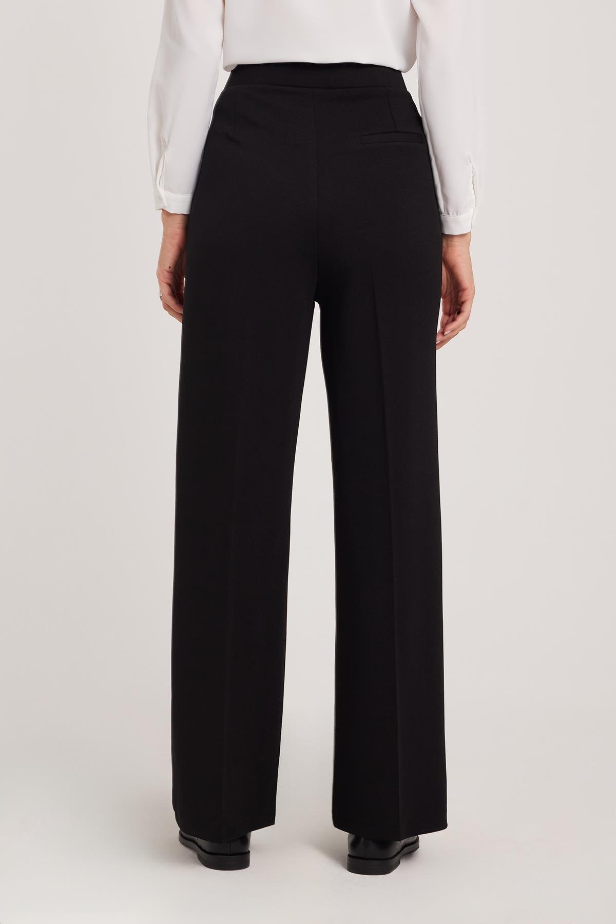 Kadın Regular Fit Klasik Kesim Cırt Kapamalı Geniş Paça Siyah Pantolon