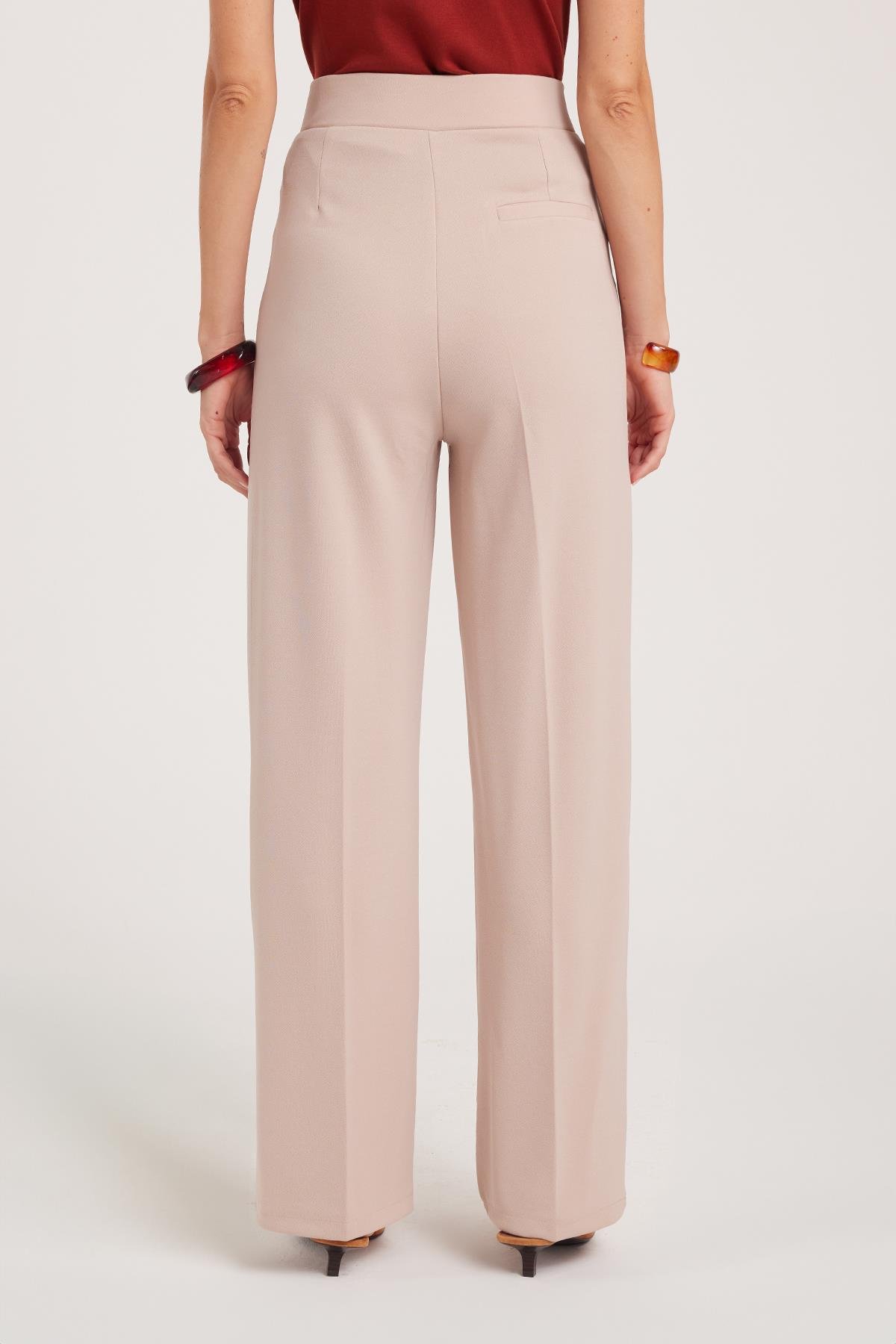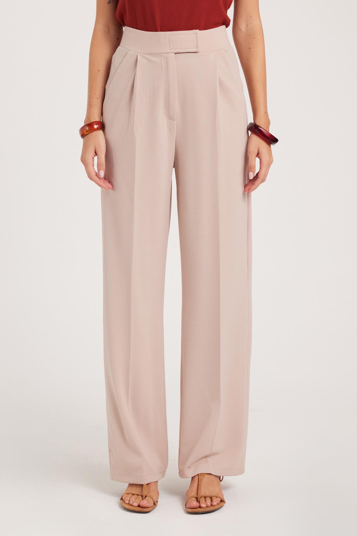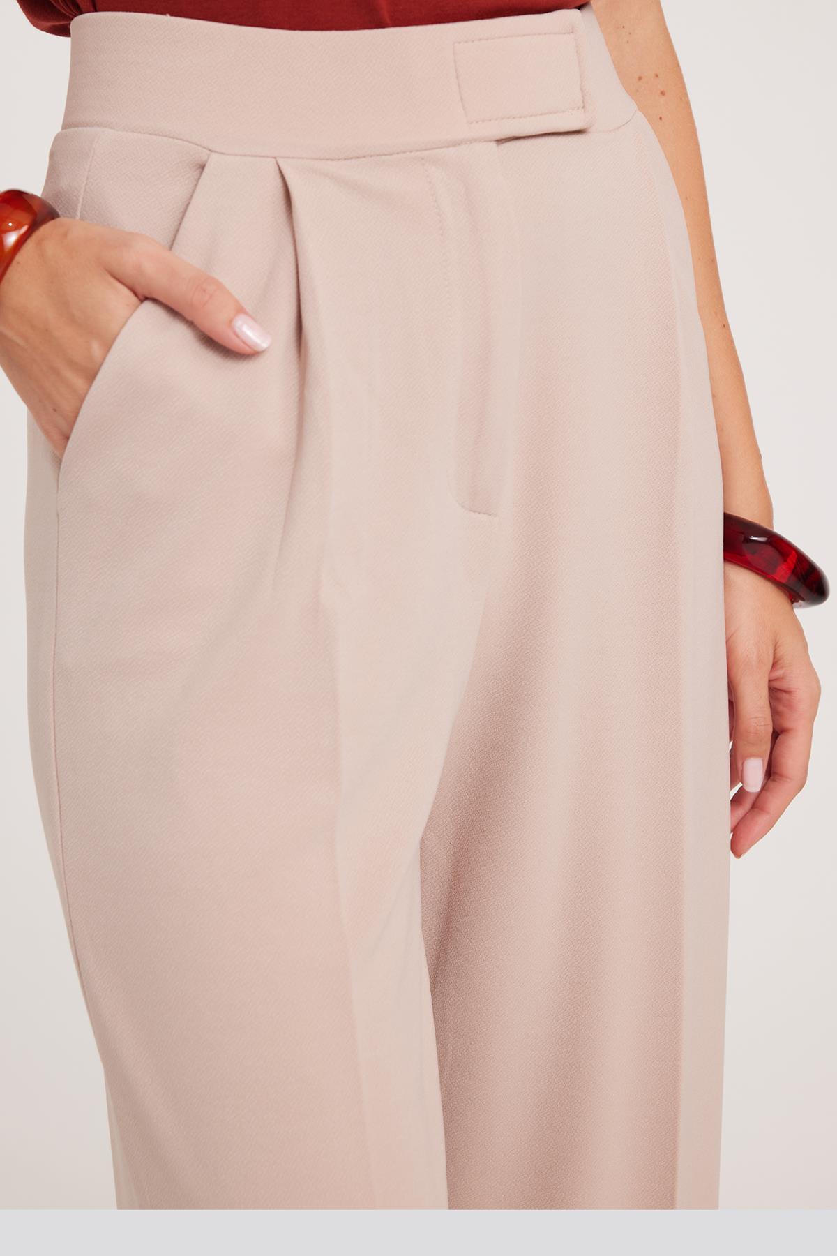 Kadın Regular Fit Klasik Kesim Cırt Kapamalı Geniş Paça Taş Pantolon (PN250049-STN)