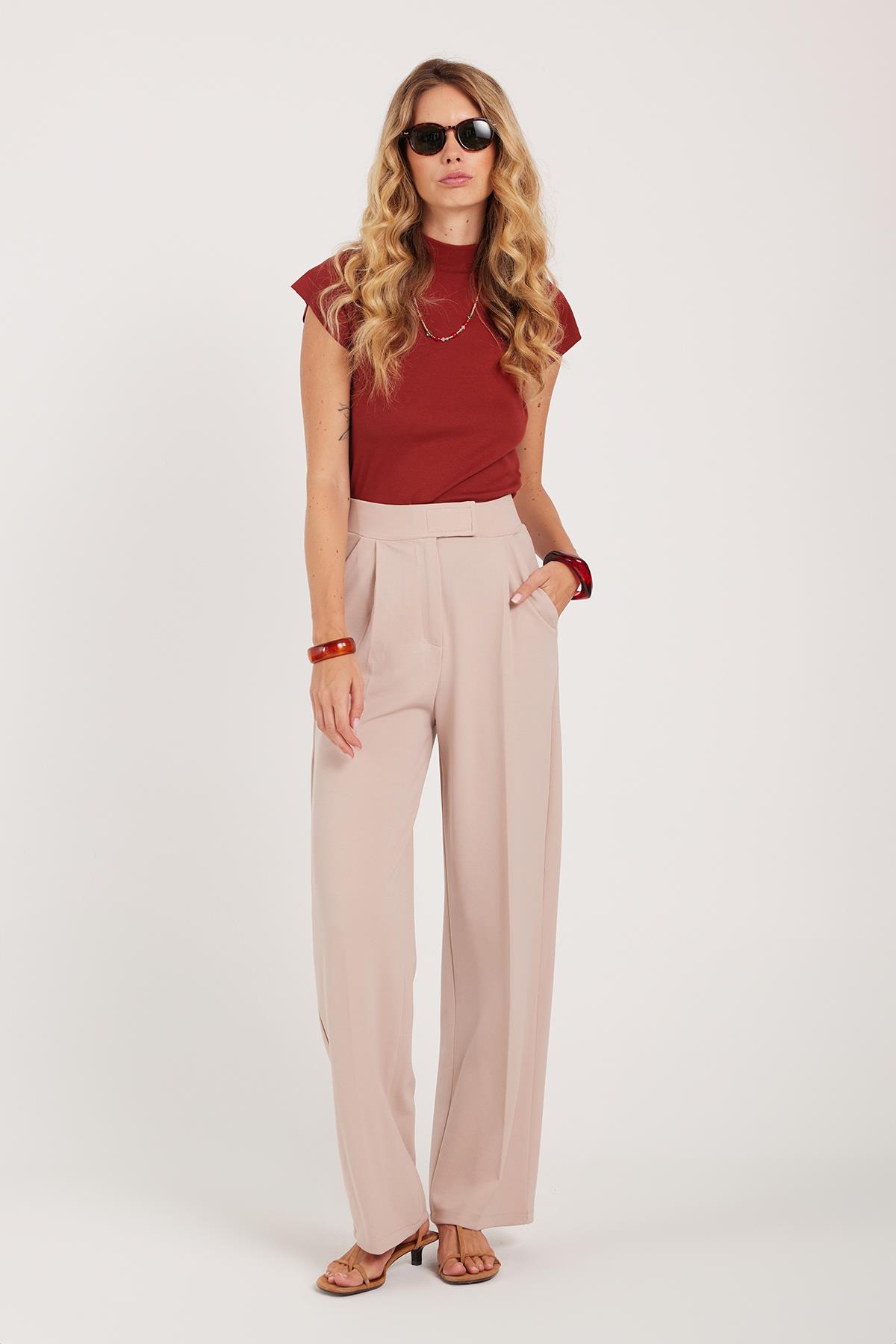 Kadın Regular Fit Klasik Kesim Cırt Kapamalı Geniş Paça Taş Pantolon